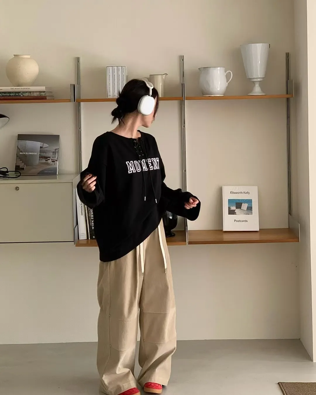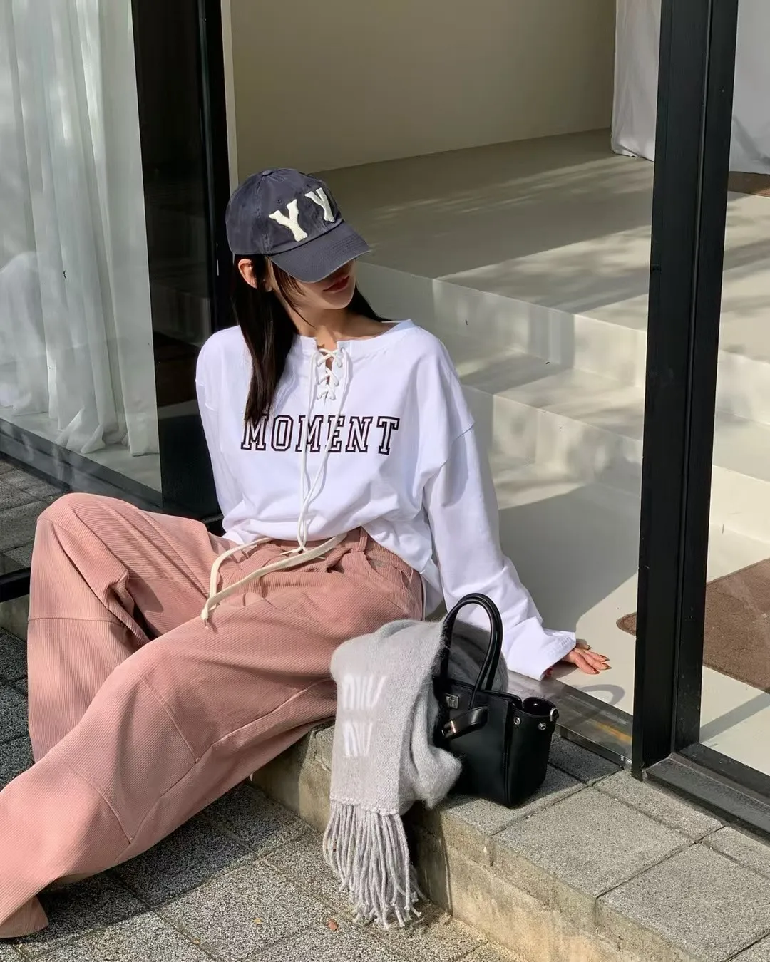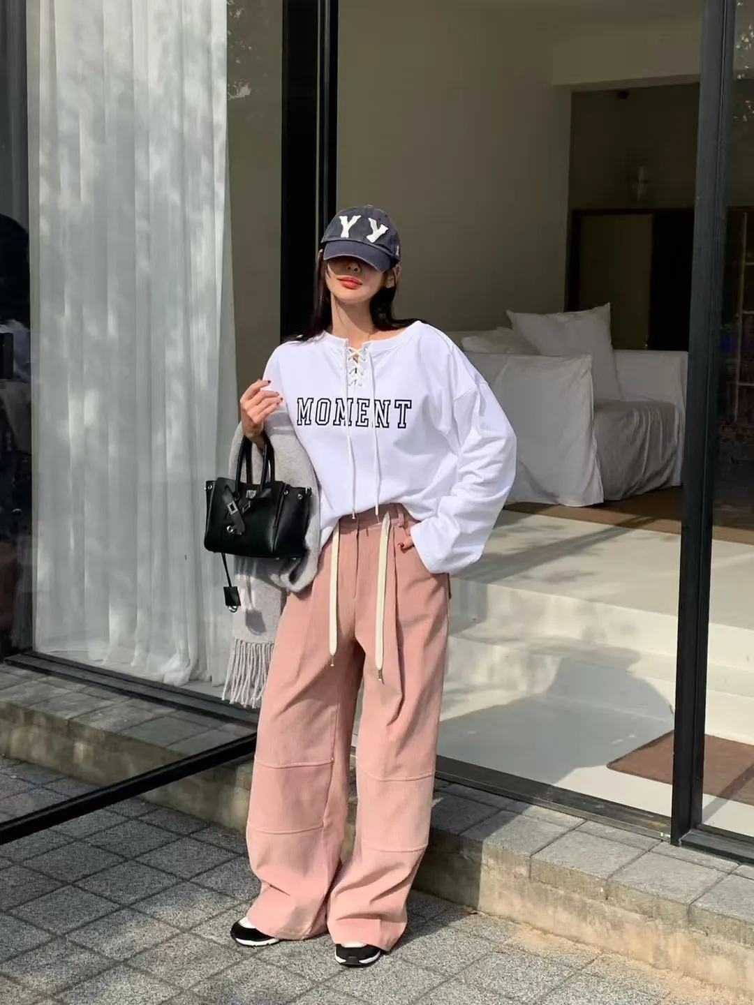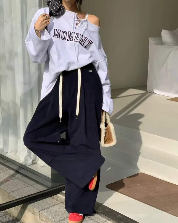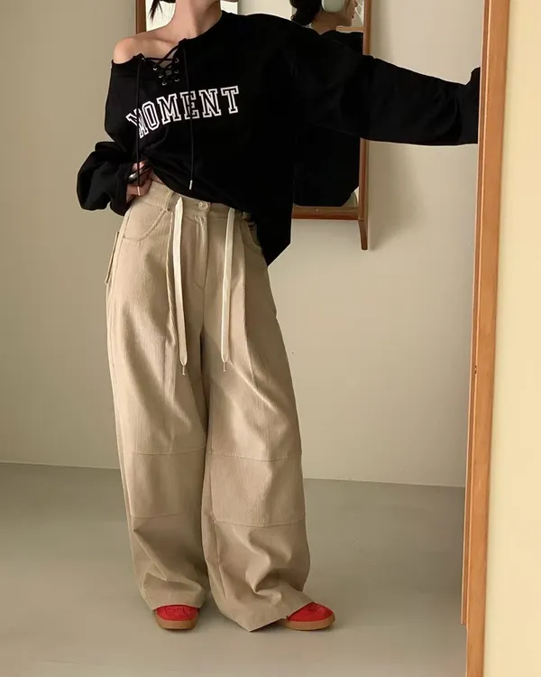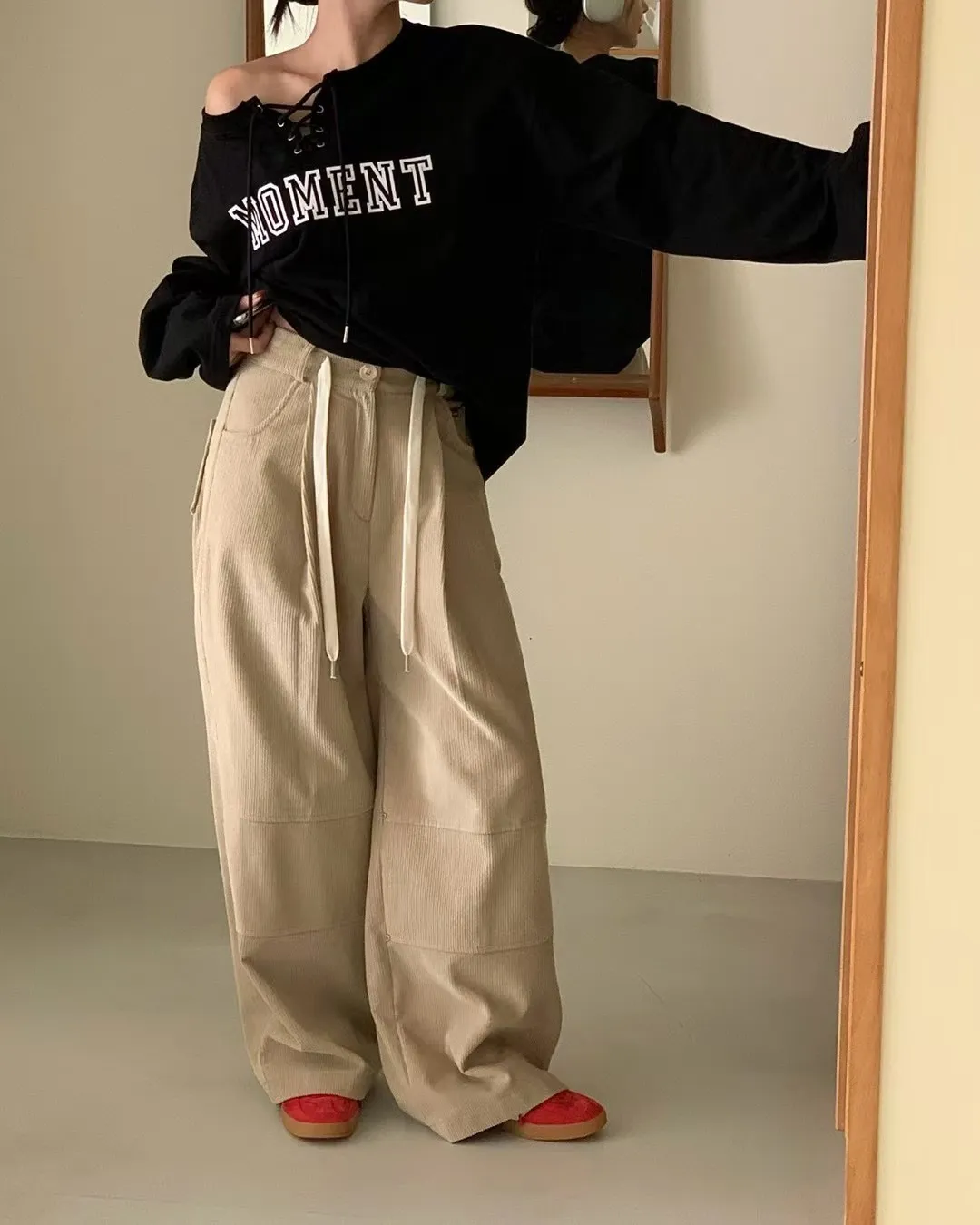 25JM13 燈芯絨後鬆緊釘扣休閒長褲 3色