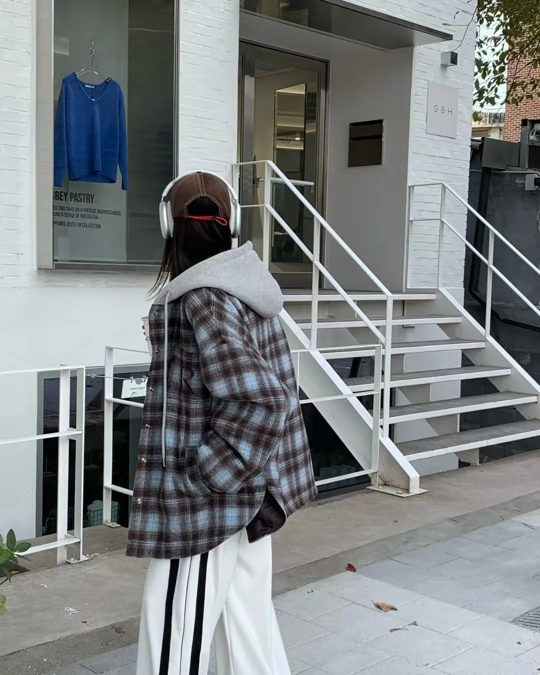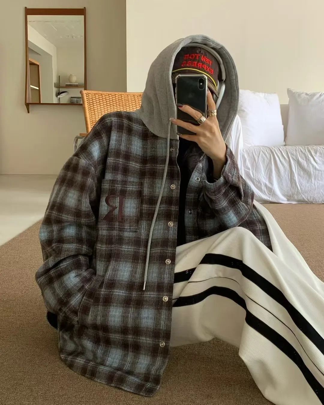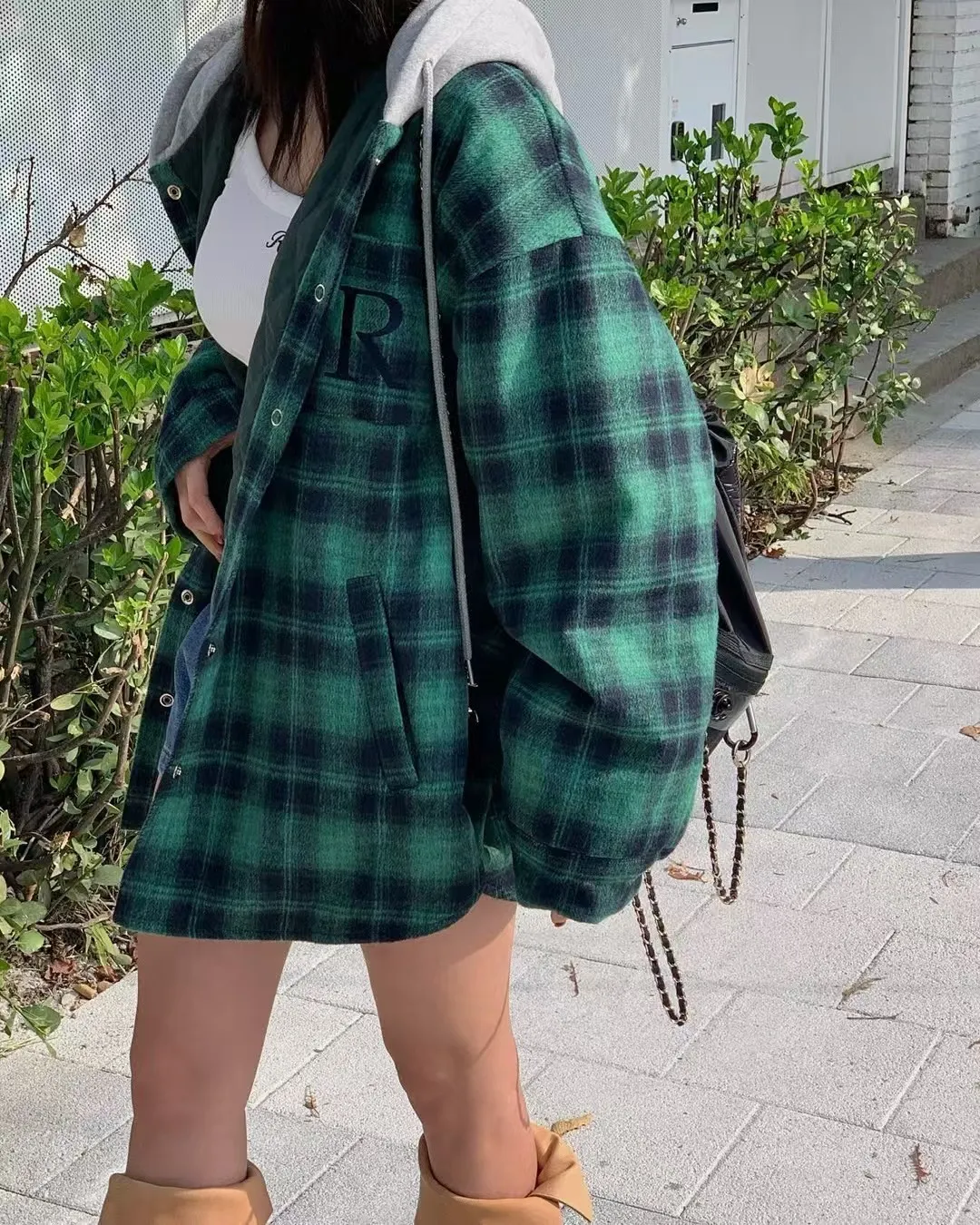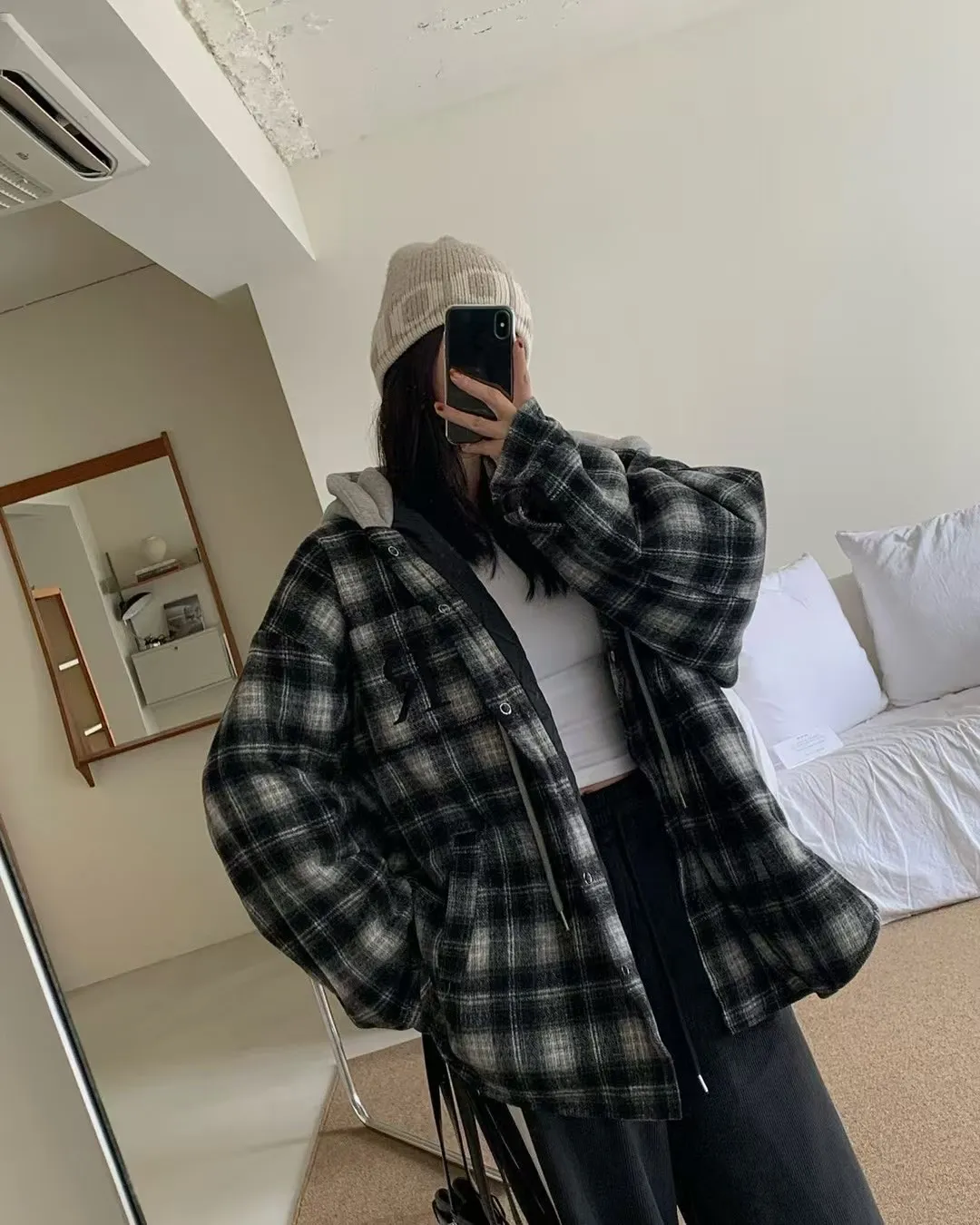 25JM16 羊毛格紋夾棉連帽襯衫外套 3色
