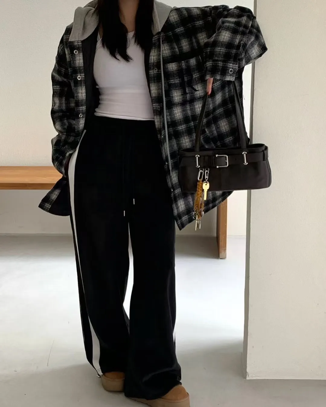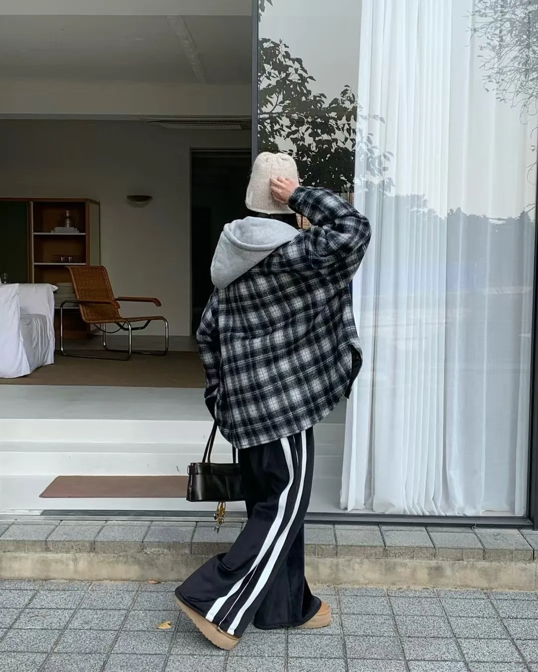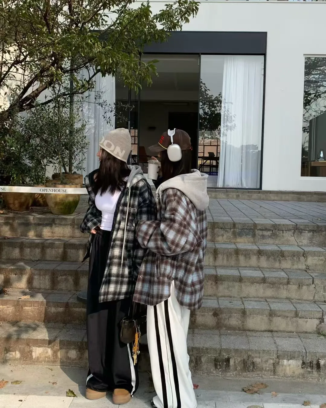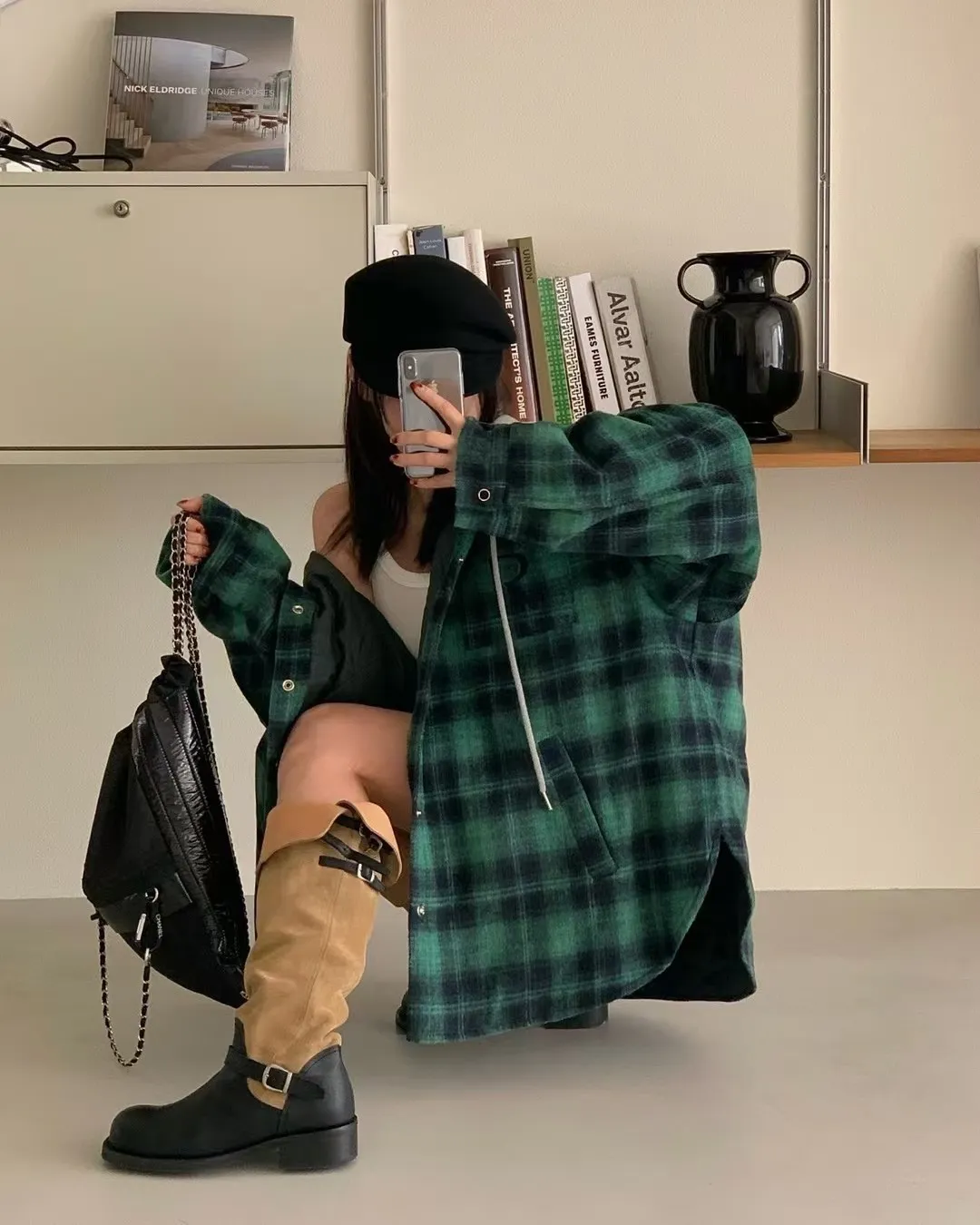 25JM16 羊毛格紋夾棉連帽襯衫外套 3色