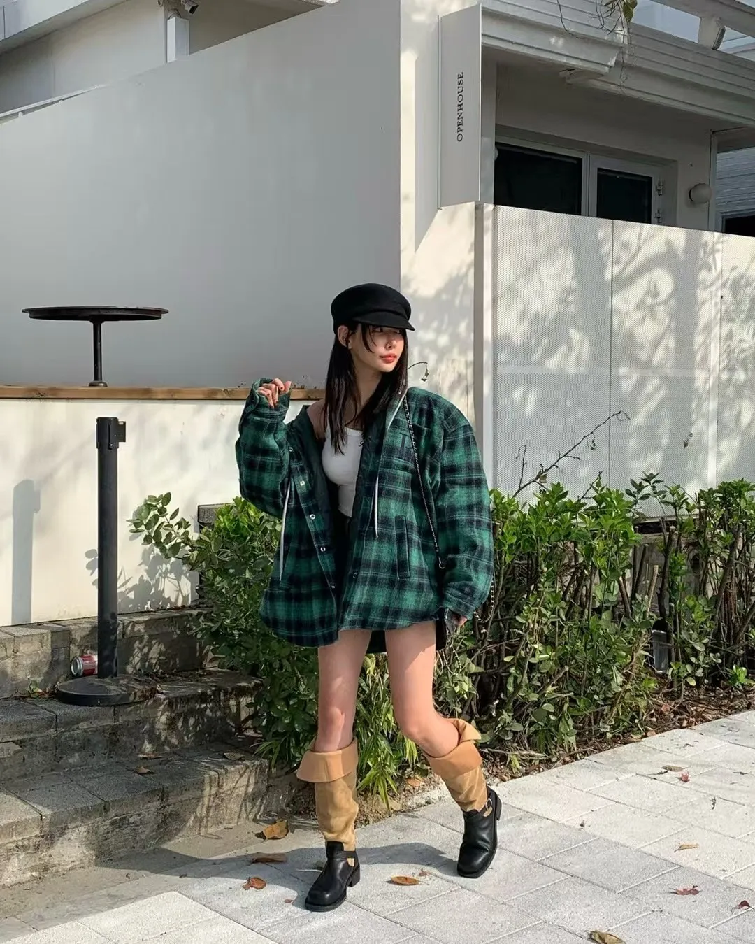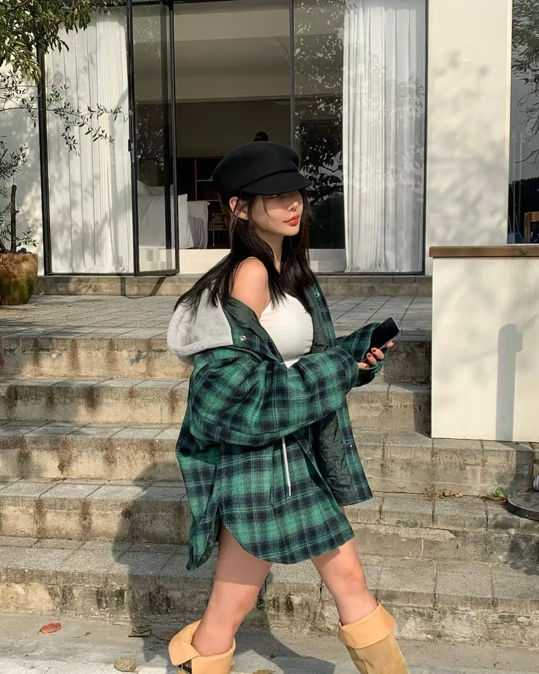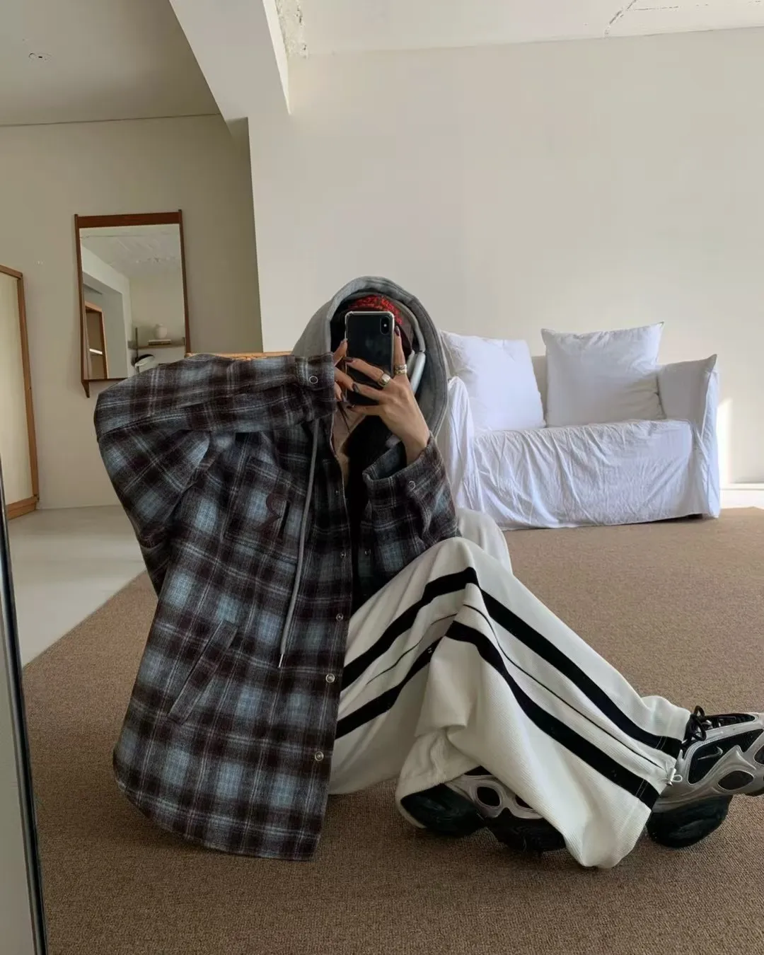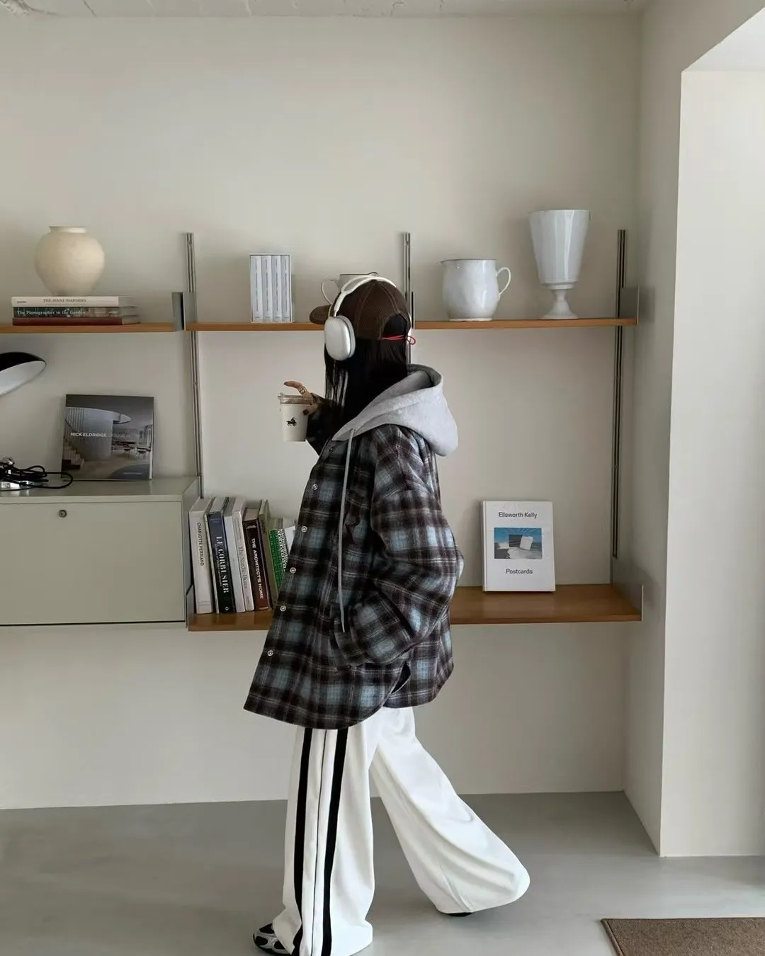 25JM16 羊毛格紋夾棉連帽襯衫外套 3色