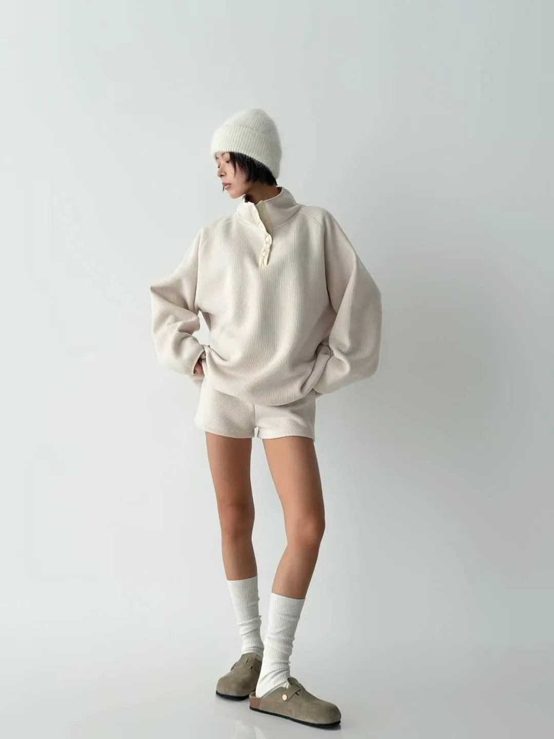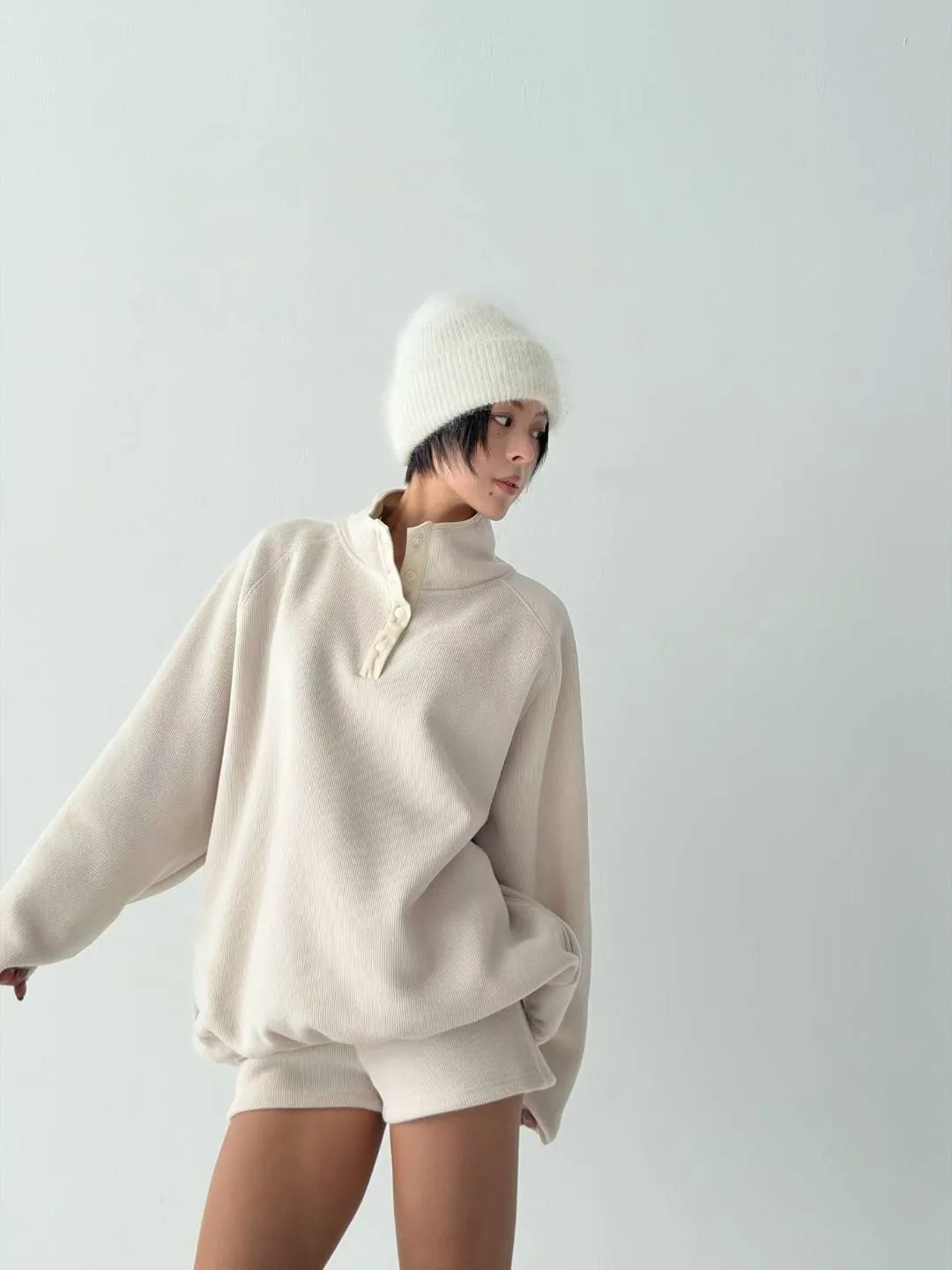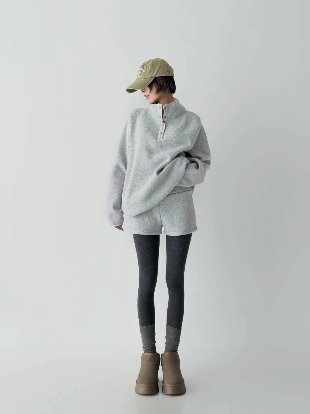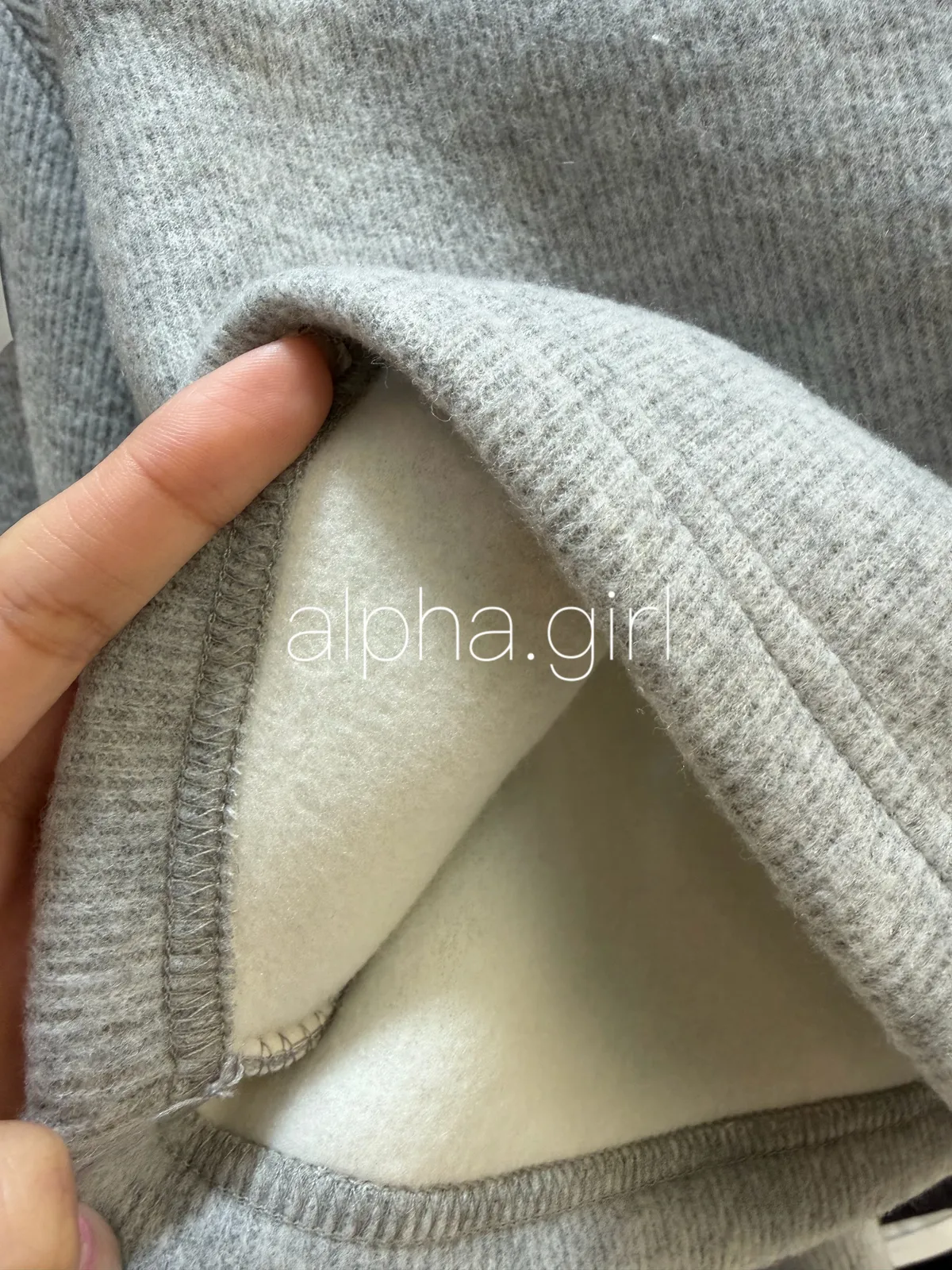 25JS35 後電繡立領中長版加絨大學T+絨小短褲 2色