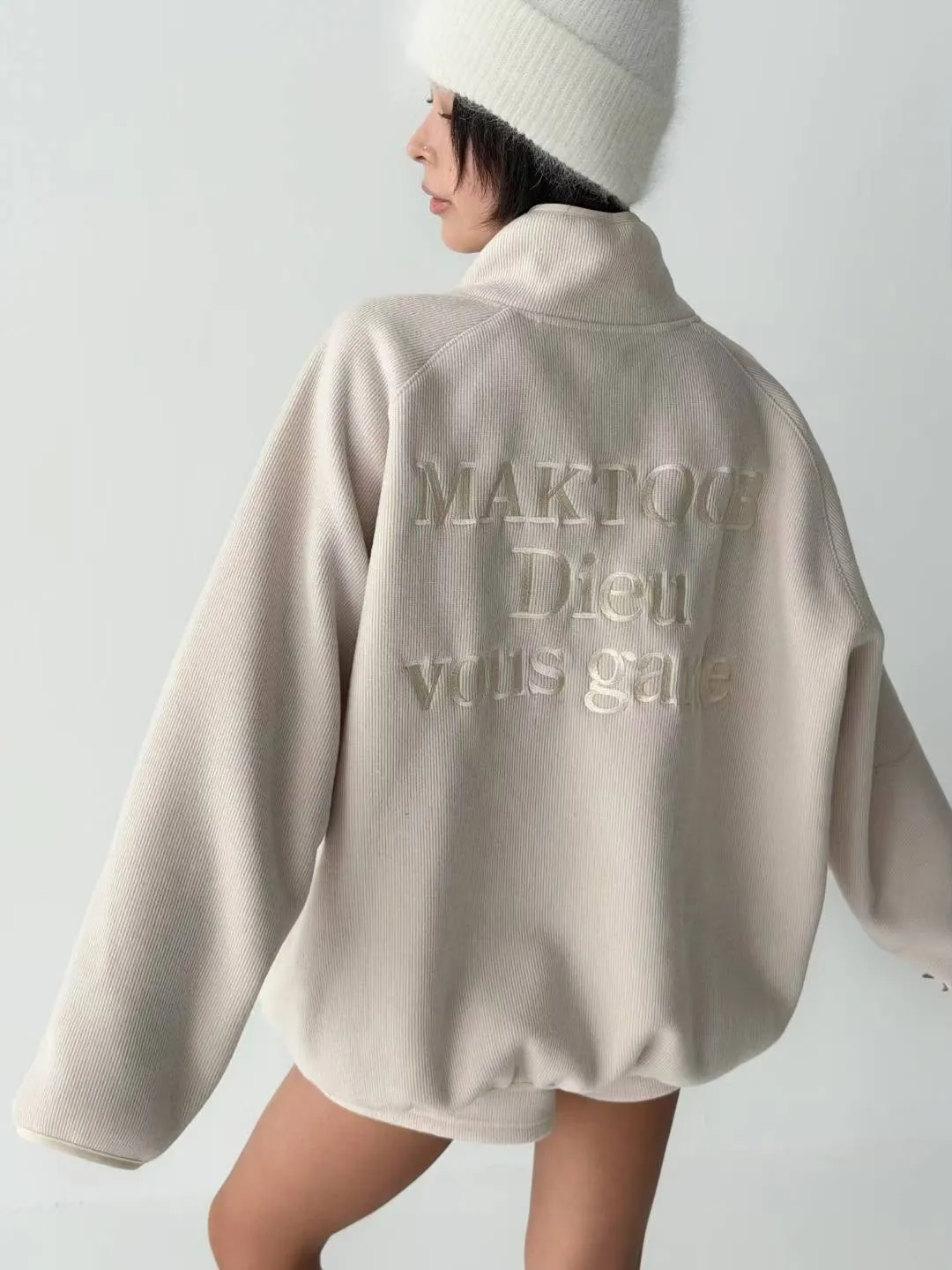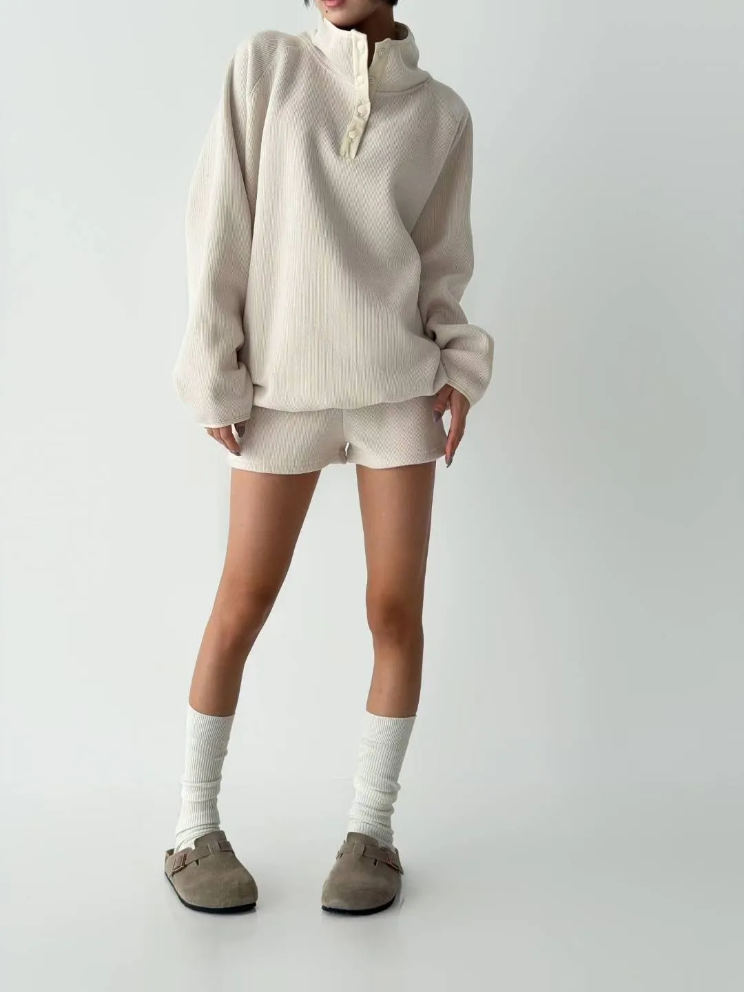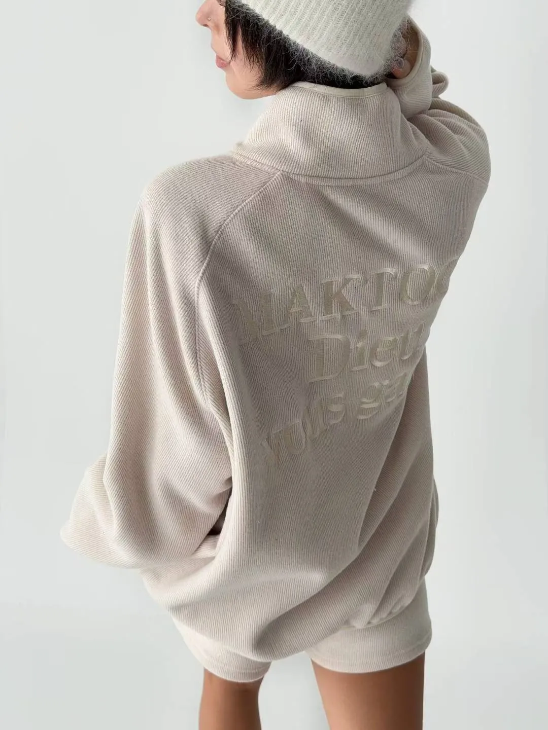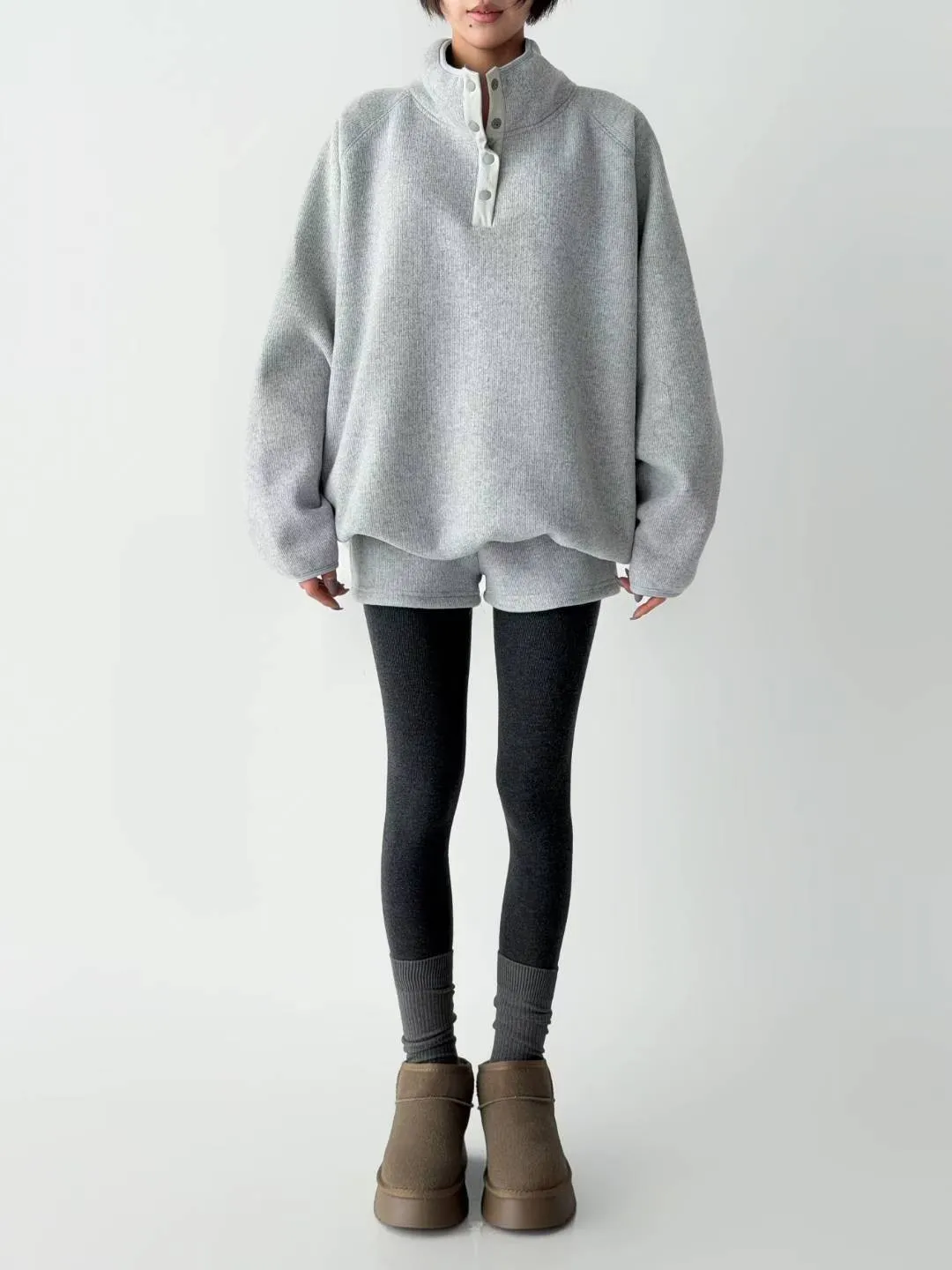 25JS35 後電繡立領中長版加絨大學T+絨小短褲 2色