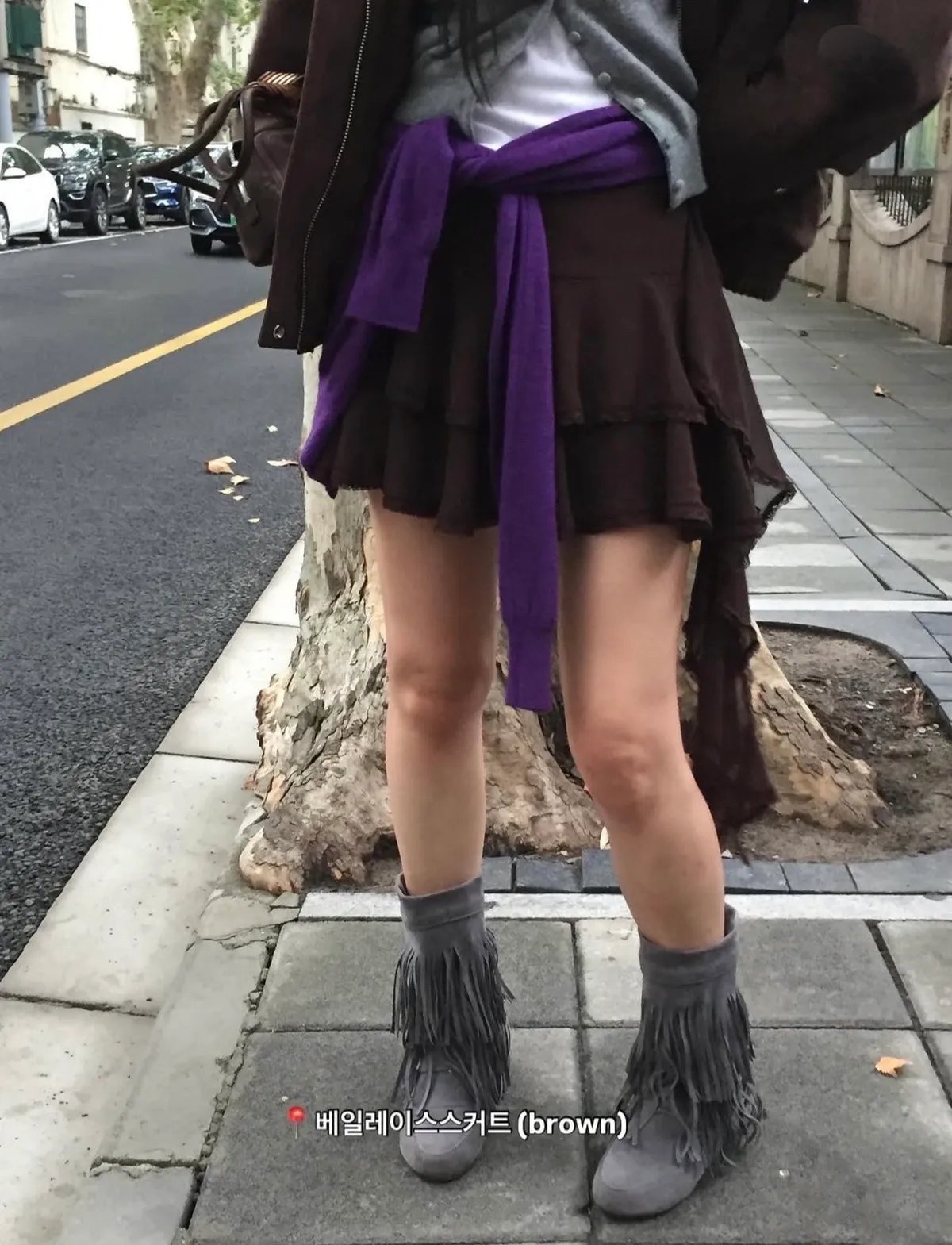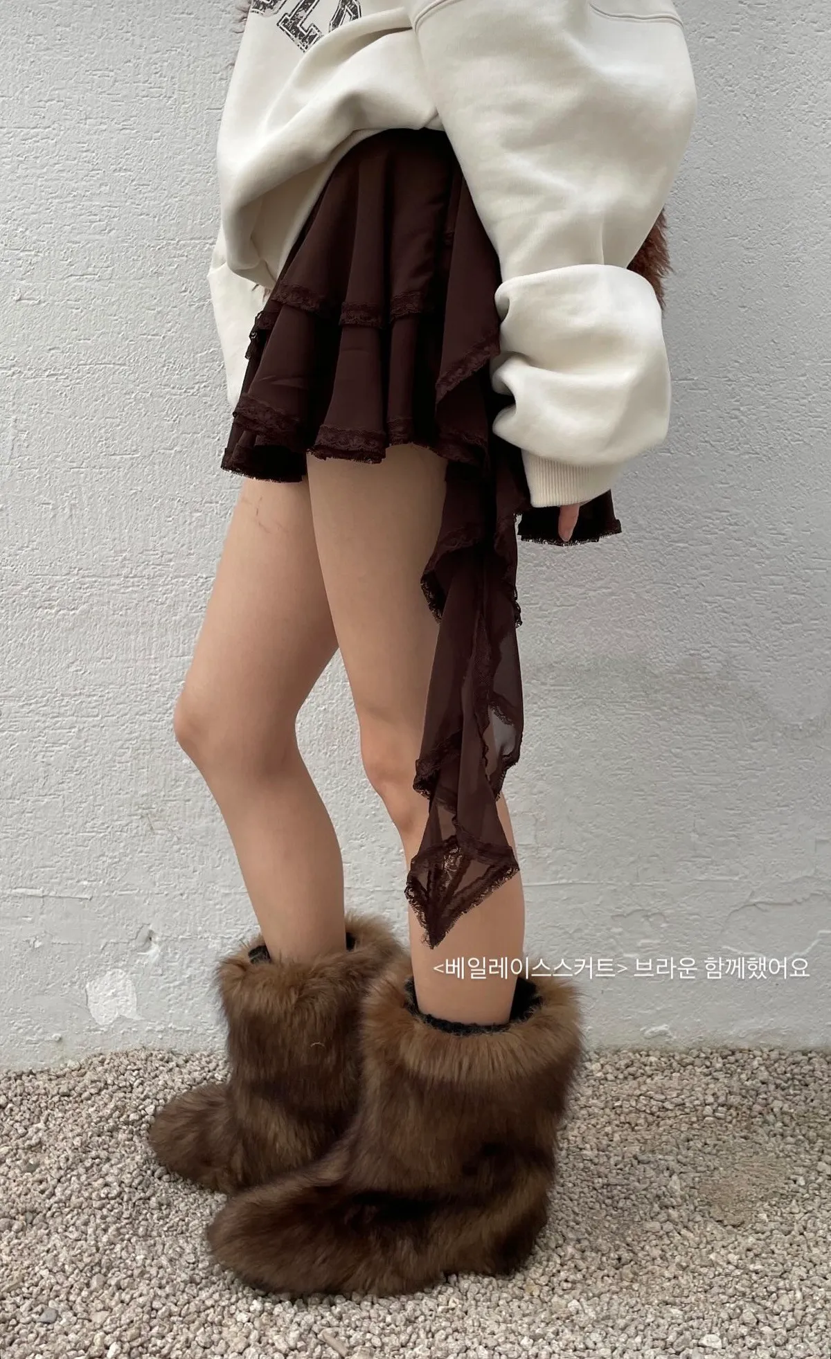 25JS47 雪紡緞面拚不規則蕾絲短褲裙 2色 SM