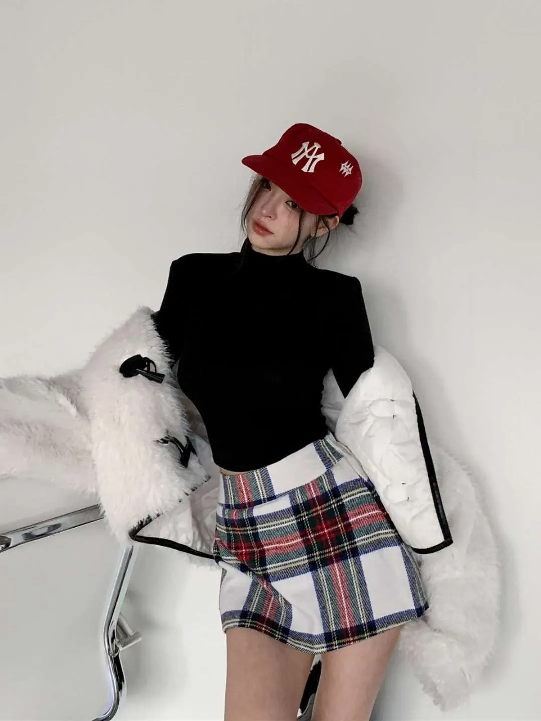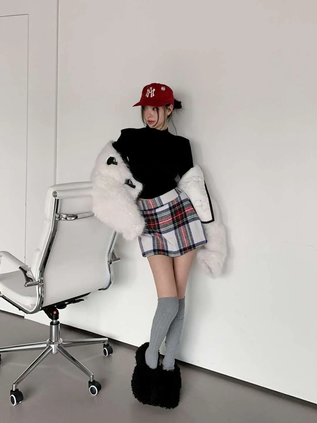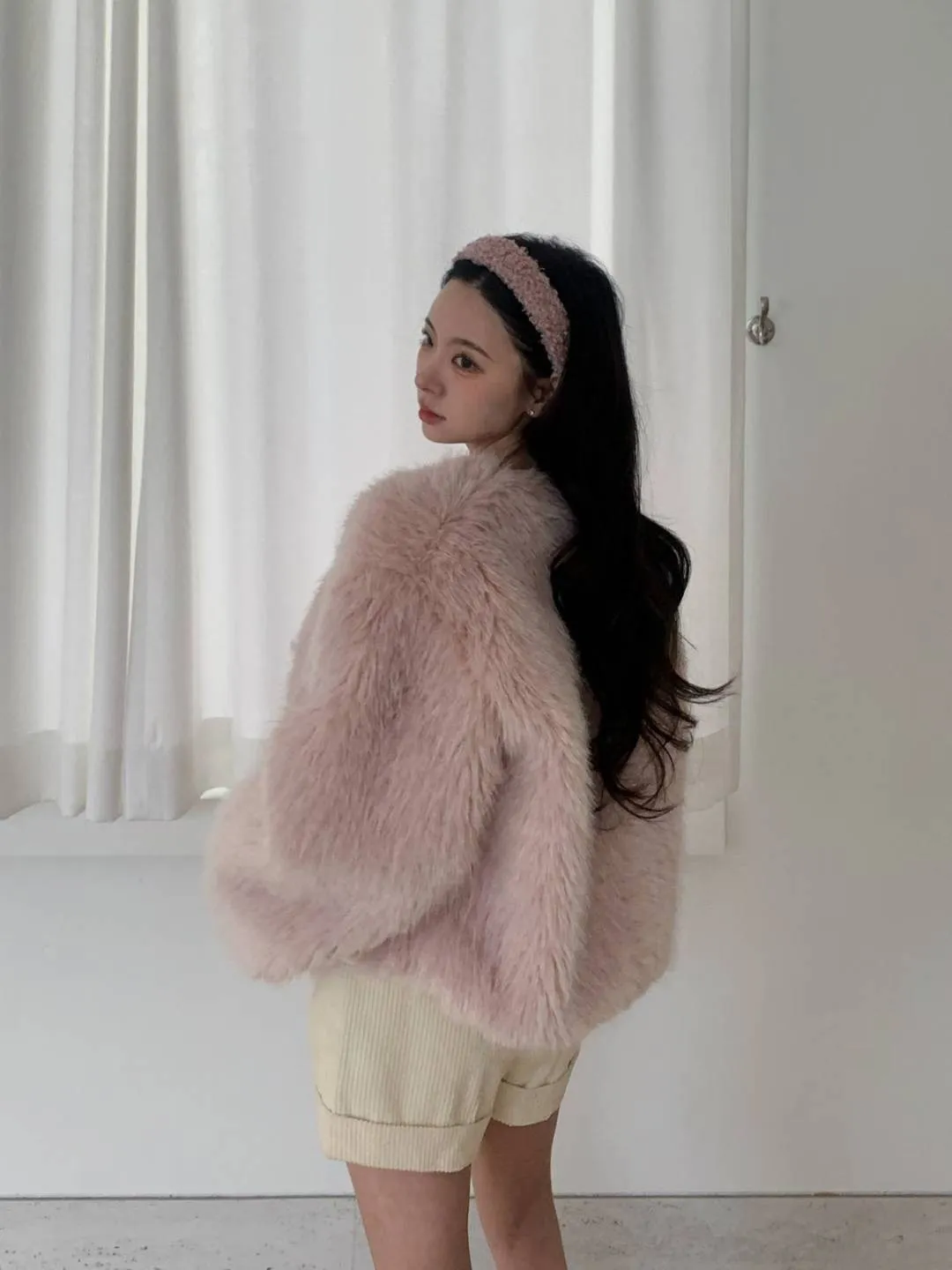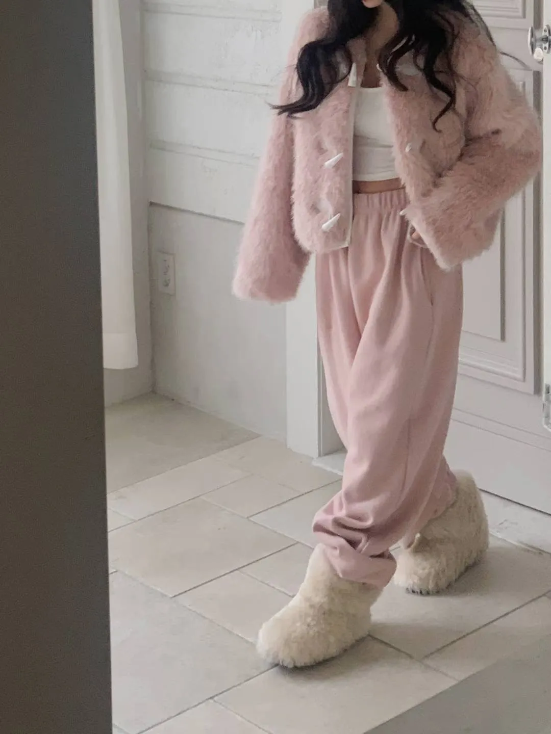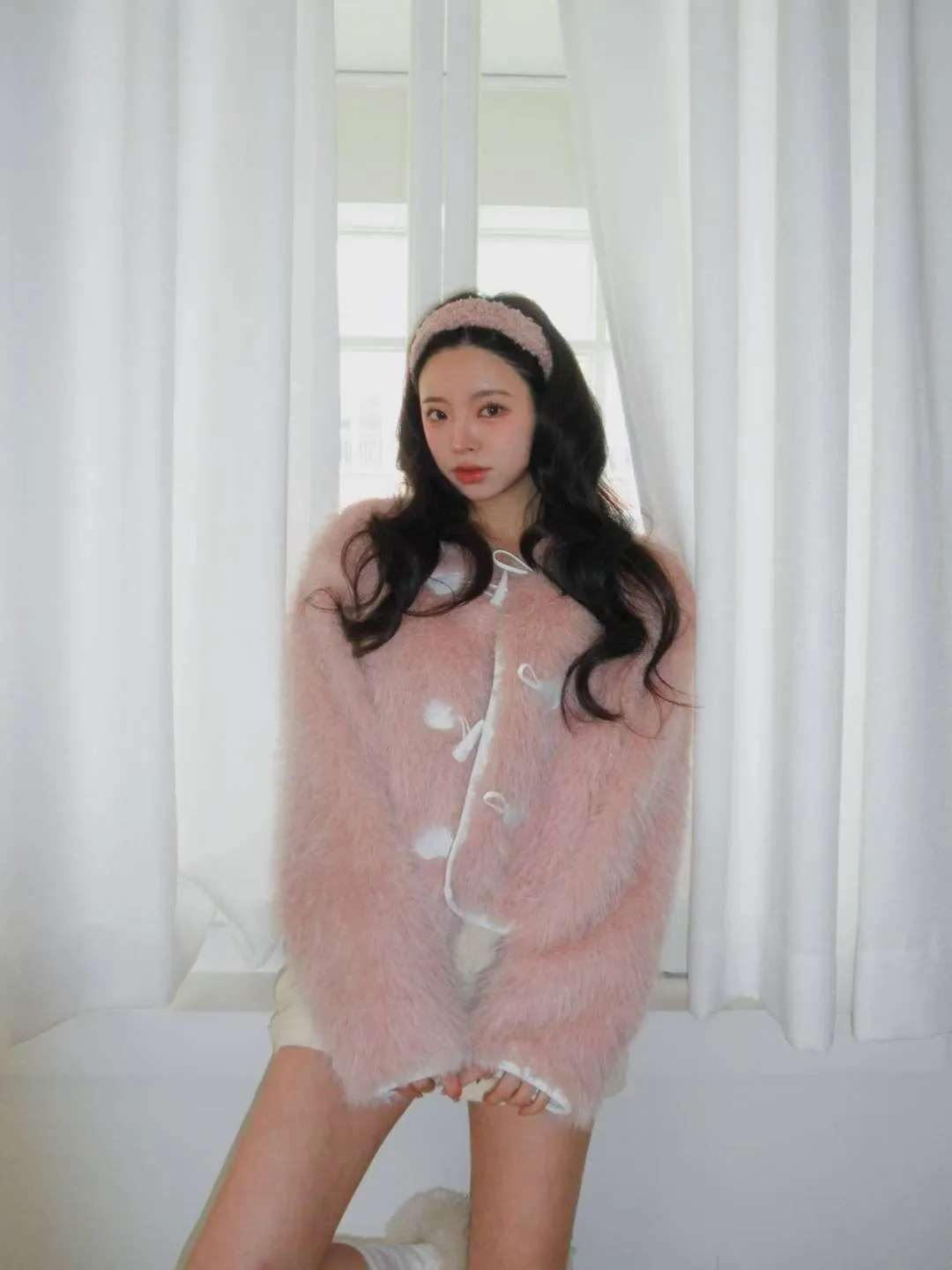 25LA05 長毛毛菱紋夾棉牛角扣外套 2色