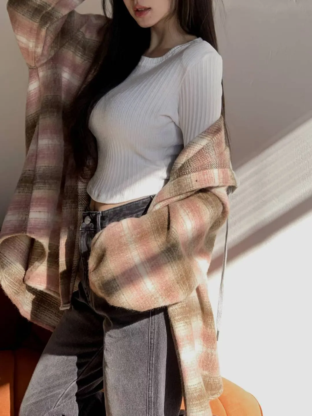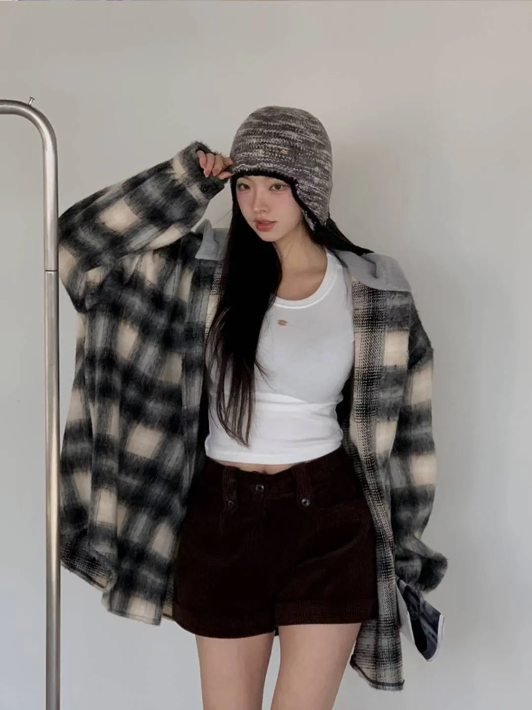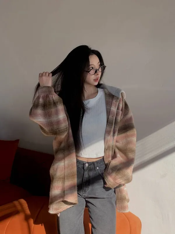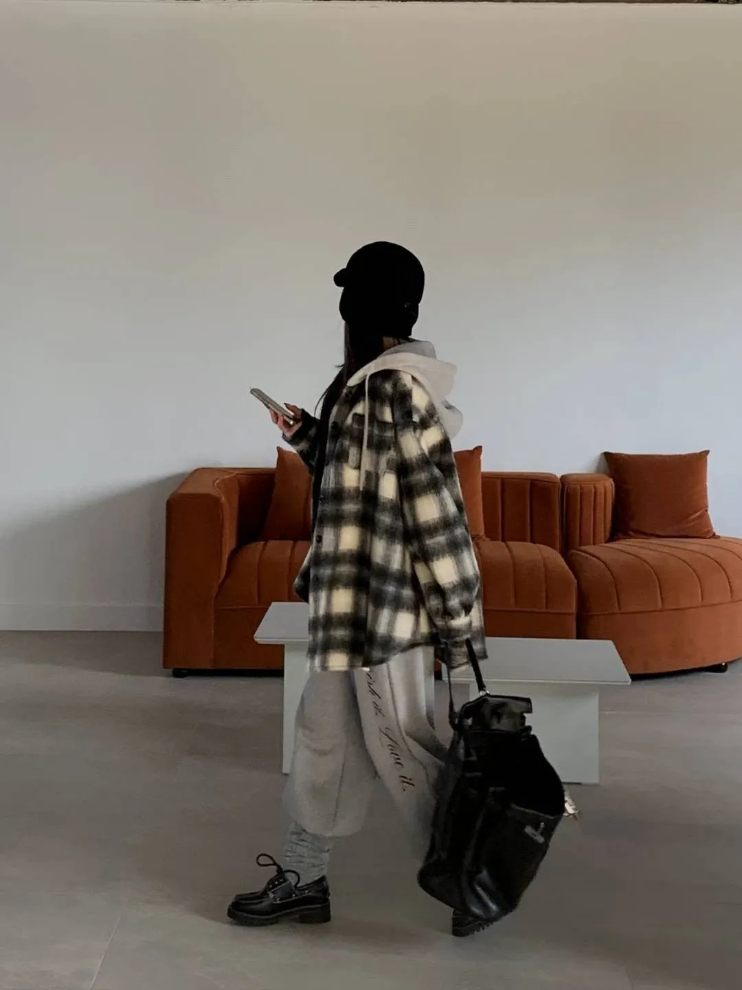 25LA07 羊毛50%連帽格紋襯衫外套 2色