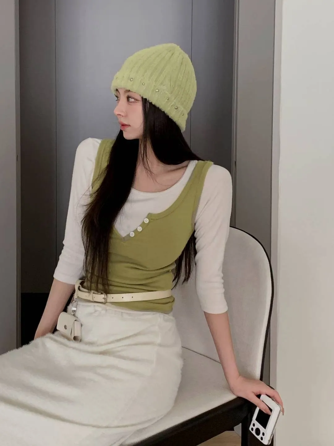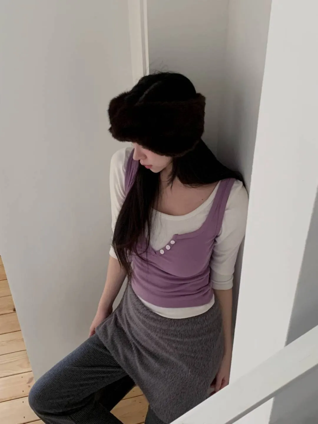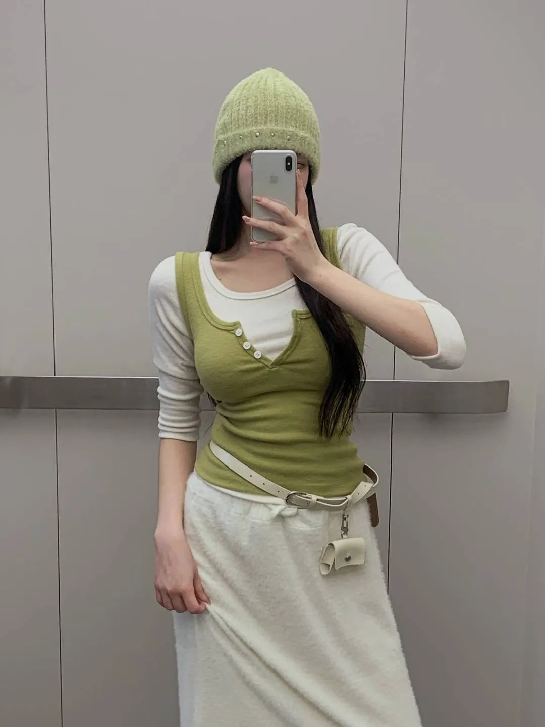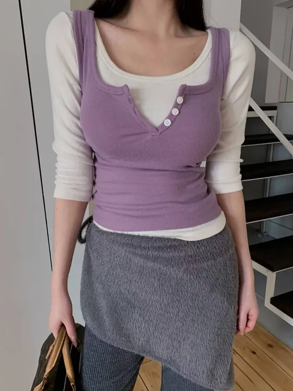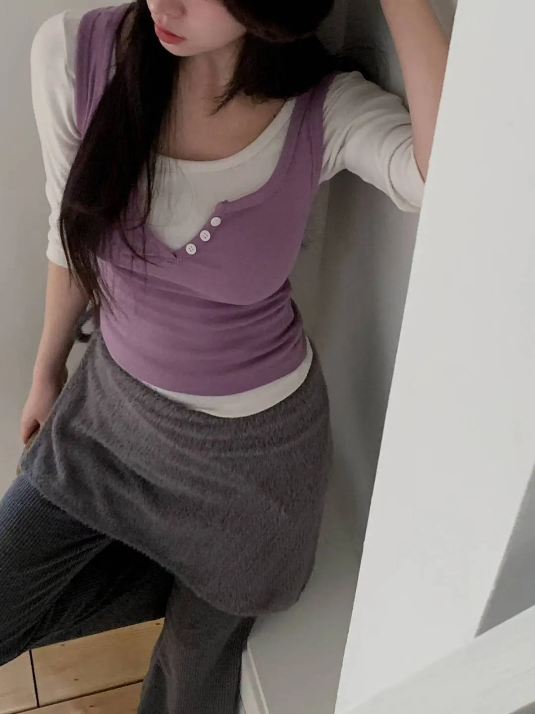 25LA09 絨料七分袖上衣+排扣背心 SET 3色