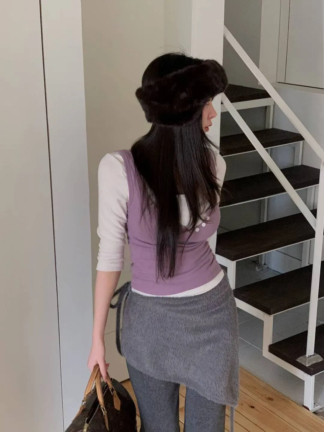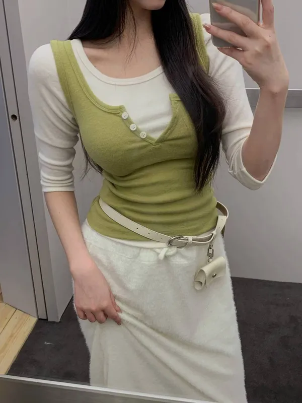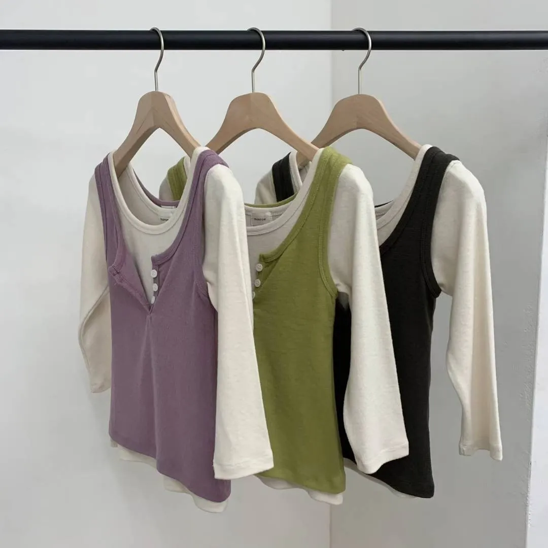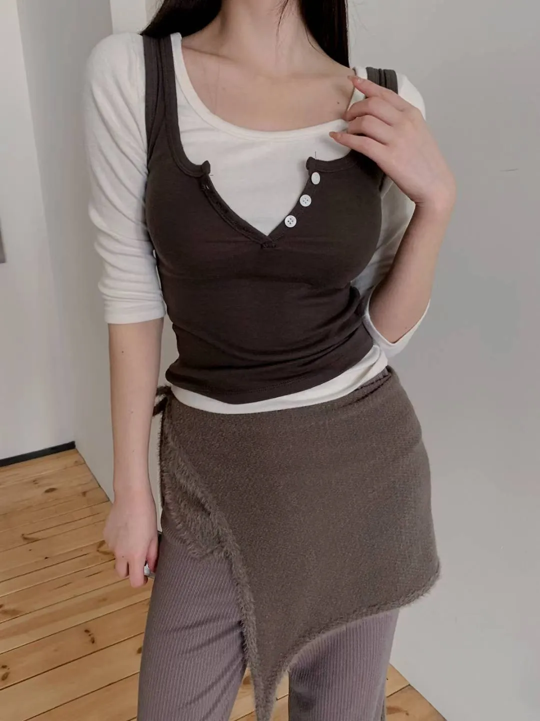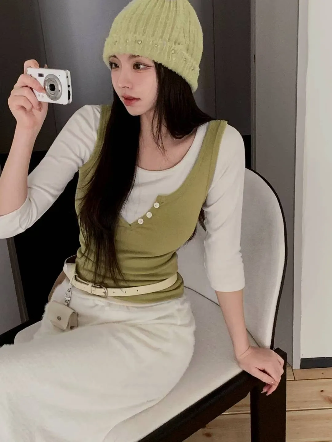 25LA09 絨料七分袖上衣+排扣背心 SET 3色