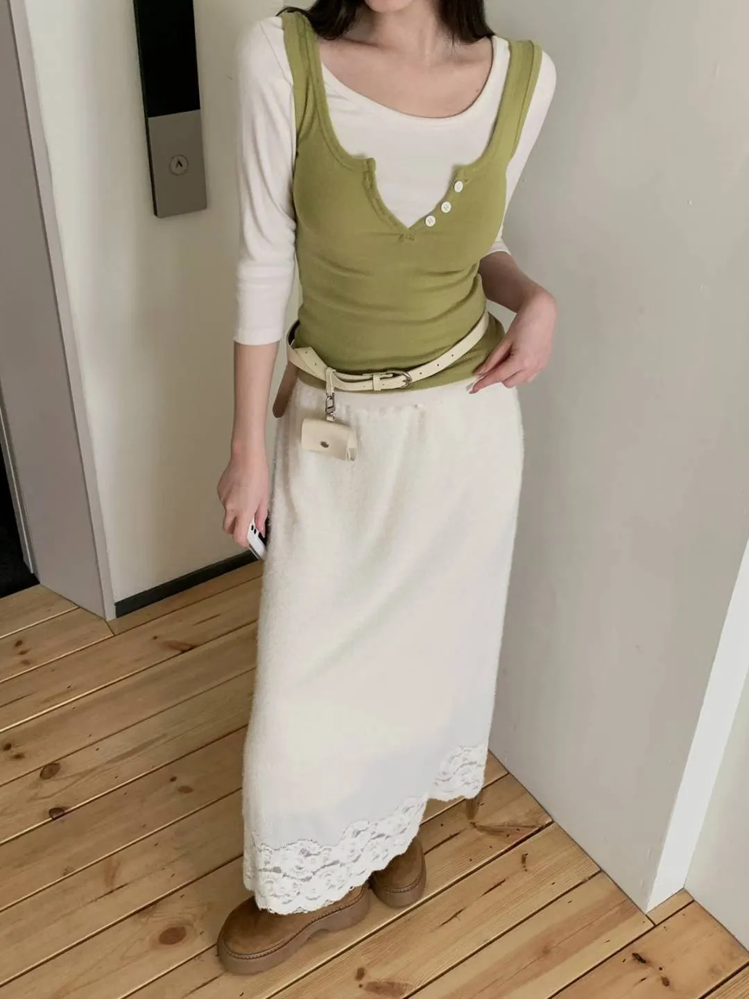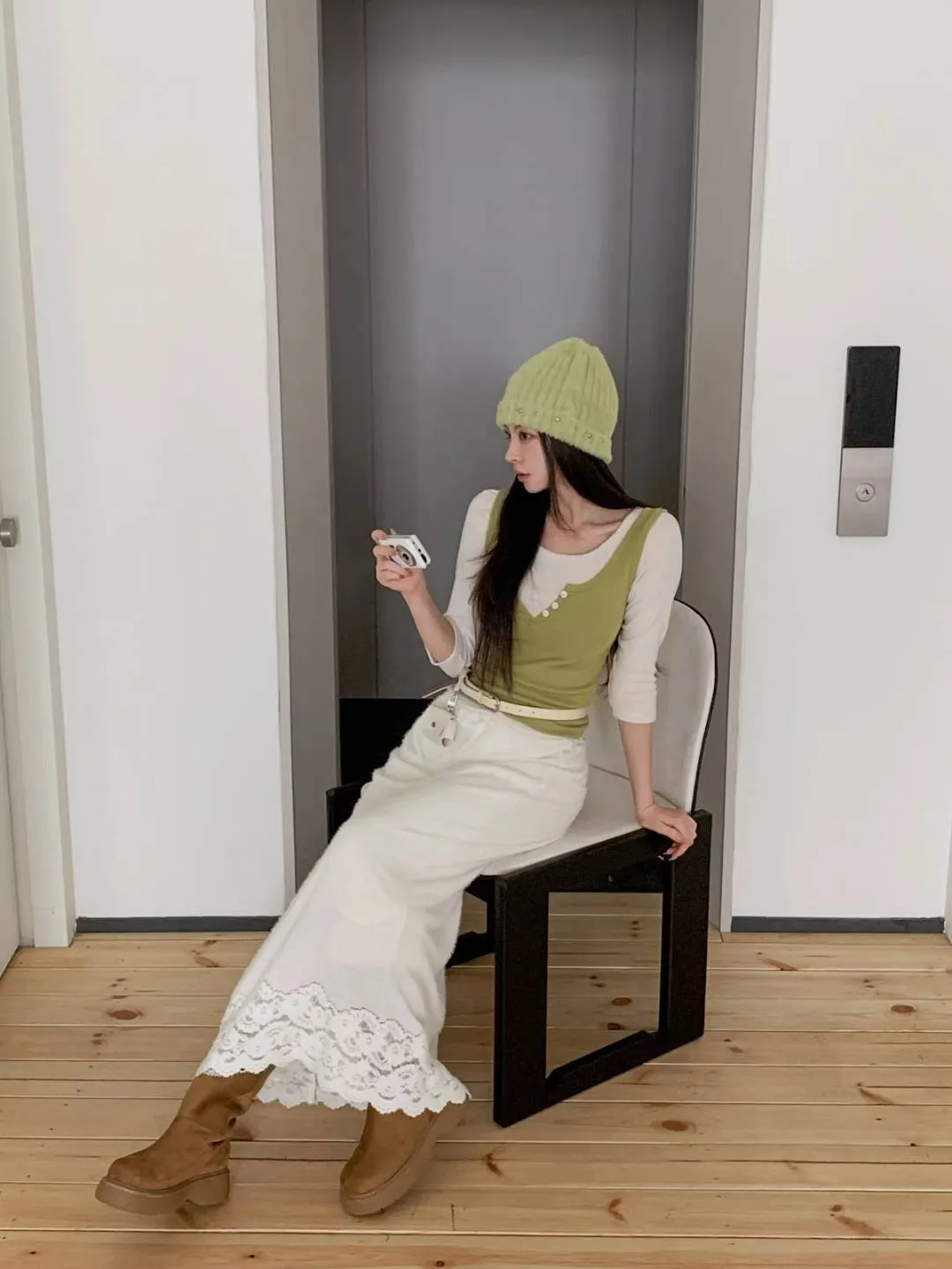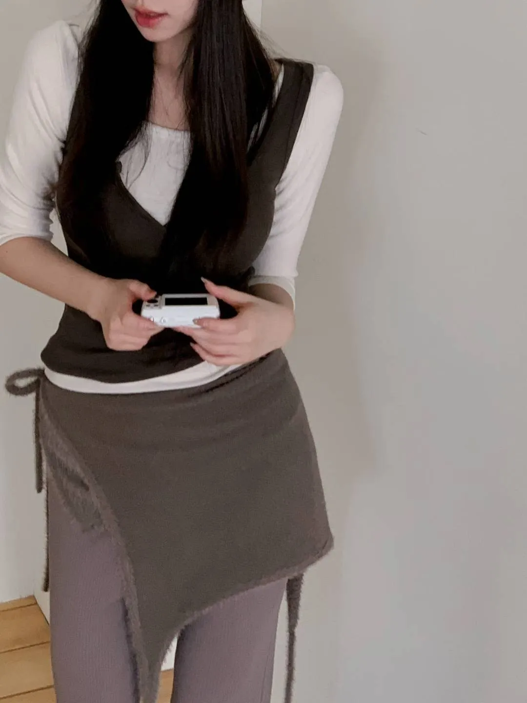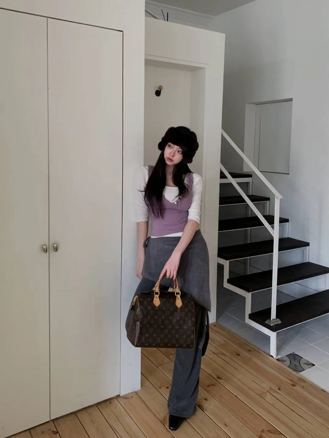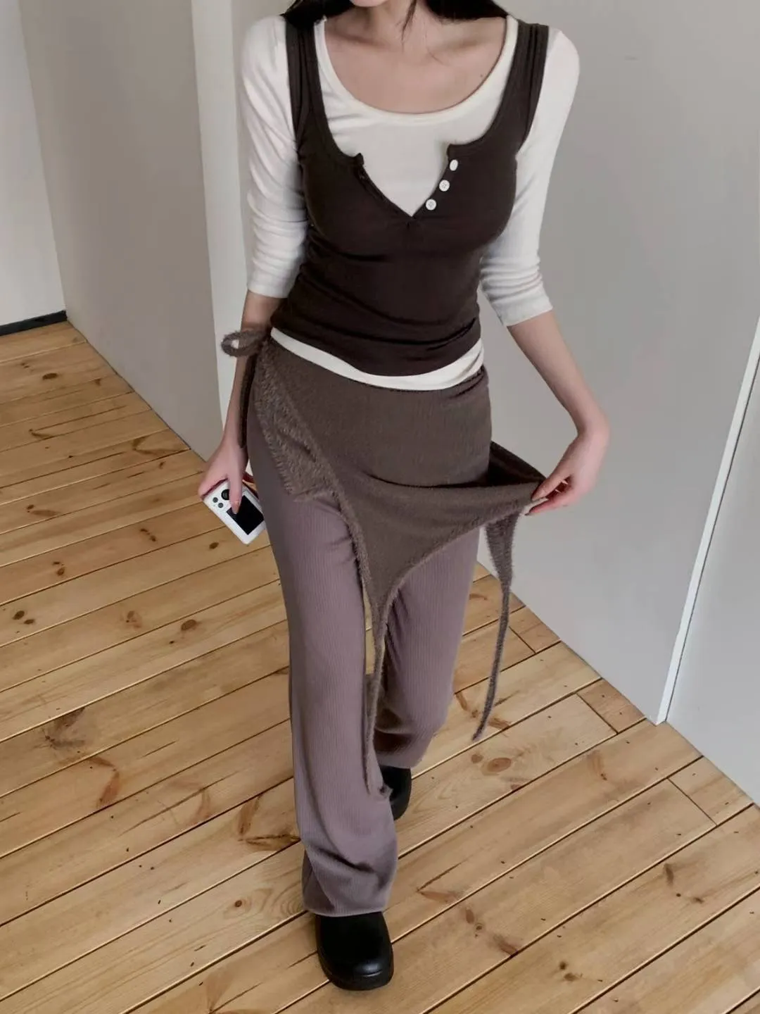 25LA09 絨料七分袖上衣+排扣背心 SET 3色