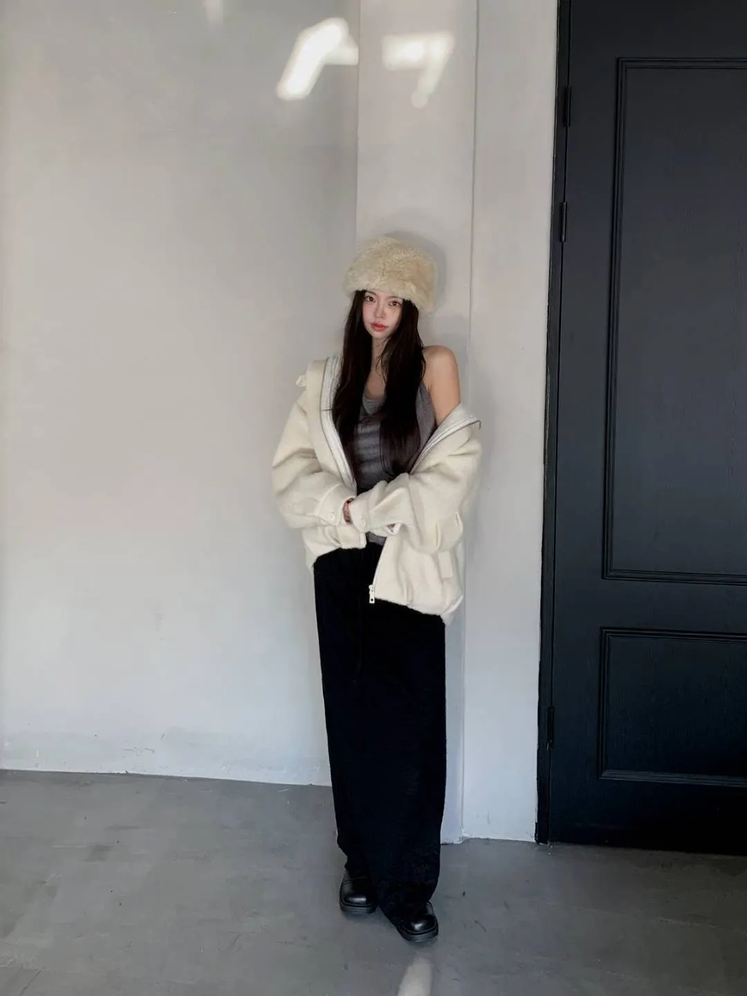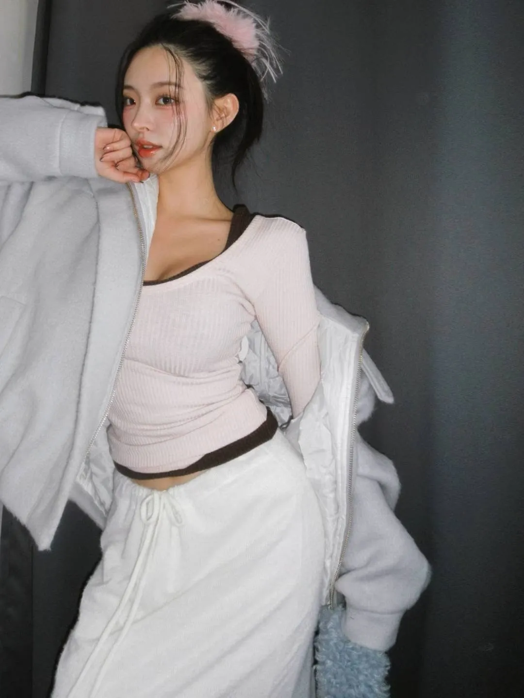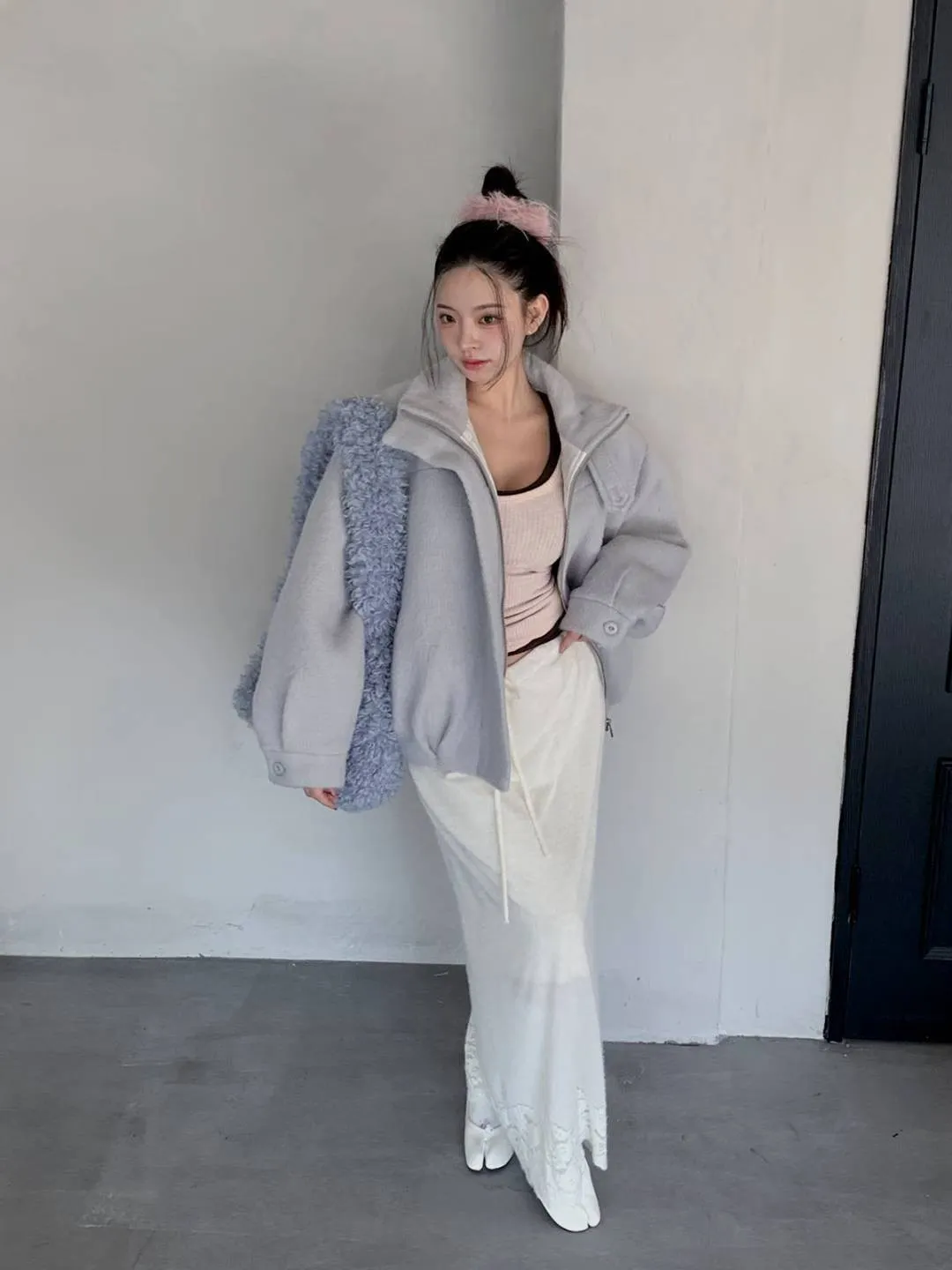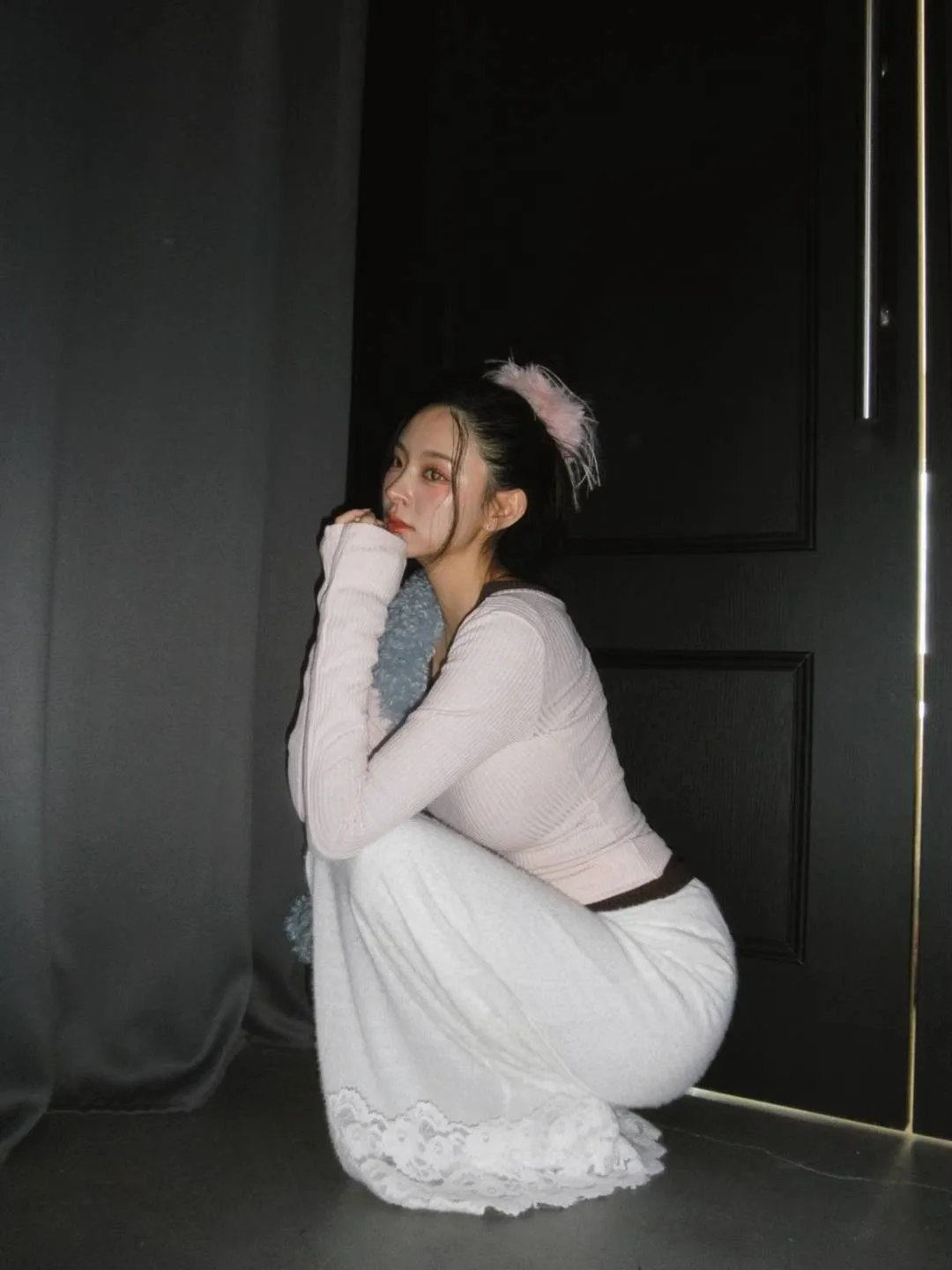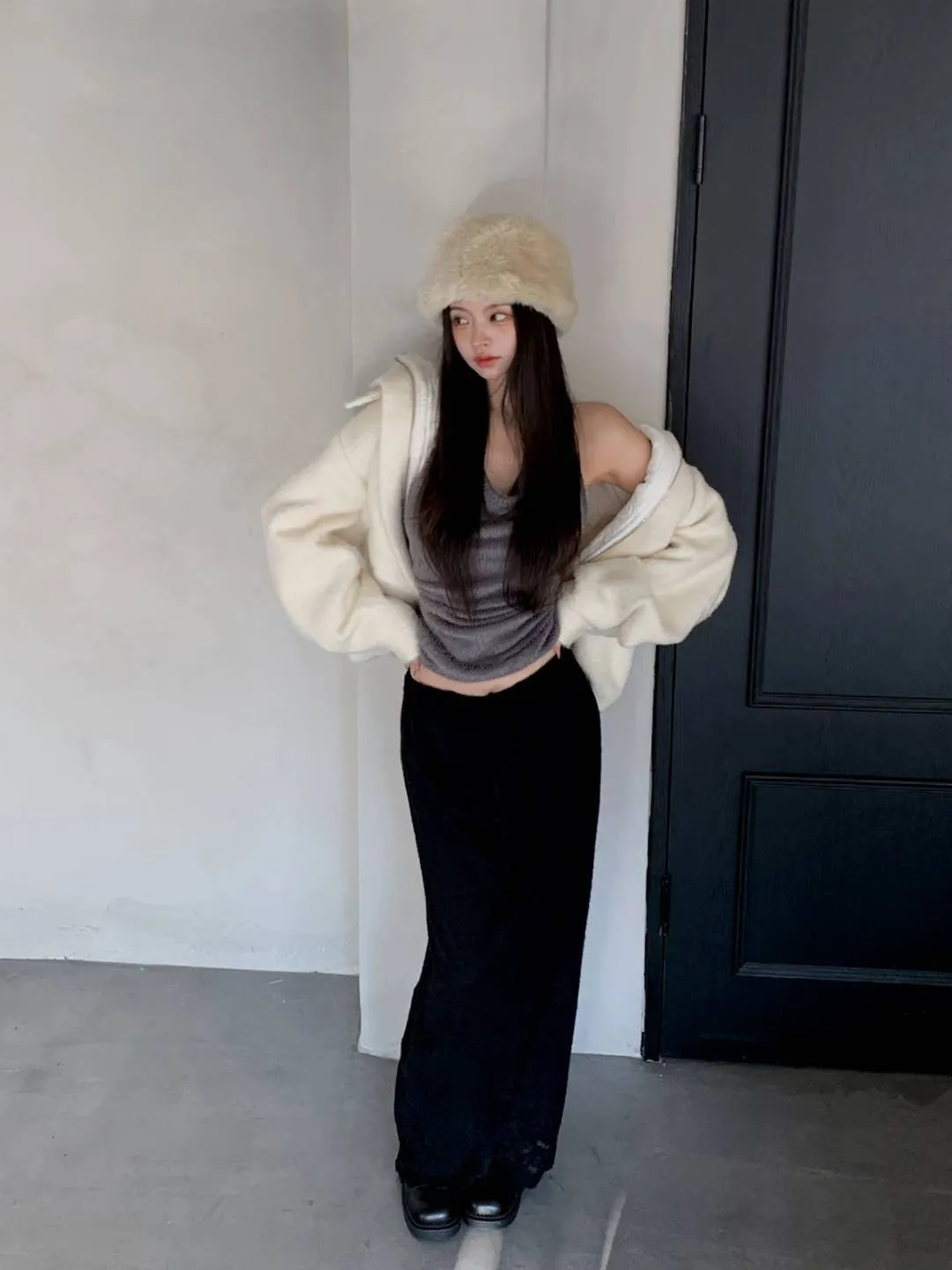 25LA10 絨料下擺蕾絲腰綁半身長裙 2色