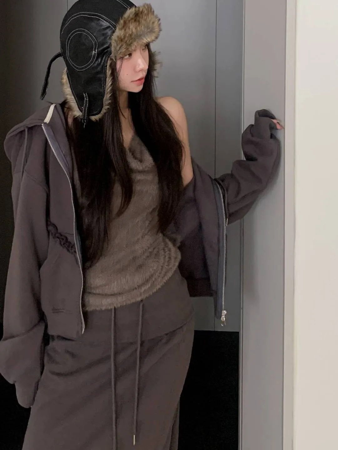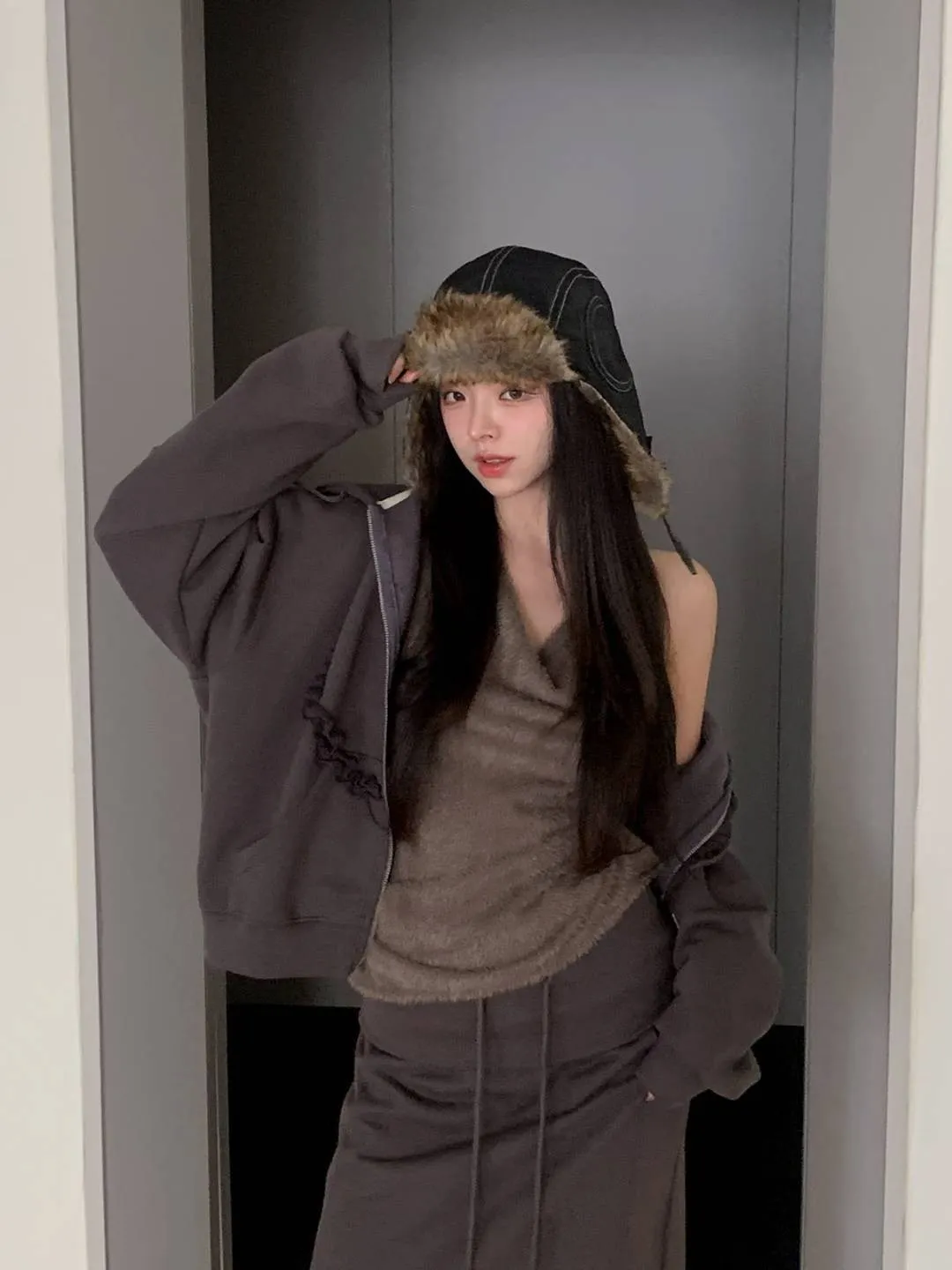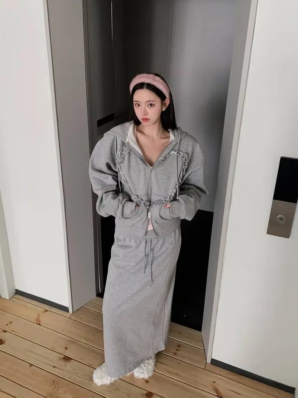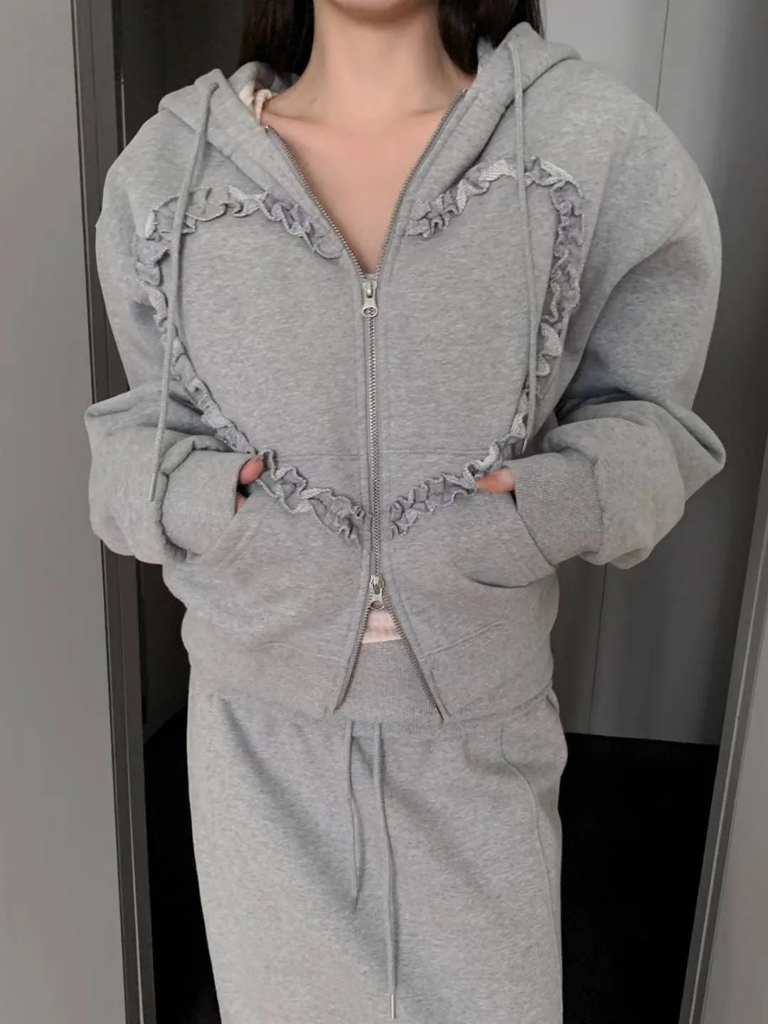 25LA13 奶油擠花愛心雙拉鏈加絨連帽外套 3色
