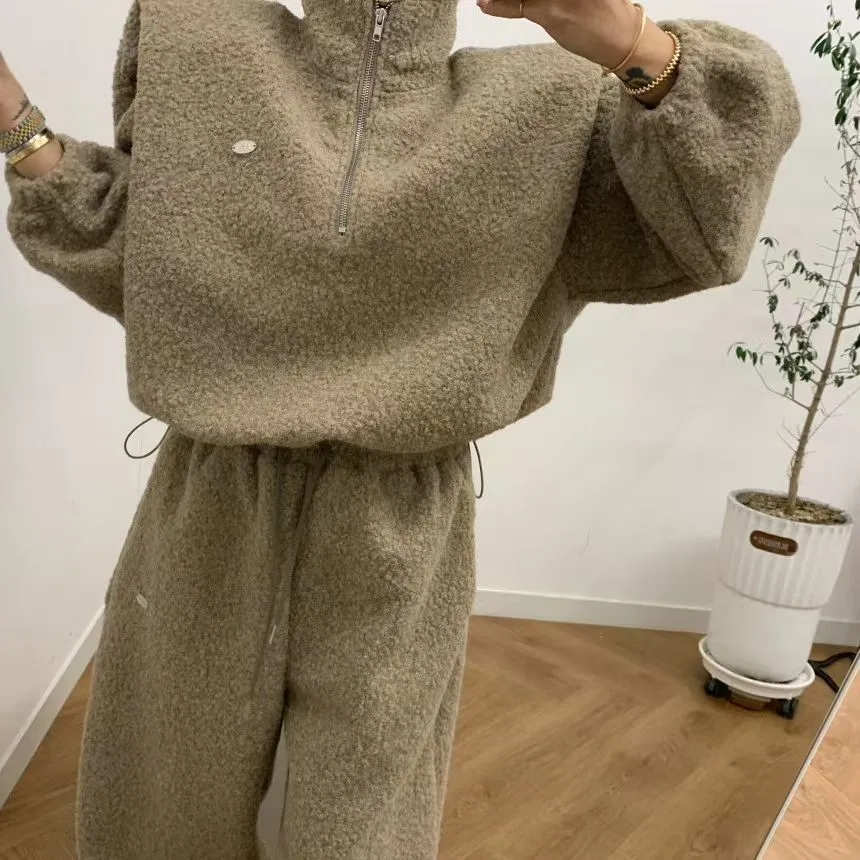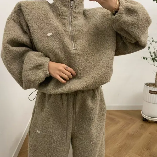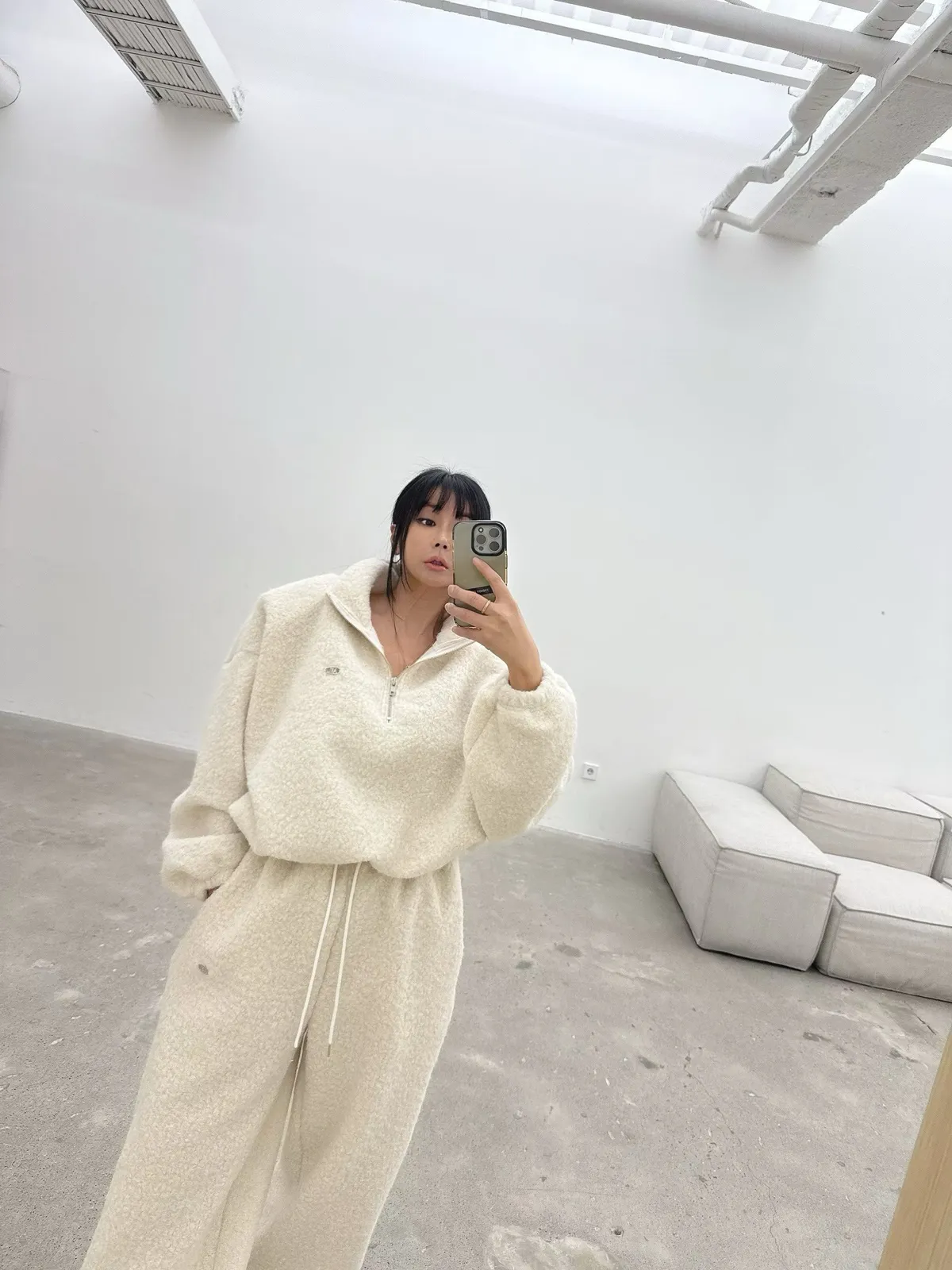 25LB04 QQ壓縮毛立領拉鏈大學T 2色