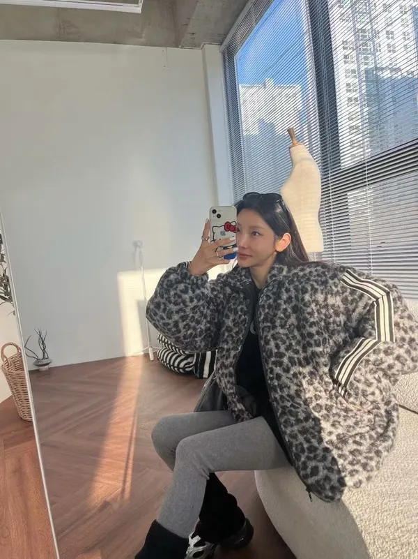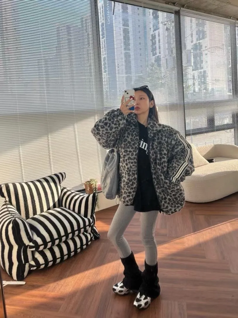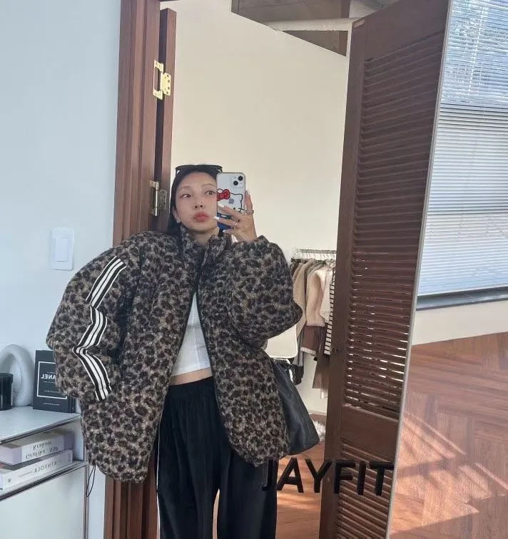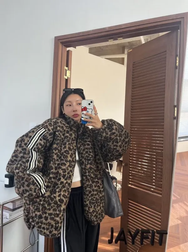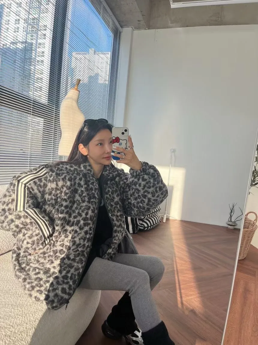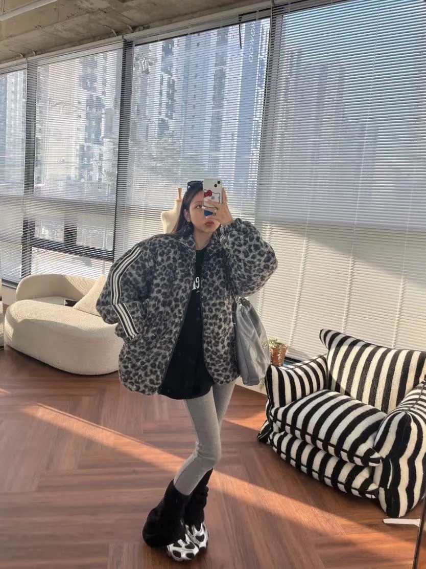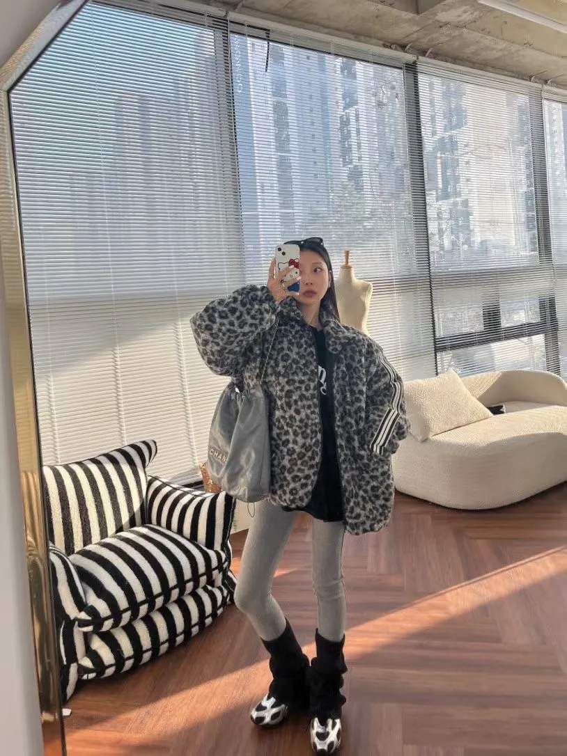 25LB08 捲捲壓縮毛豹紋夾棉外套 2色