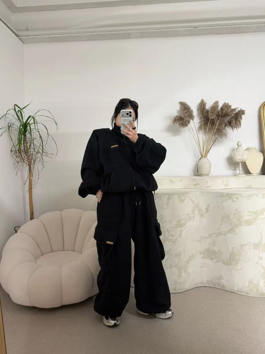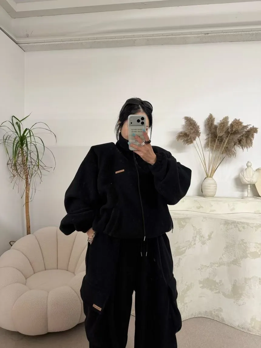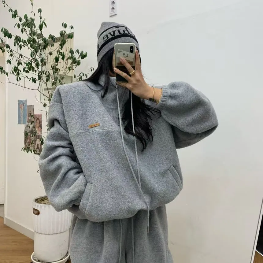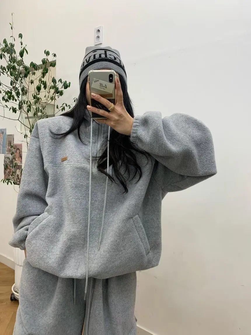 25LB09 搖粒絨立領拉鏈大學T 2色