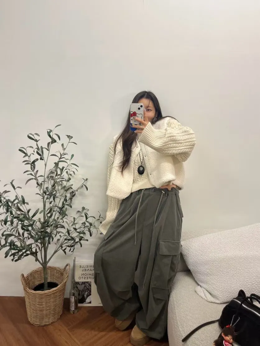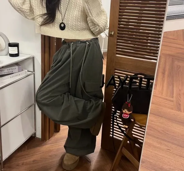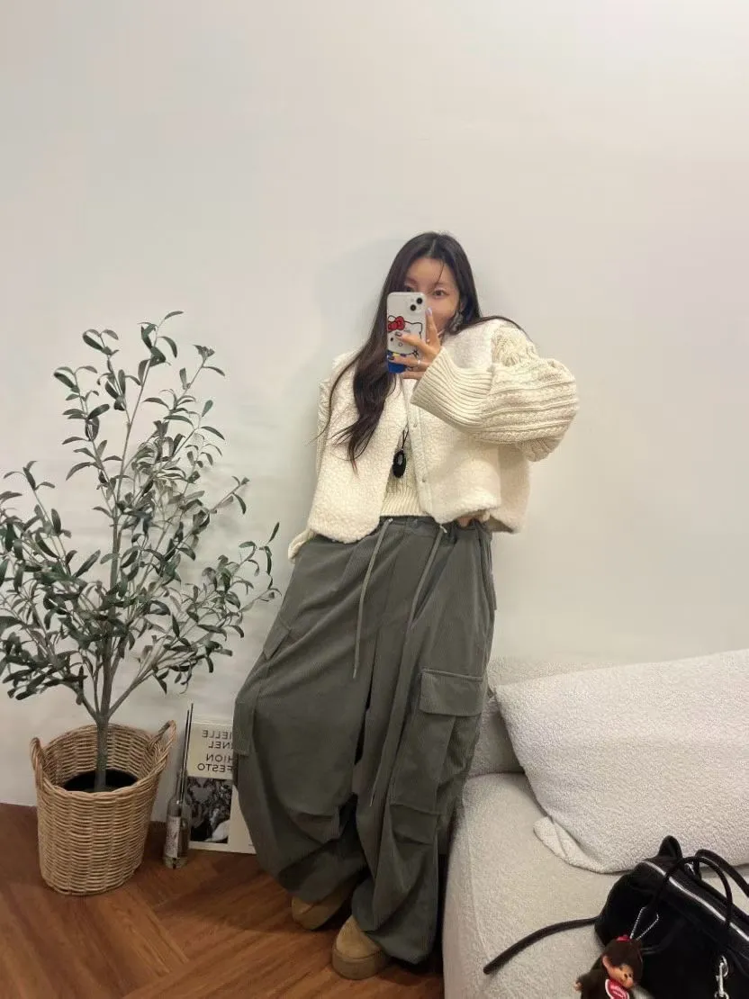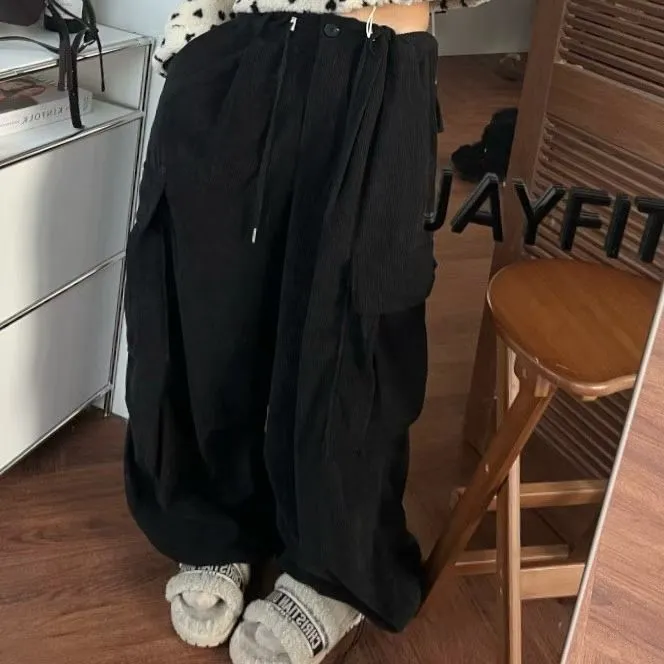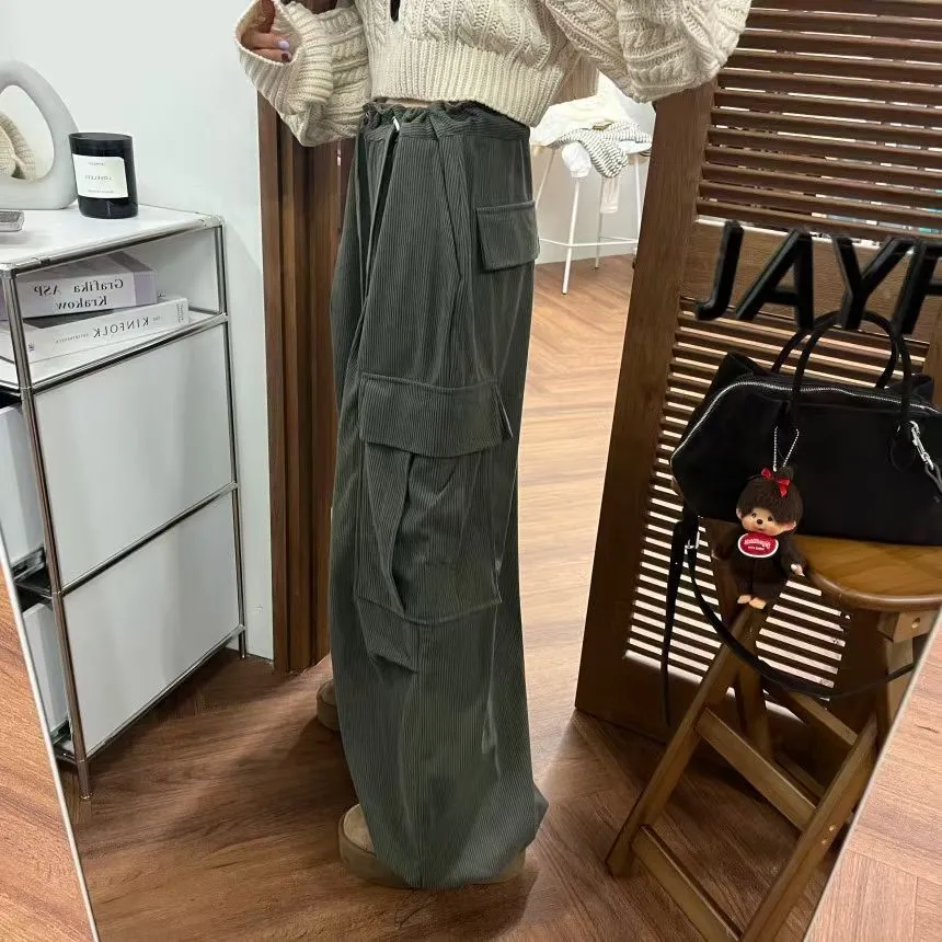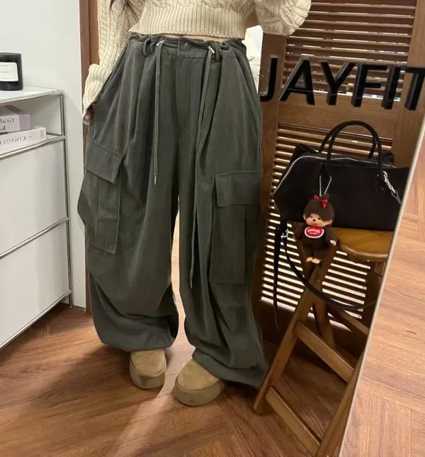 25LB12 細燈芯絨腰繩快調工裝兩穿縮口長褲 2色