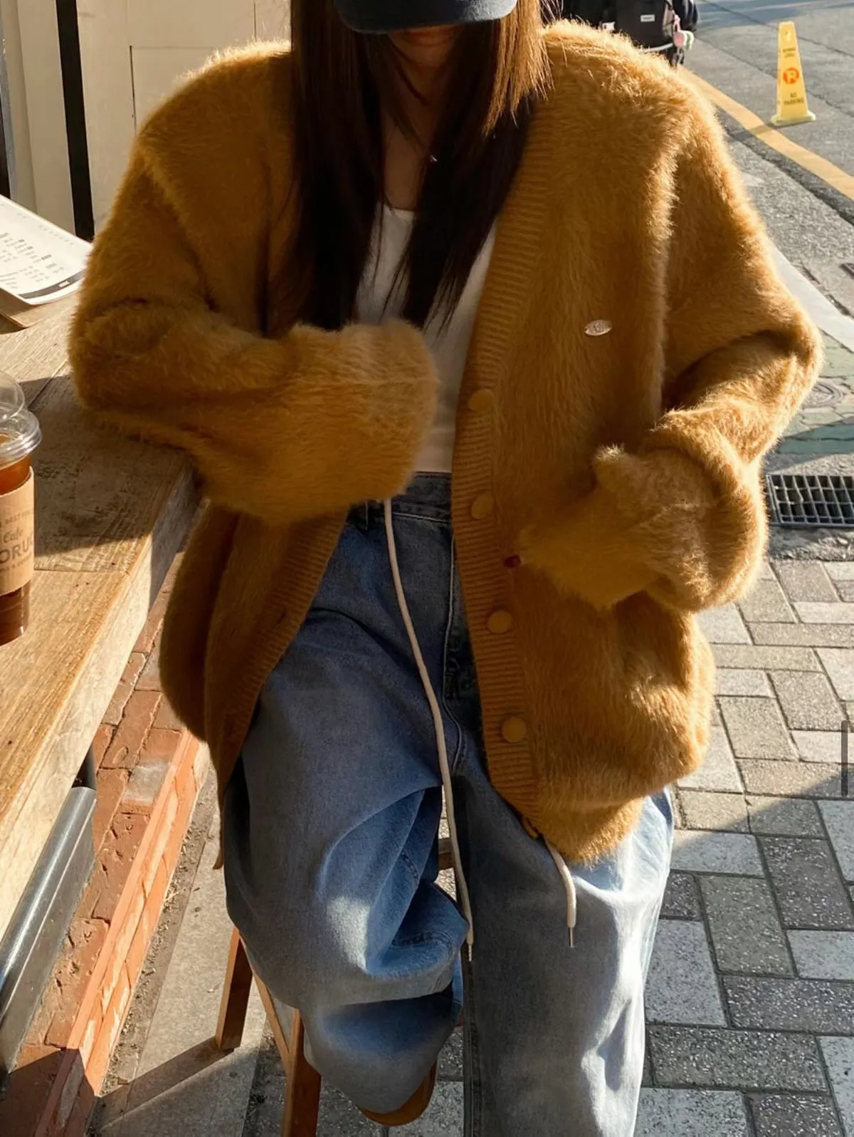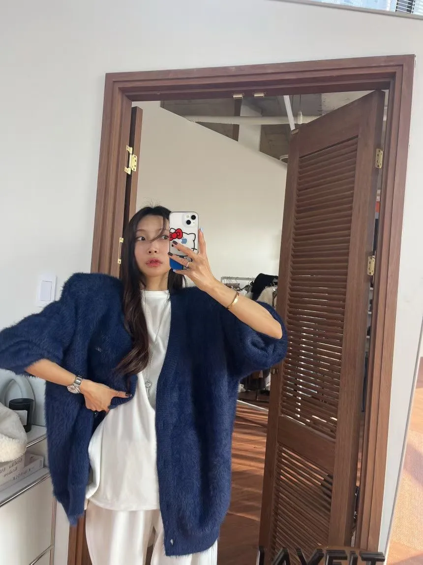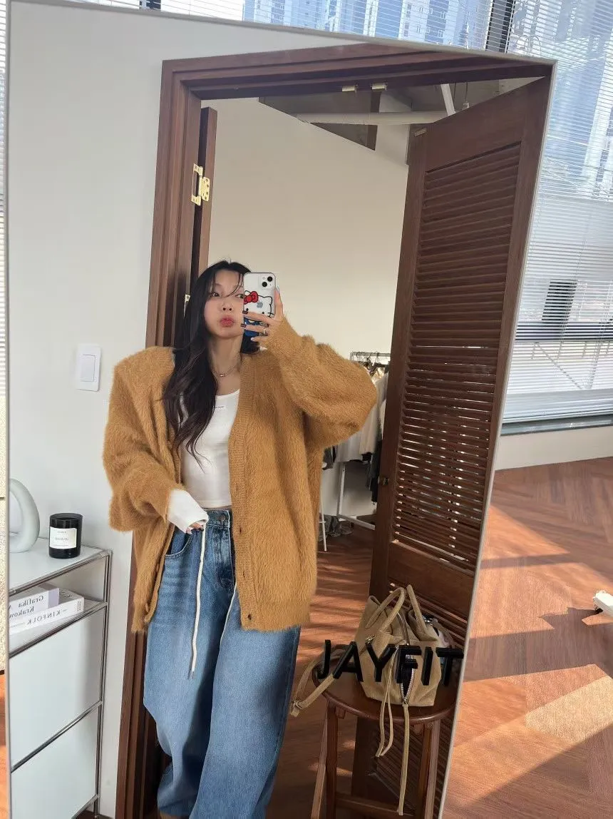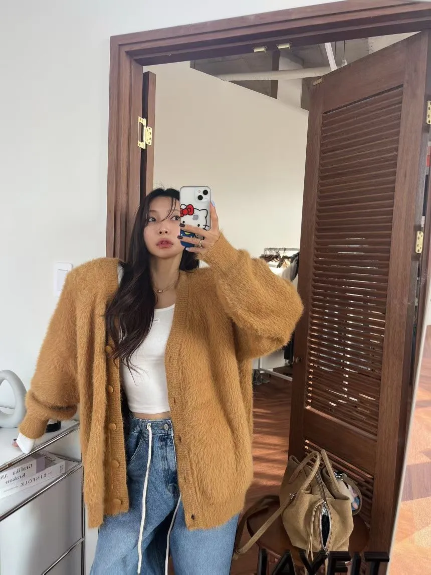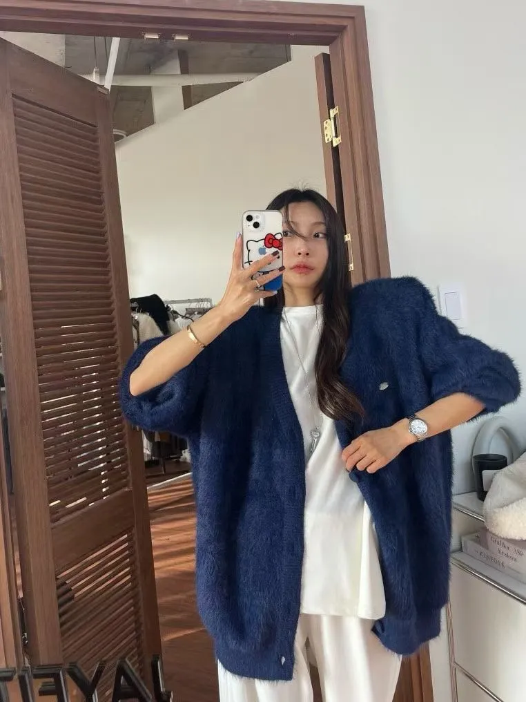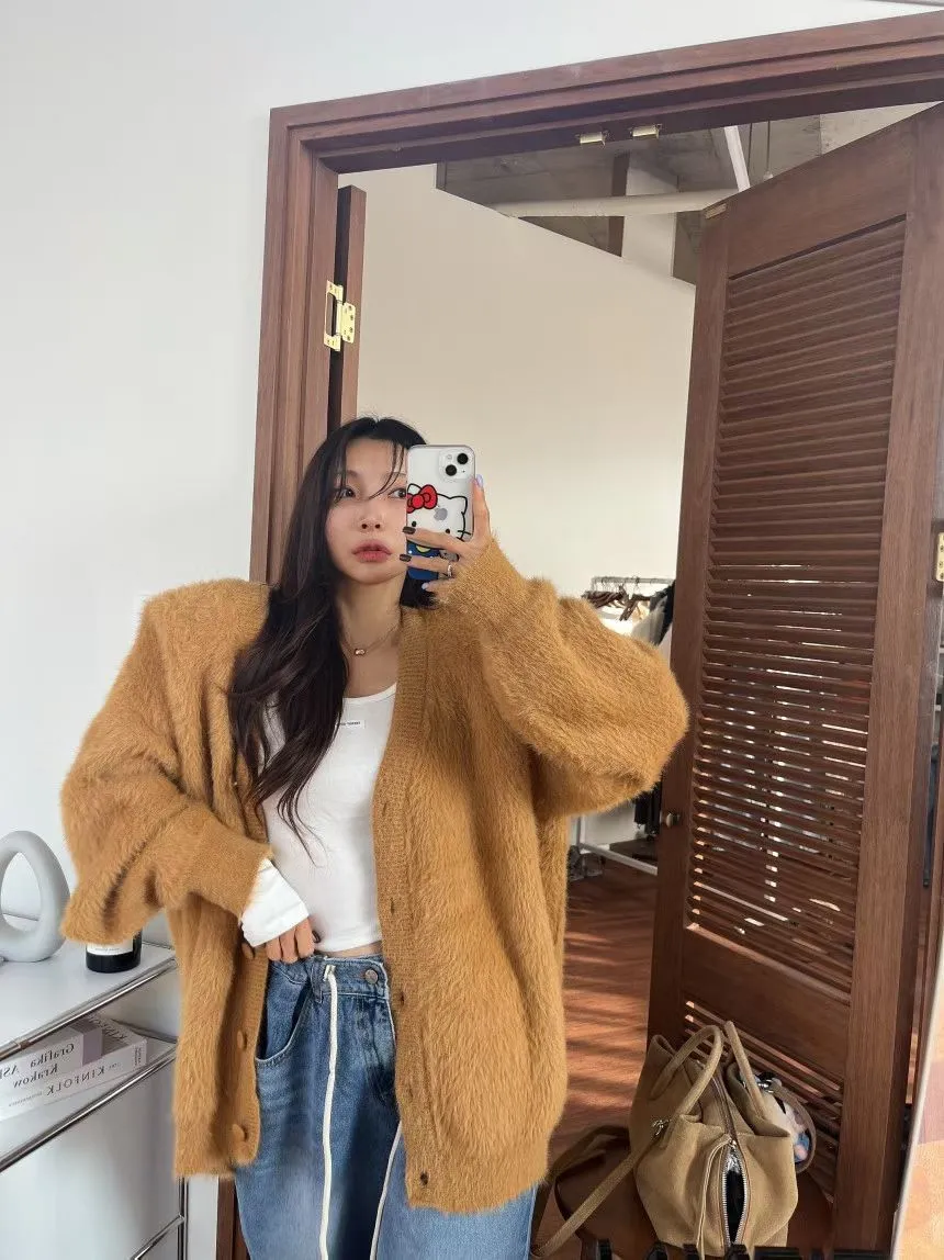 25LB15 馬海毛羊毛中長版排扣罩衫外套 2色