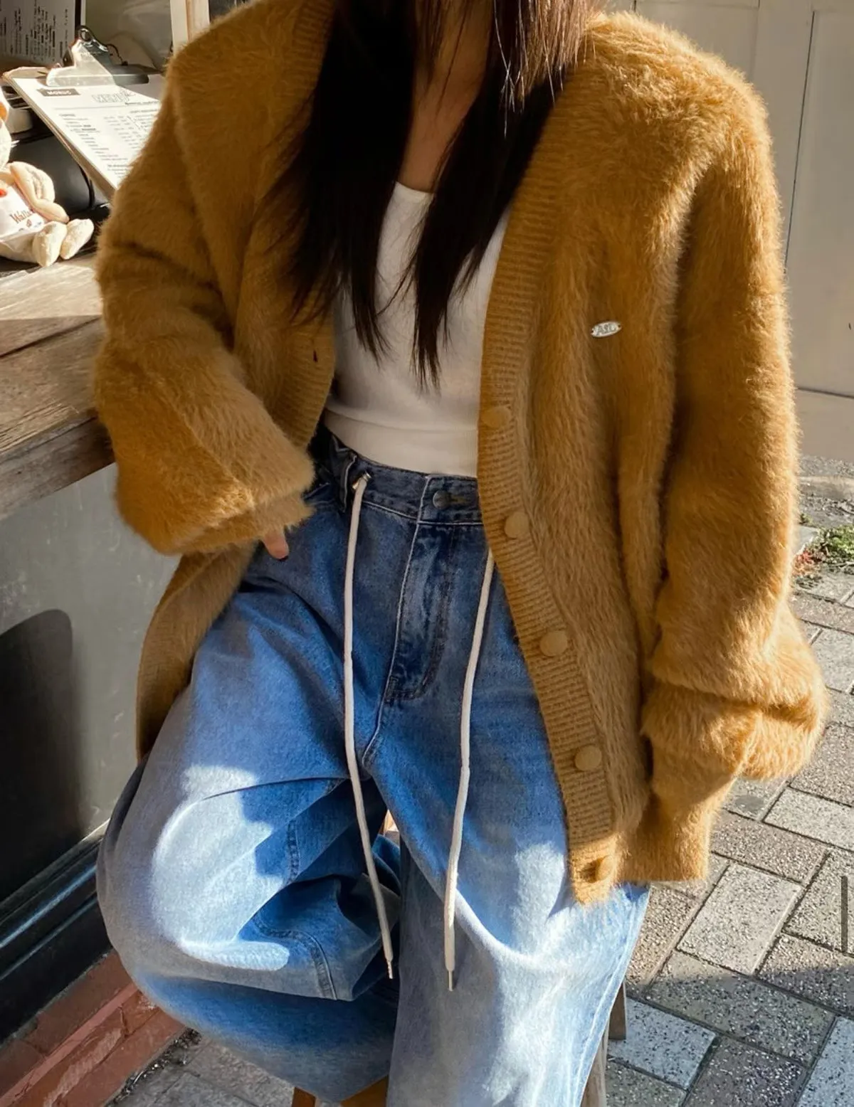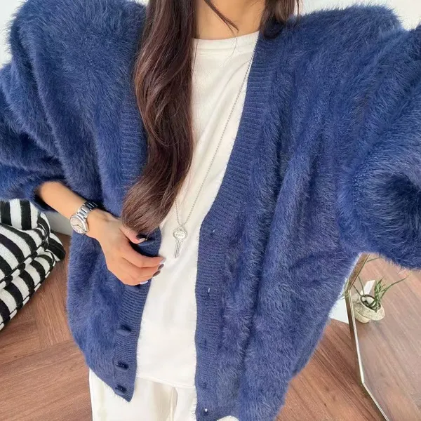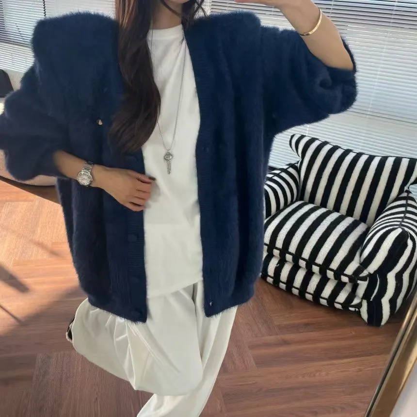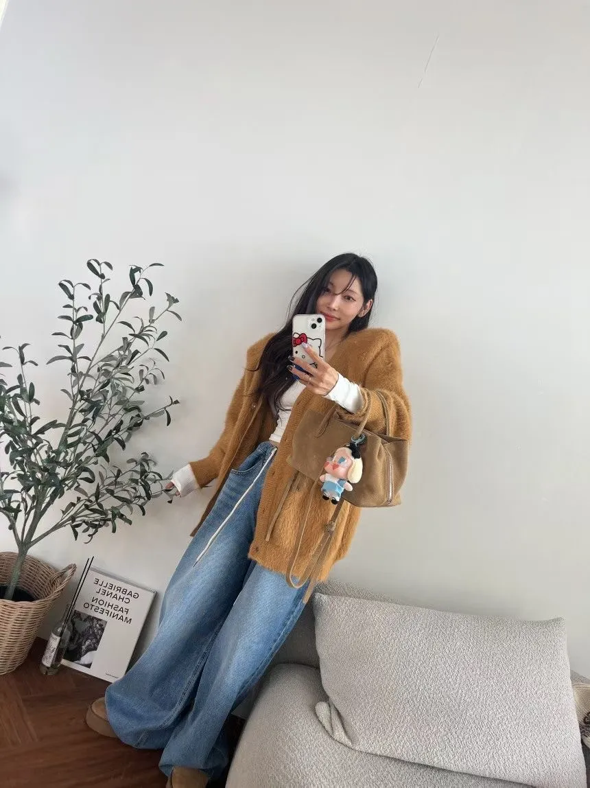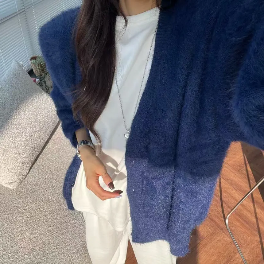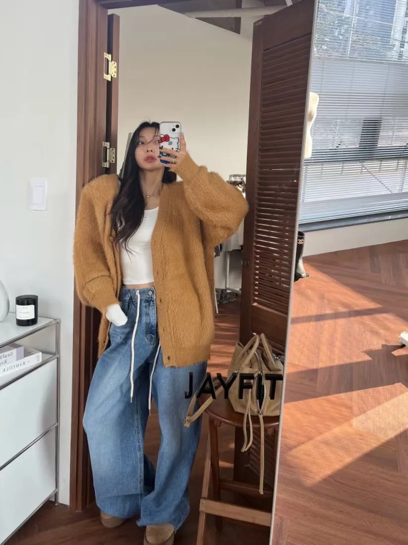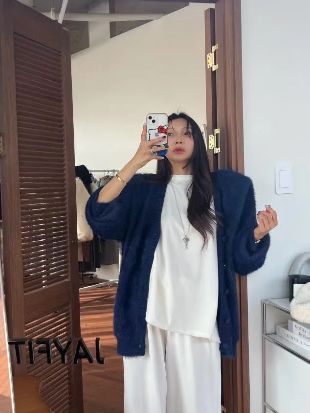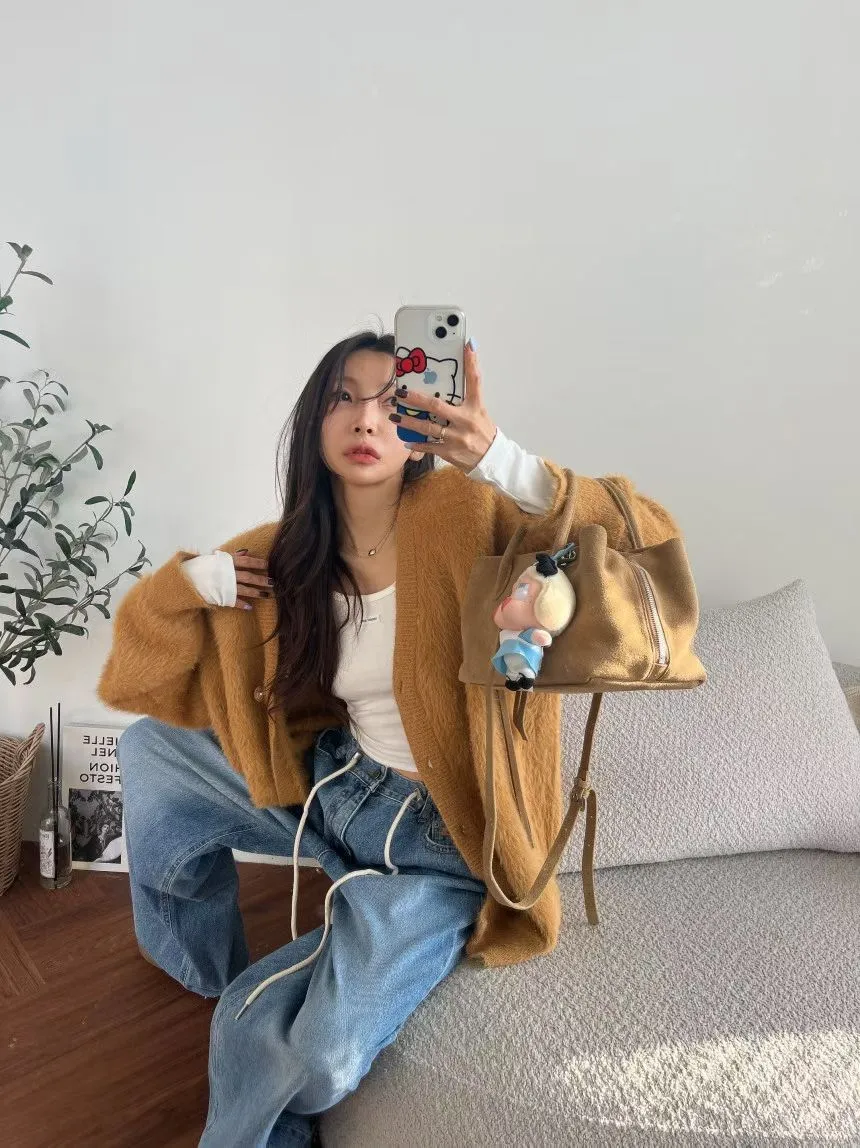 25LB15 馬海毛羊毛中長版排扣罩衫外套 2色