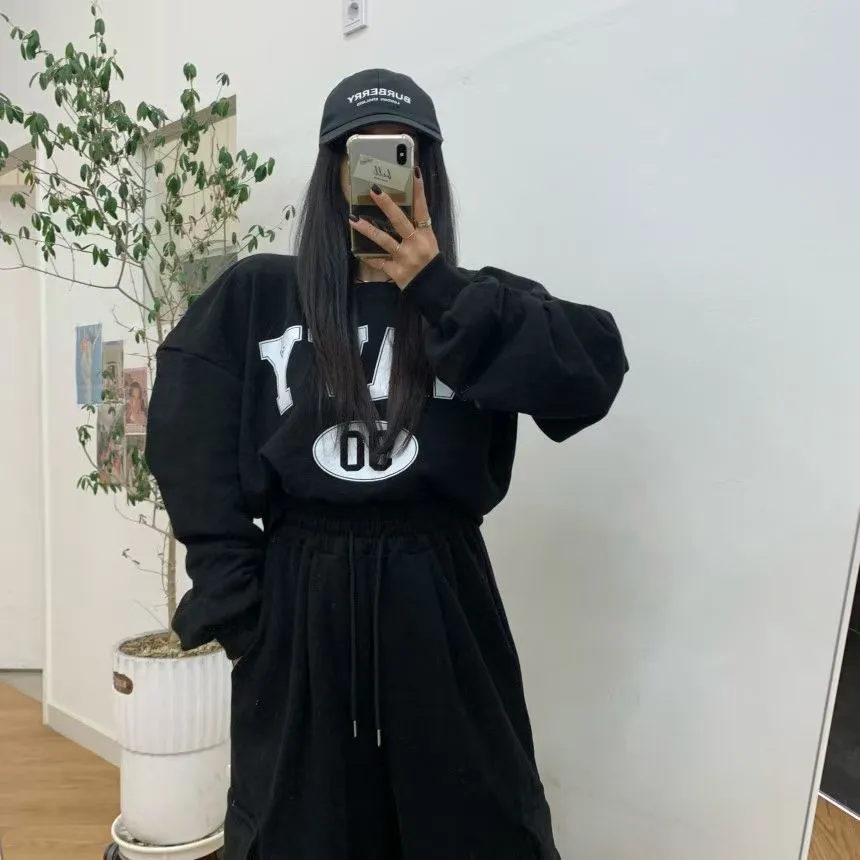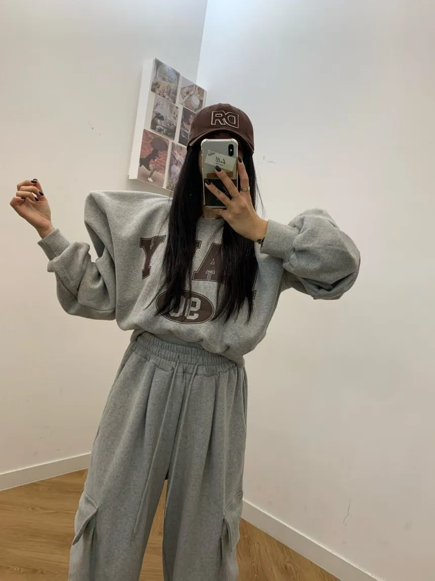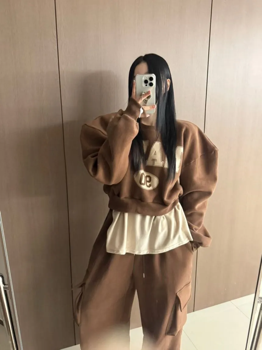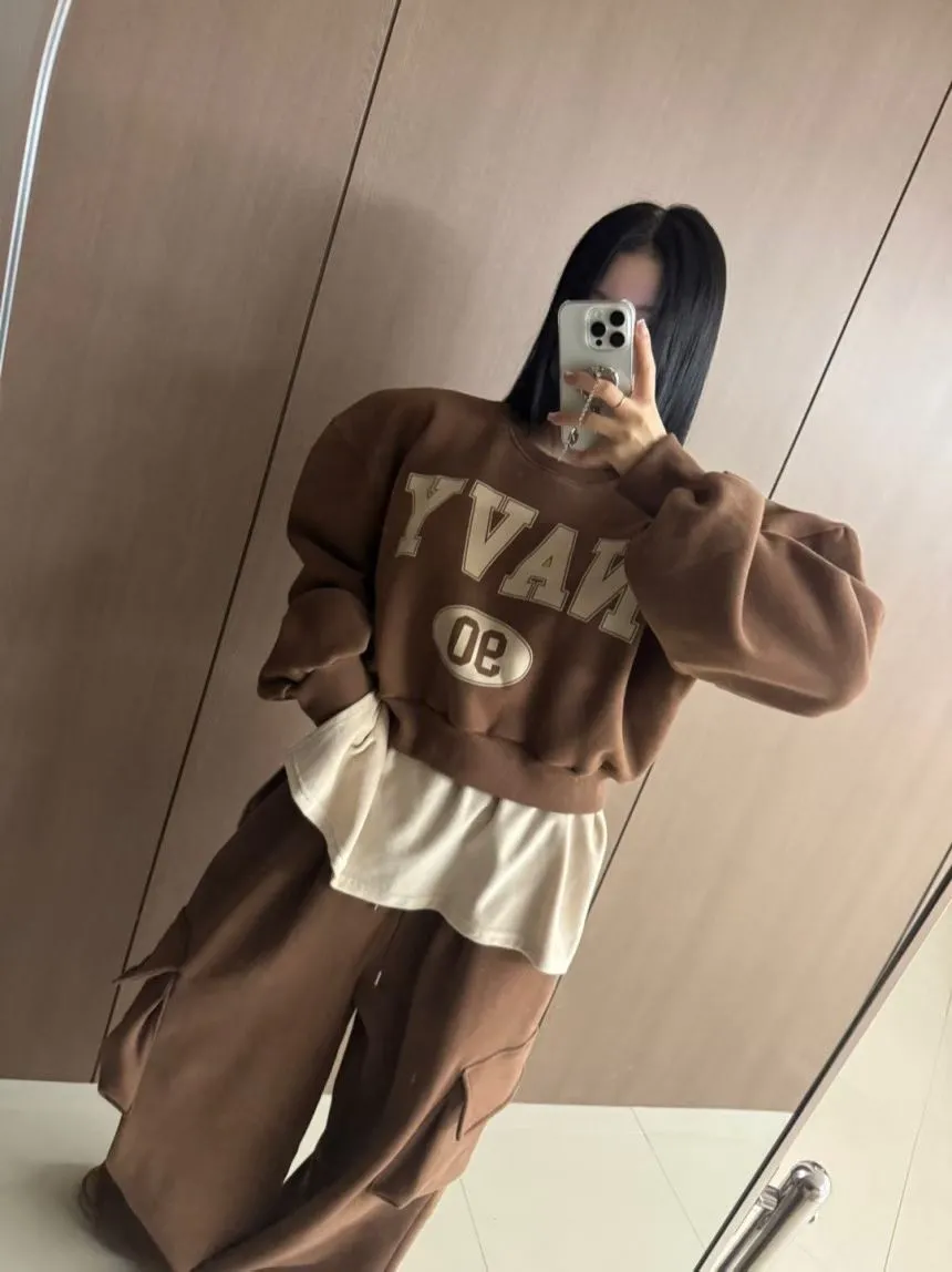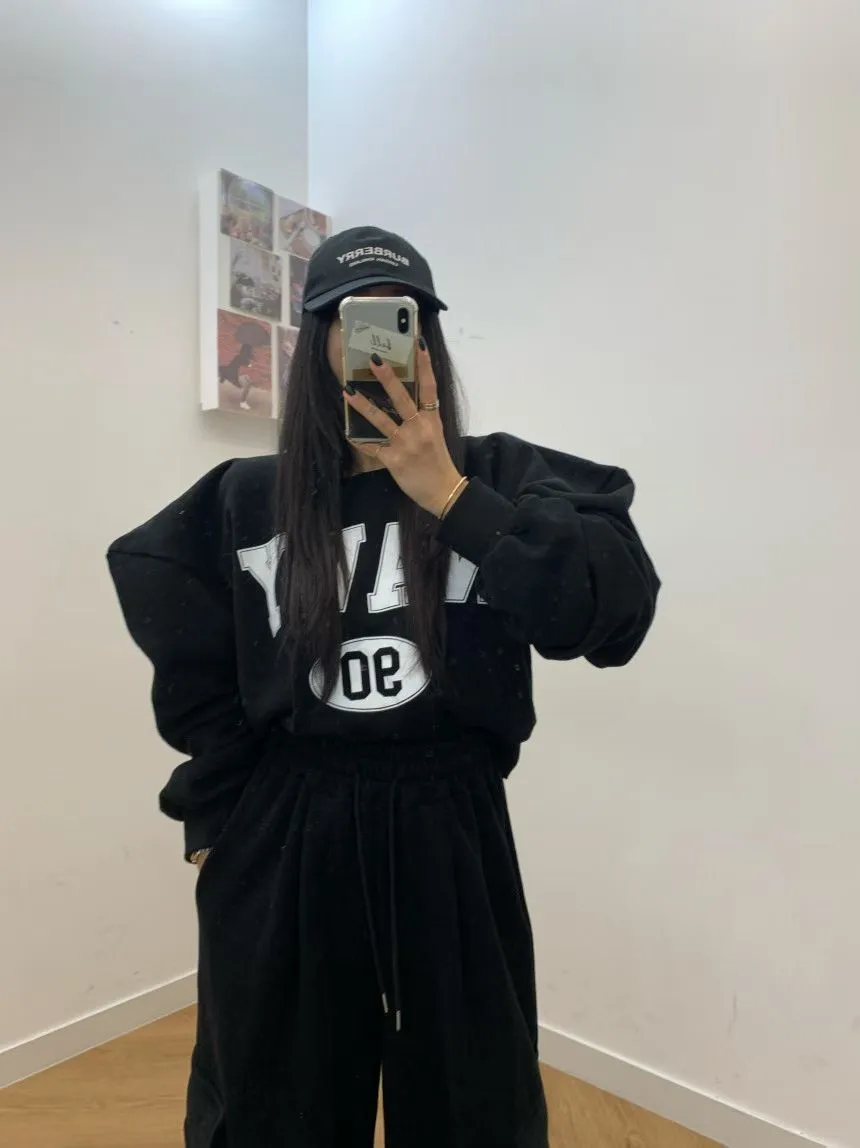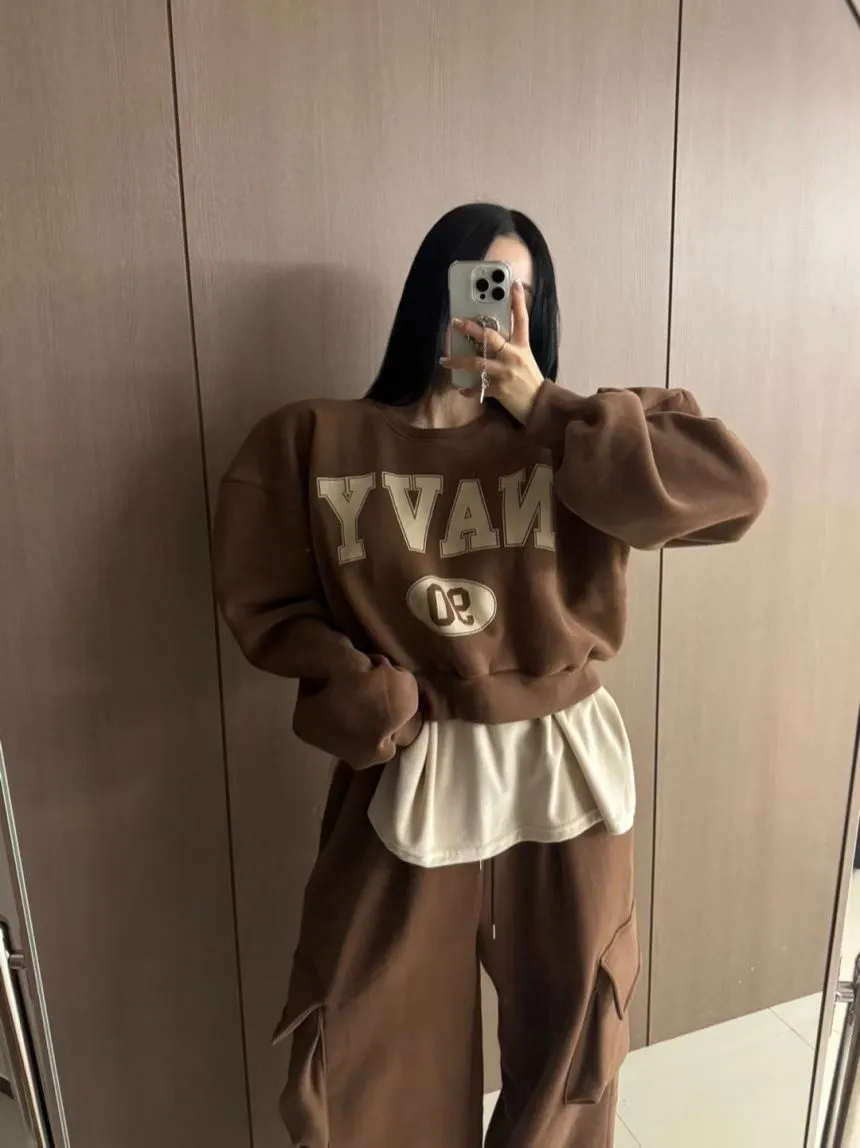 25LB16 NAVY加絨袖剪裁大學T 3色