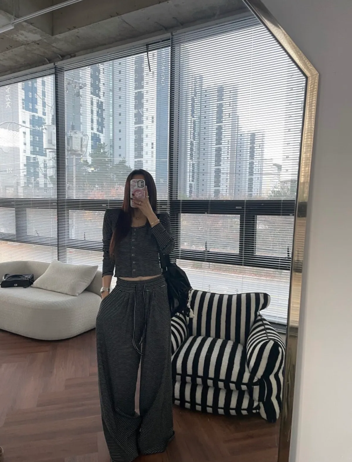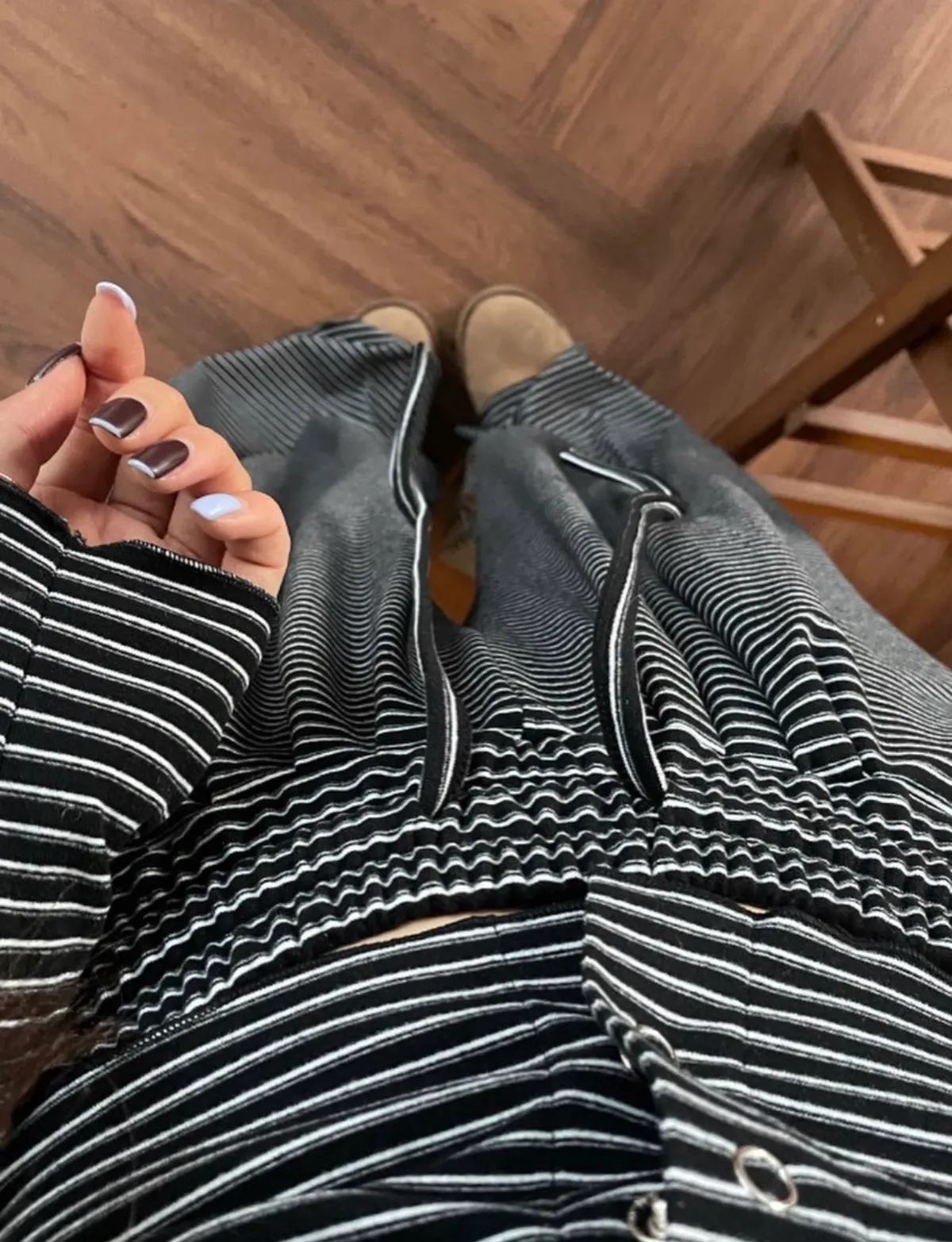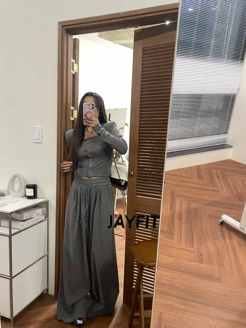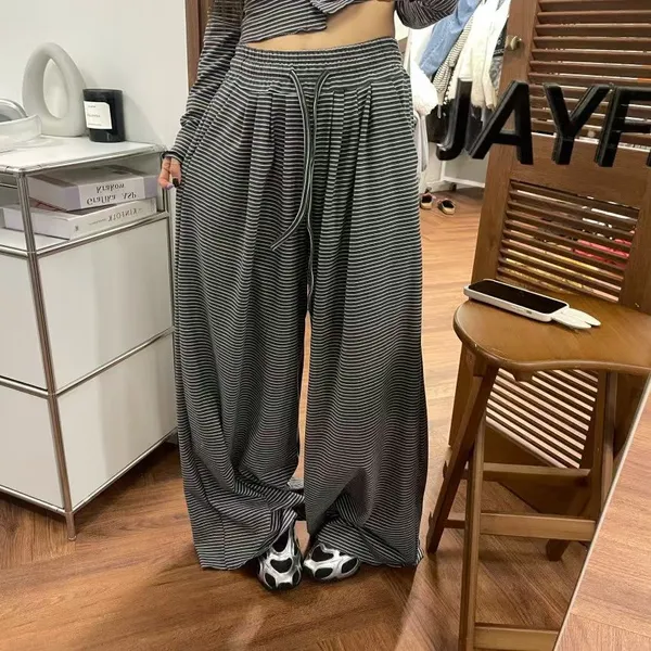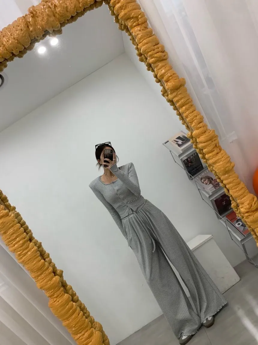 25LB19 蜜桃絨條紋木耳滾邊長褲 3色