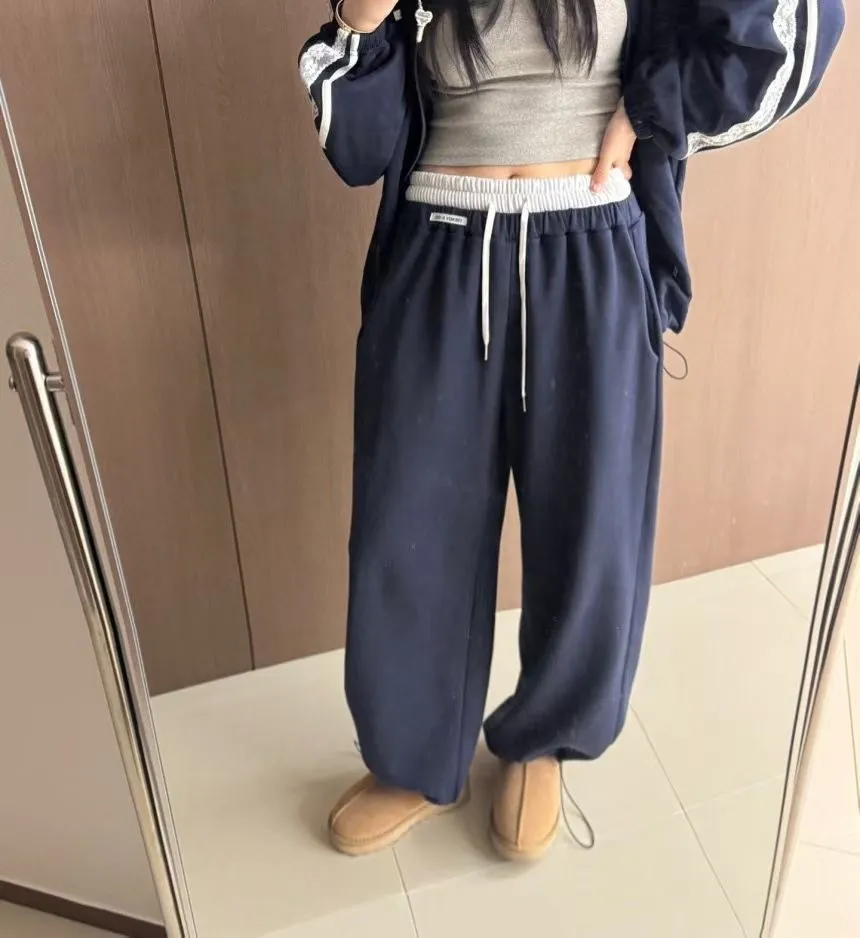 25LB24 雙褲頭小縫標加絨兩穿縮腳棉長褲 3色