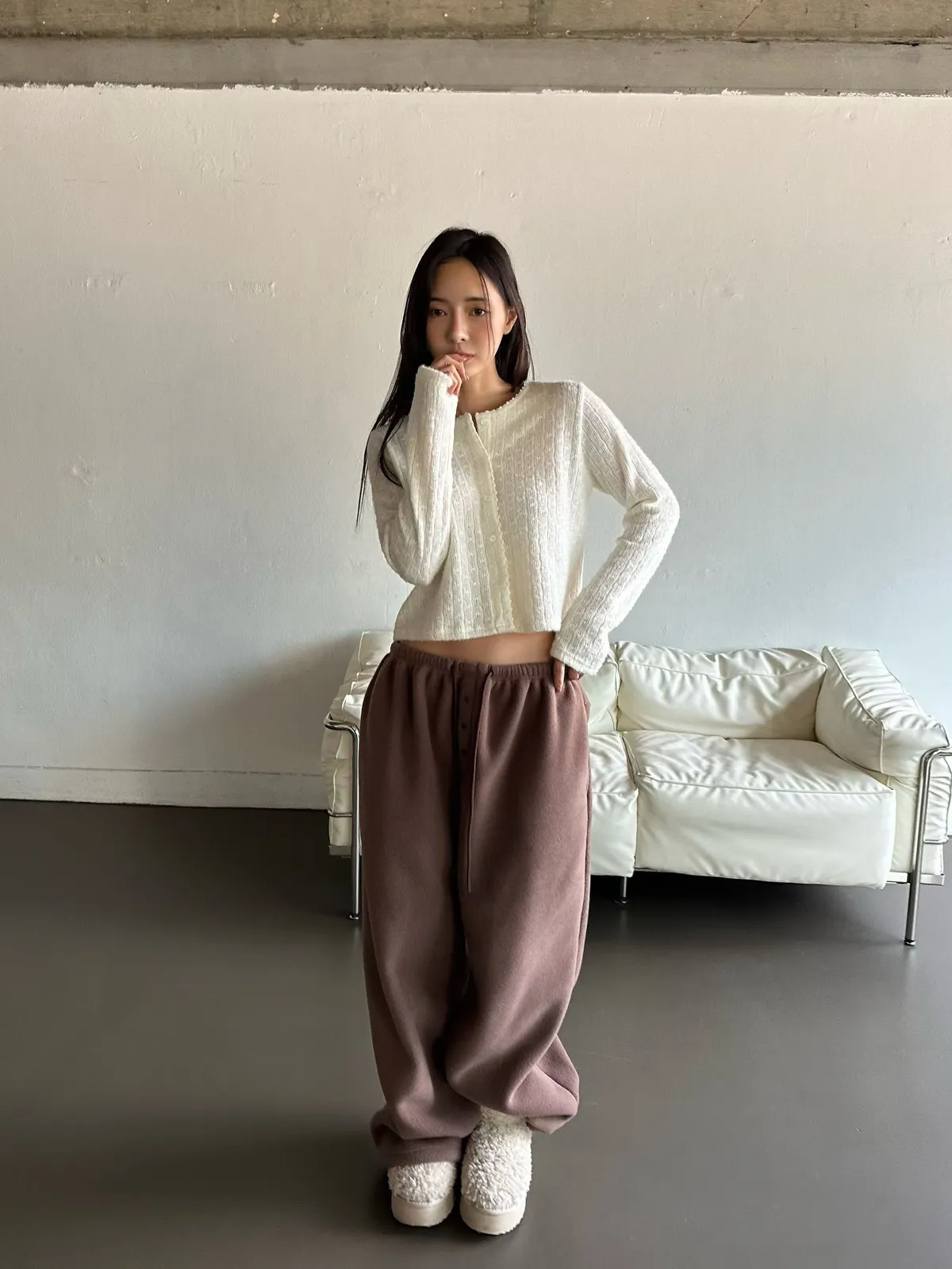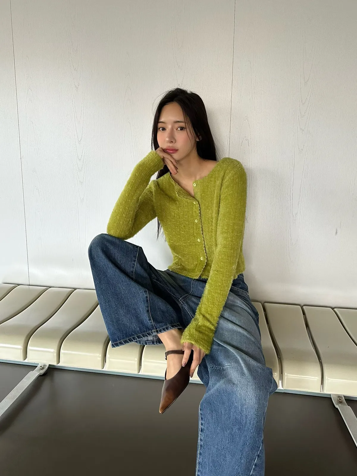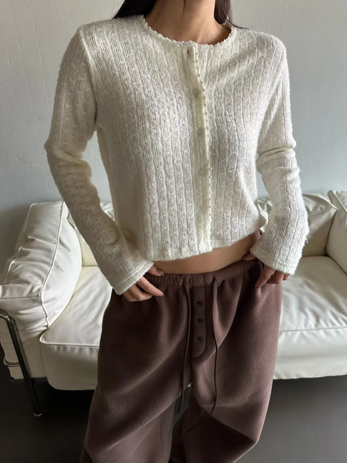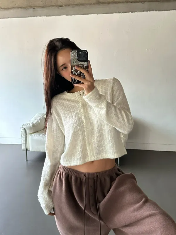 25LC01 毛毛滾邊蕾絲針織排扣罩衫上衣 3色