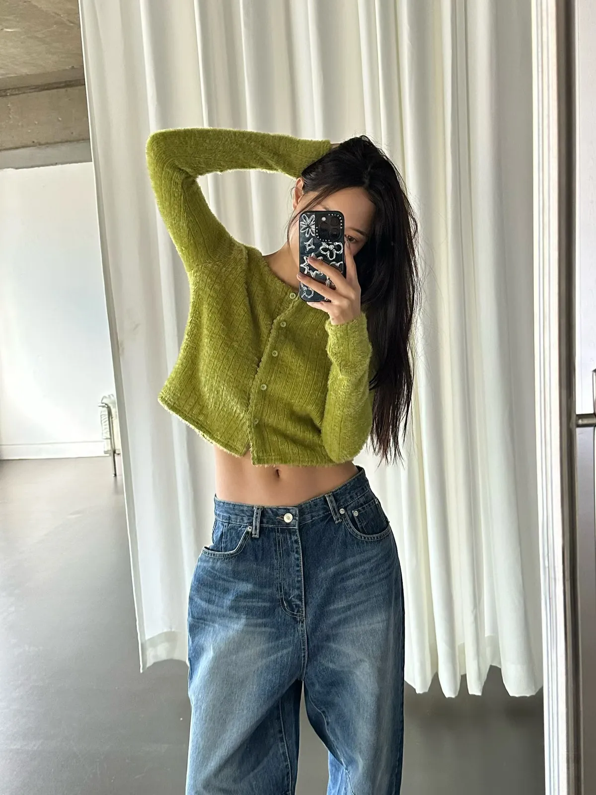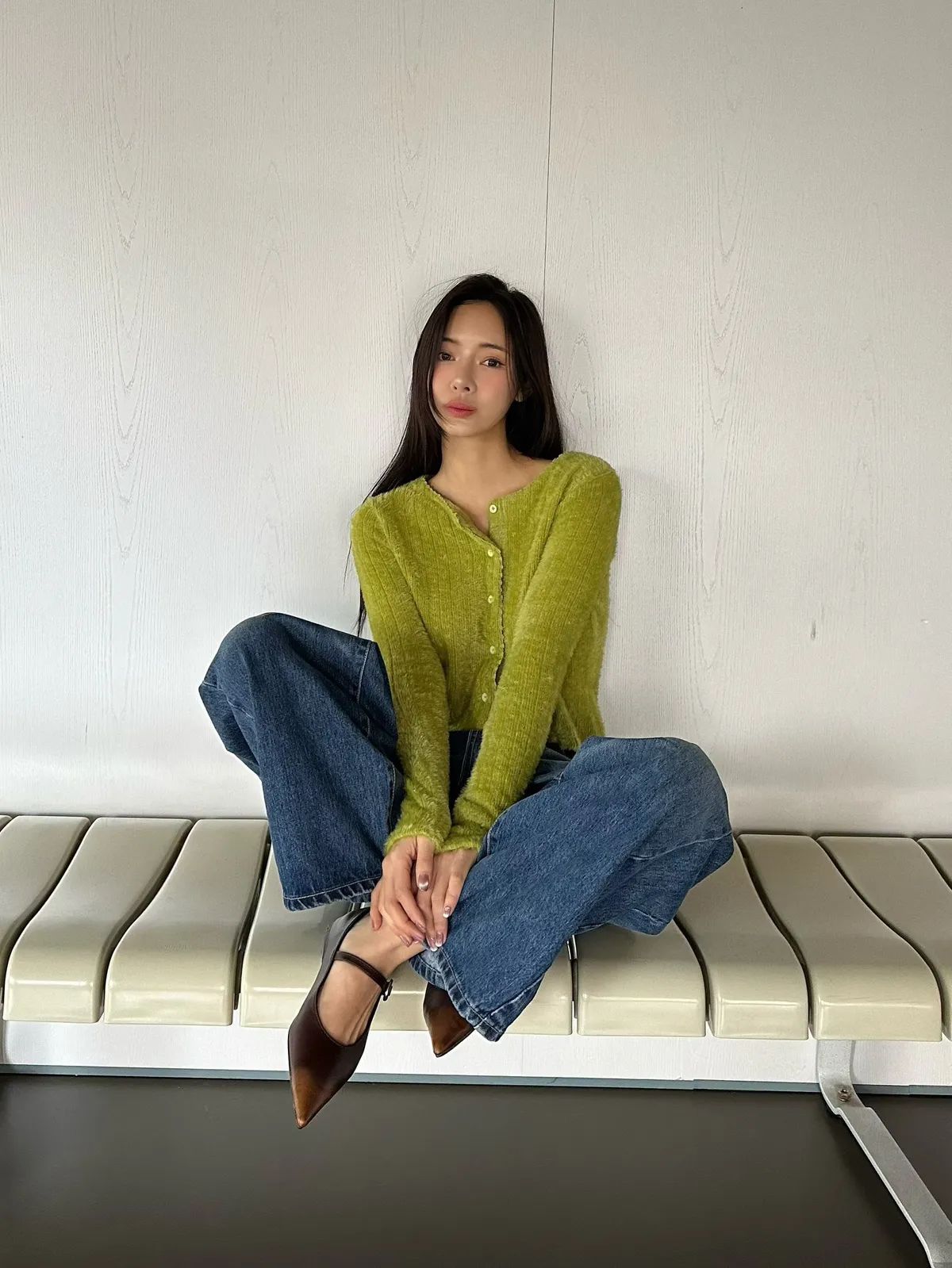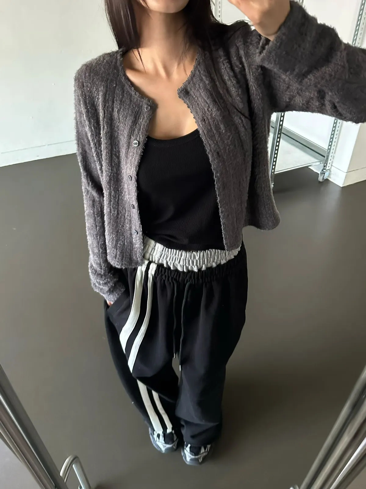 25LC01 毛毛滾邊蕾絲針織排扣罩衫上衣 3色