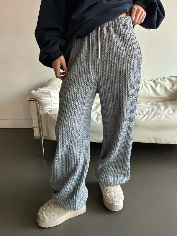 25LC04 細麻花針織兩穿縮腳長褲 4色