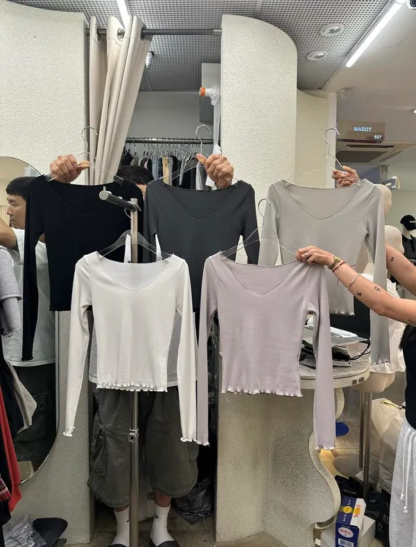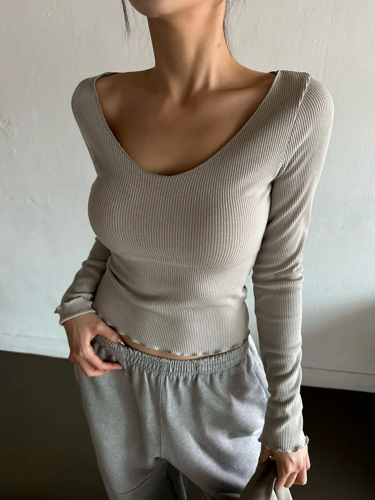 25LC09 U領羅紋合身木耳邊薄長T 5色