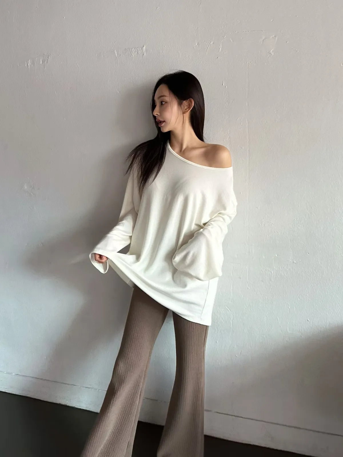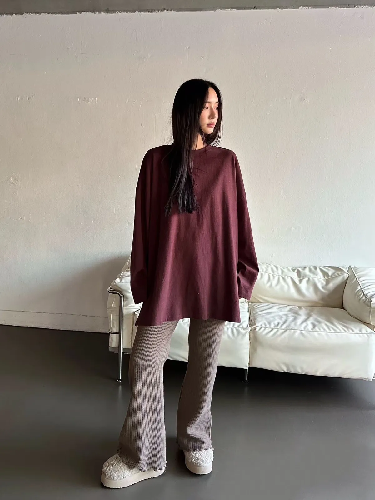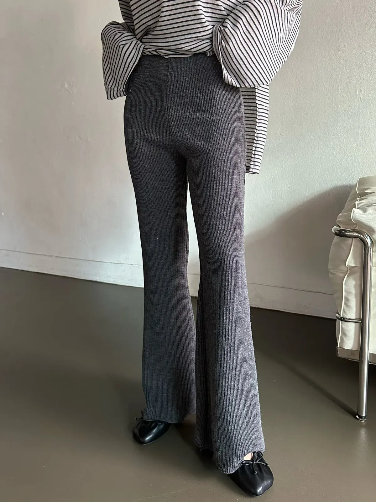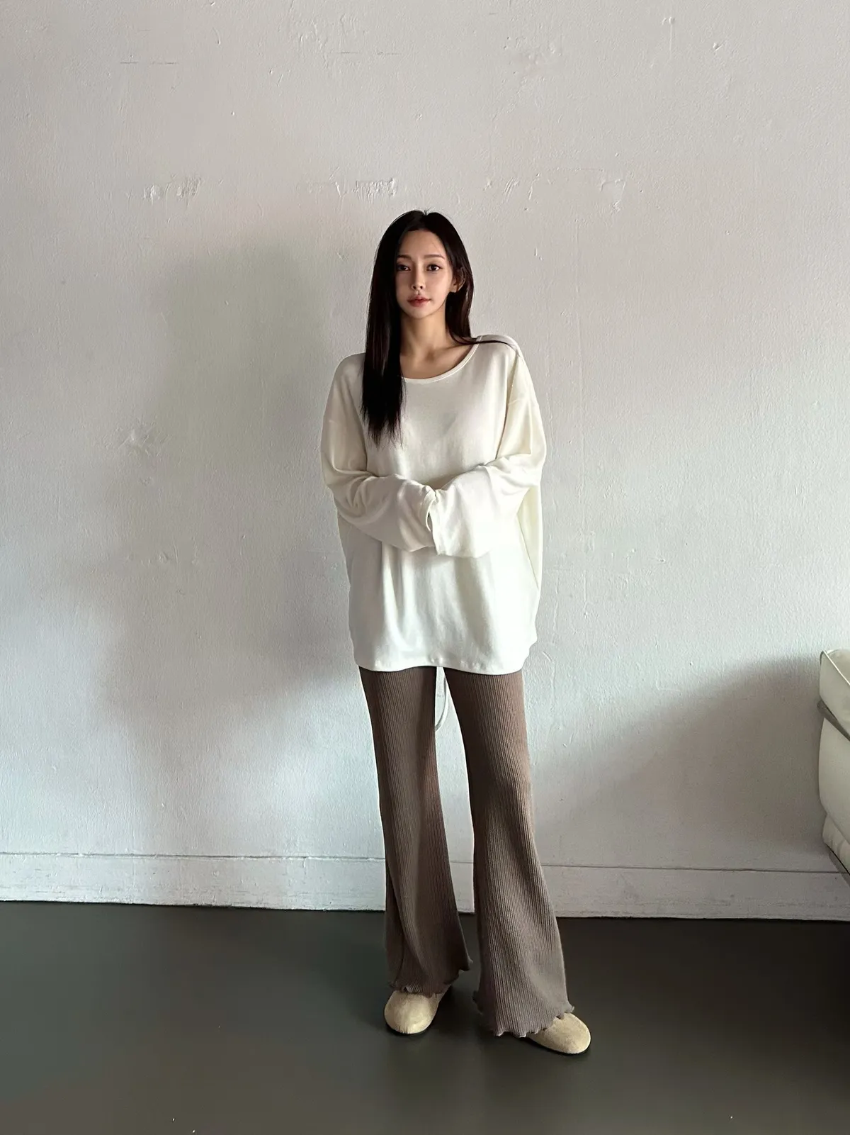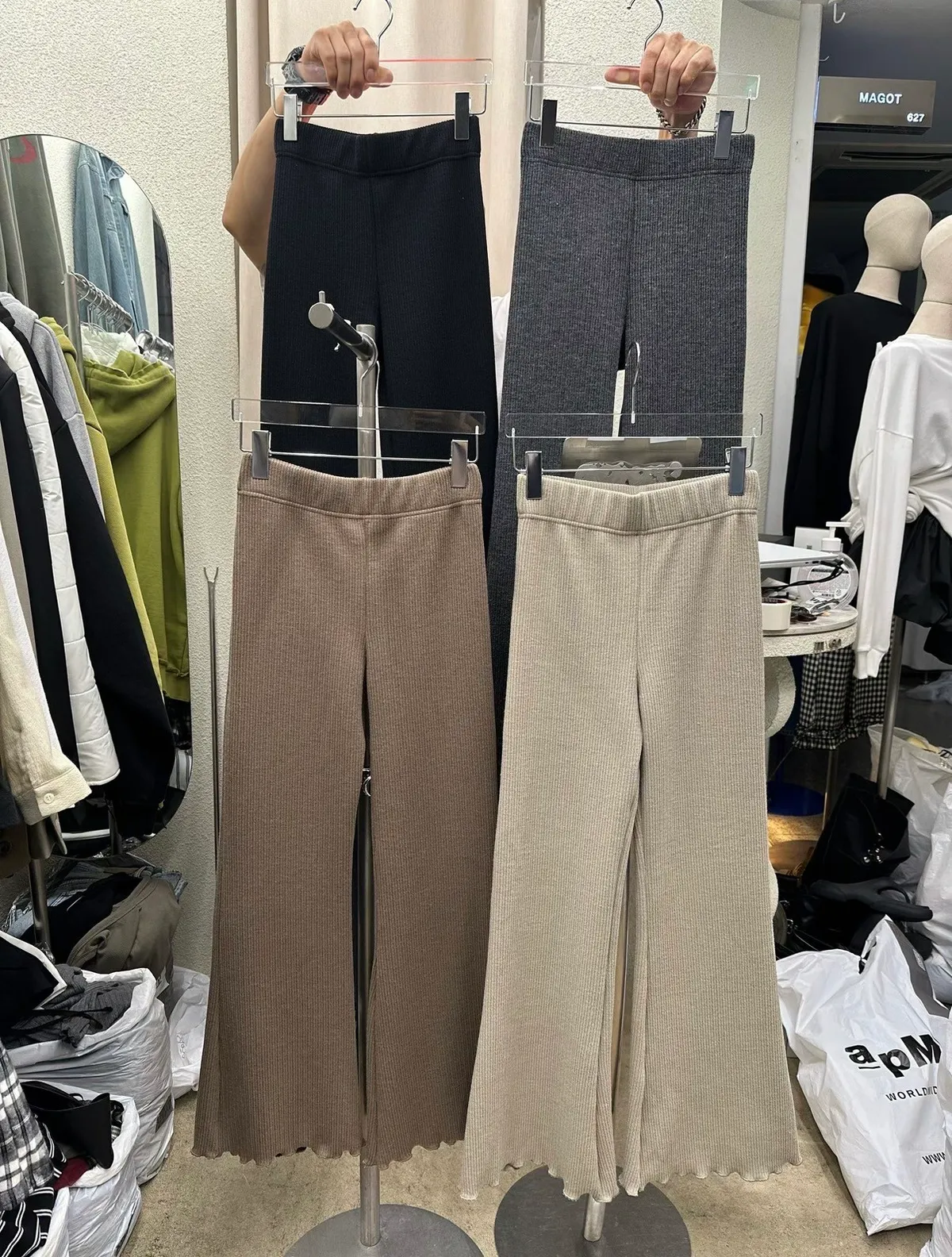 25LC12 木耳邊絨料坑條直腿長褲 4色