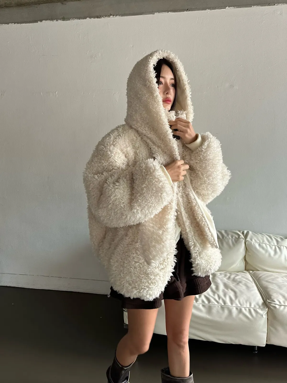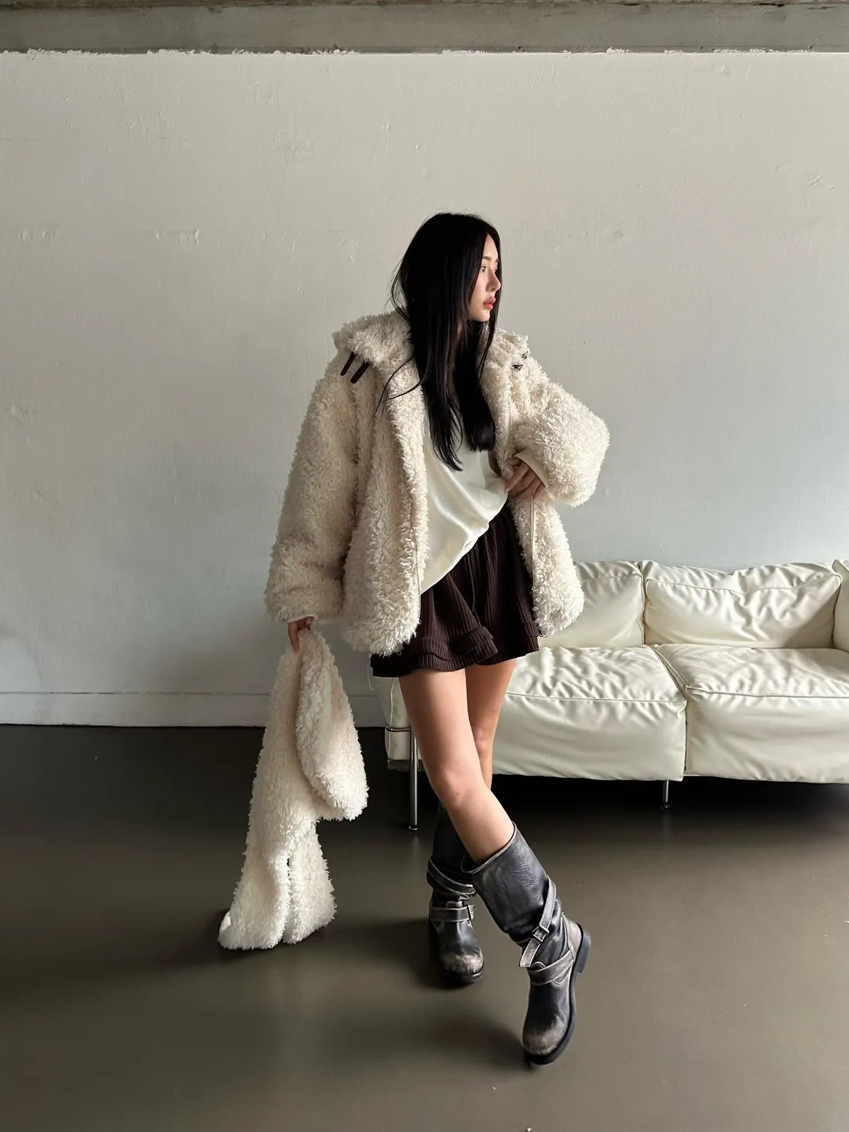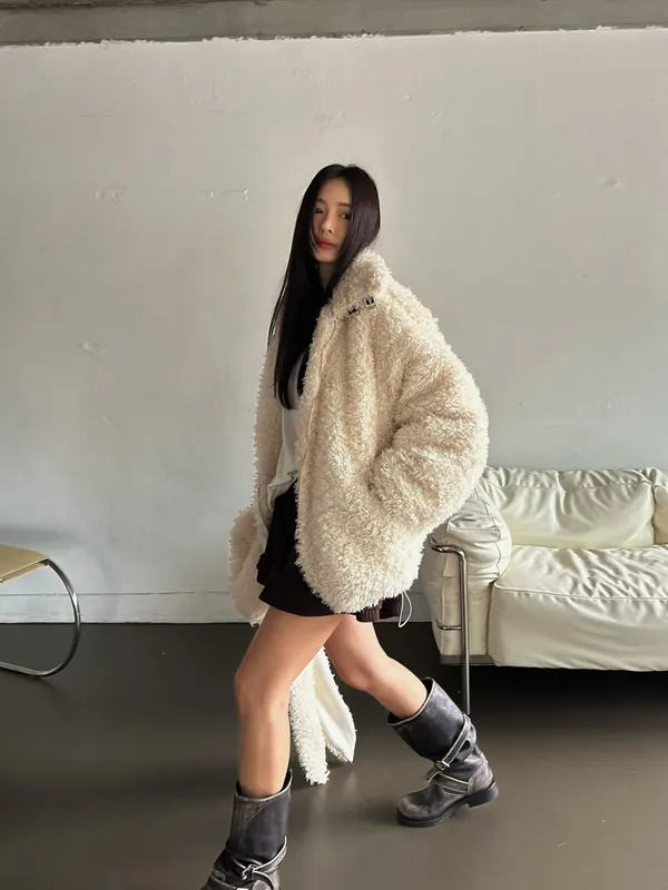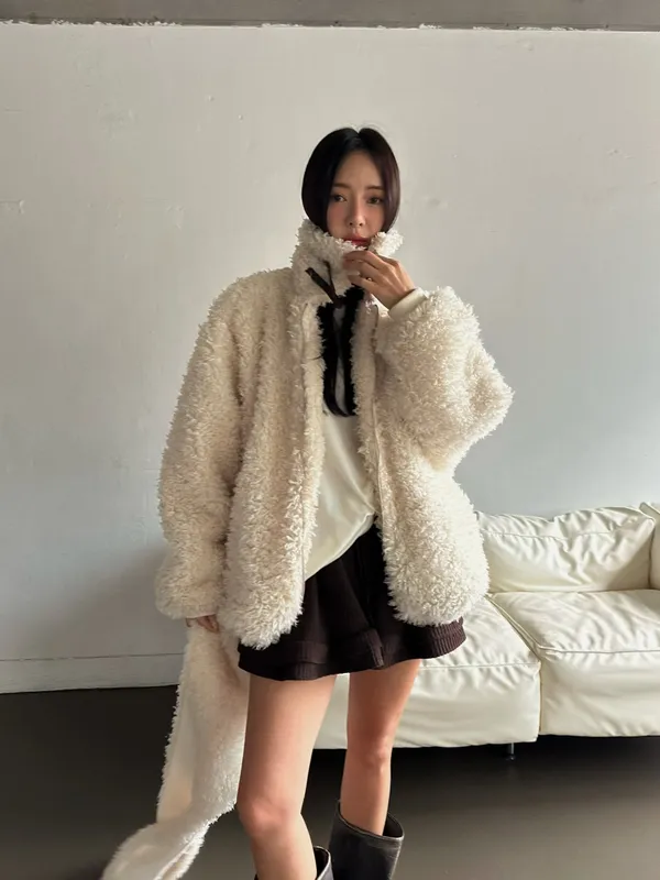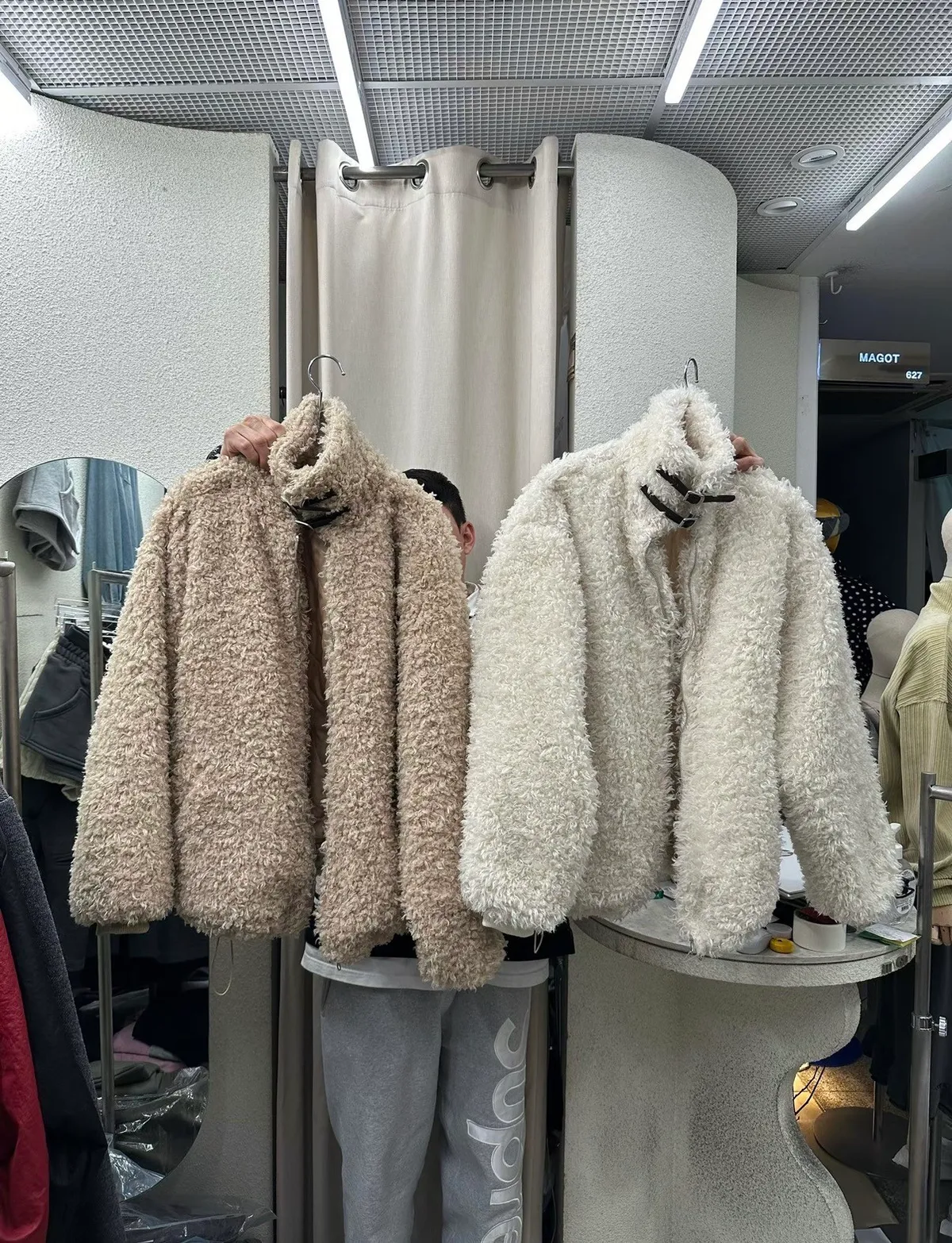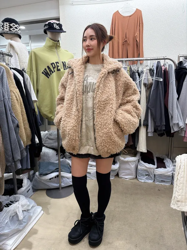 25LC13 皮帶扣立領Q毛毛夾克下縮繩外套 2色