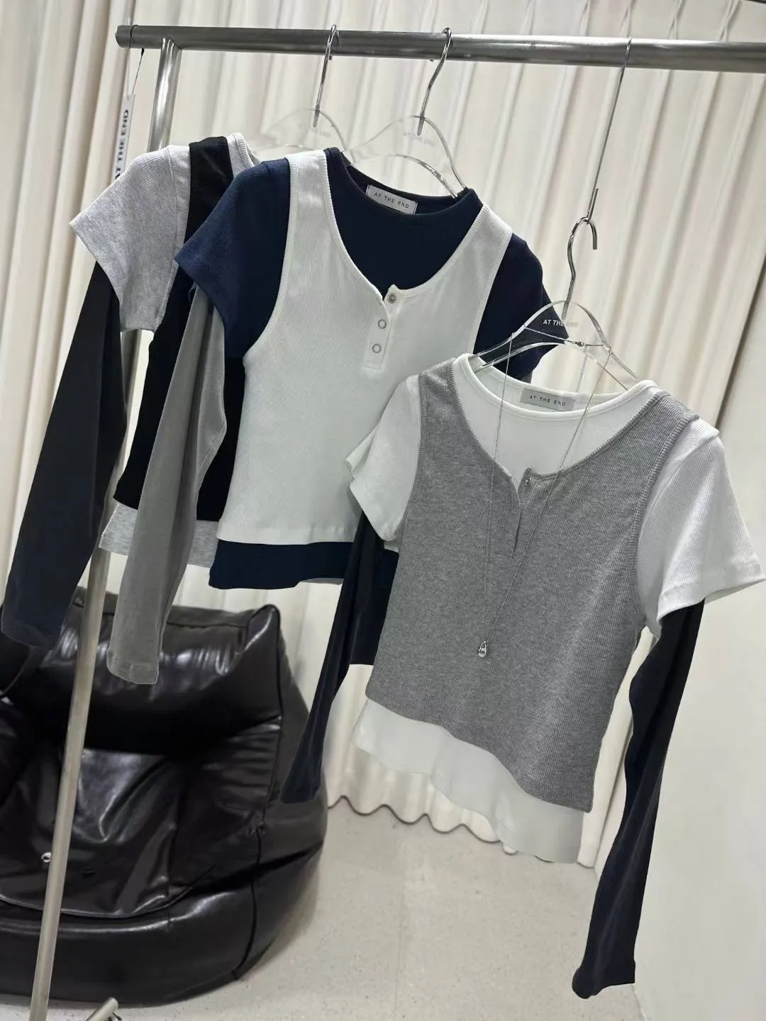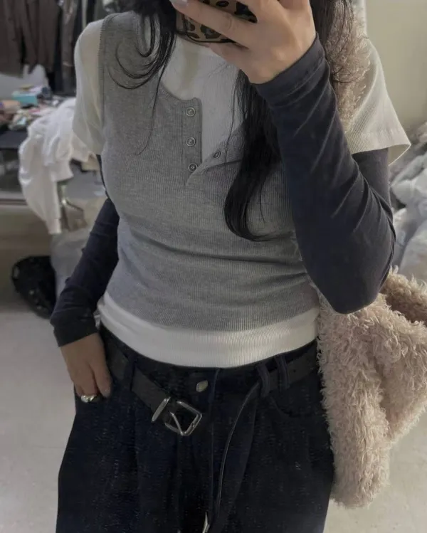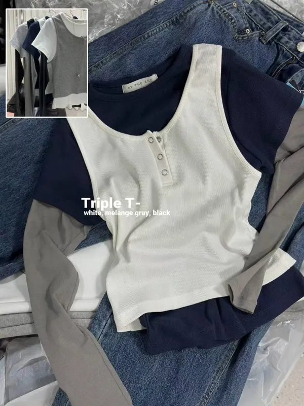 25LD01 假三件層次撞色長T 3色