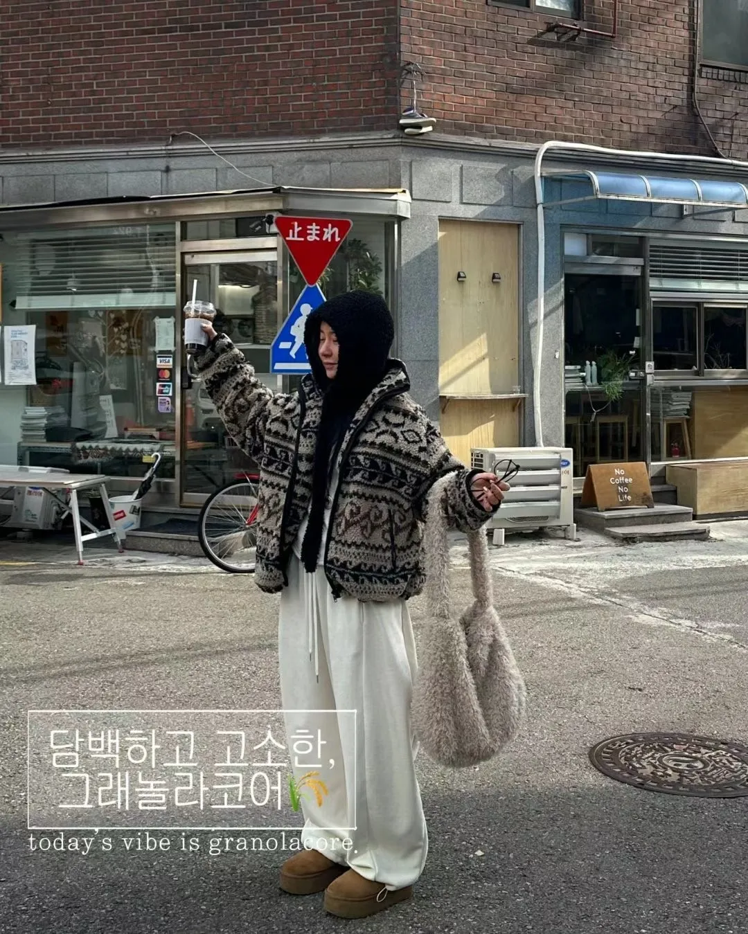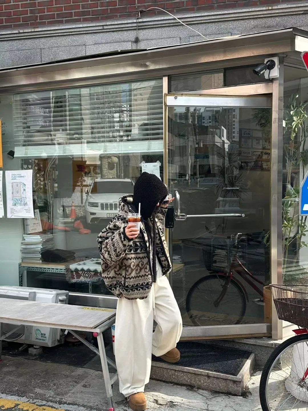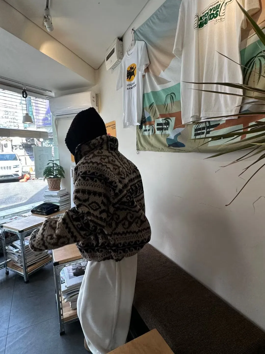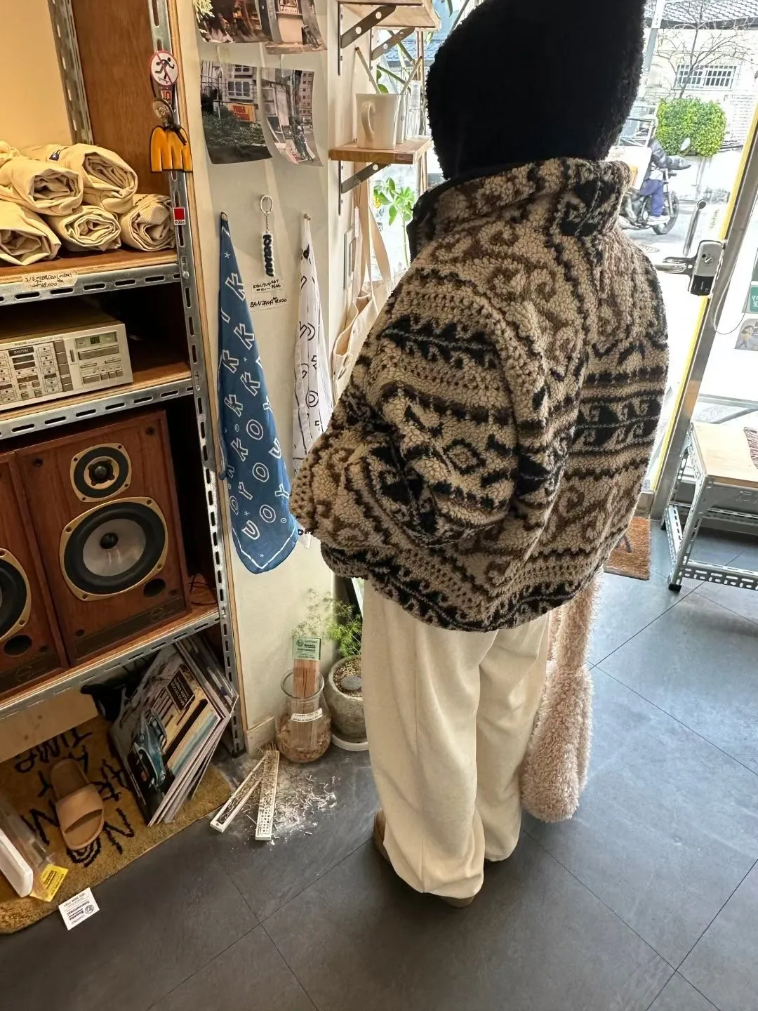 25LD04 民族圖騰搖粒絨立領下縮腰繩外套 2色