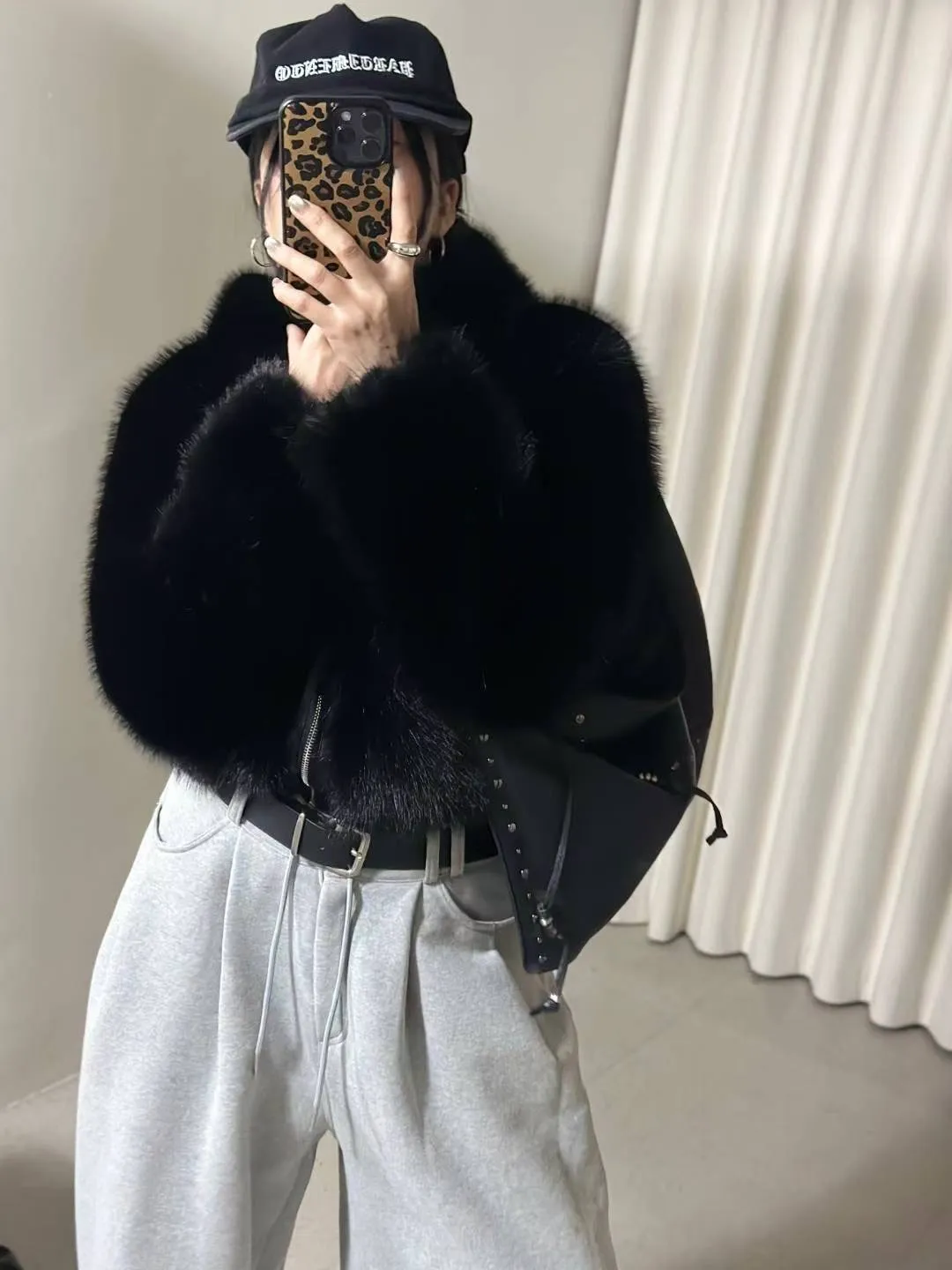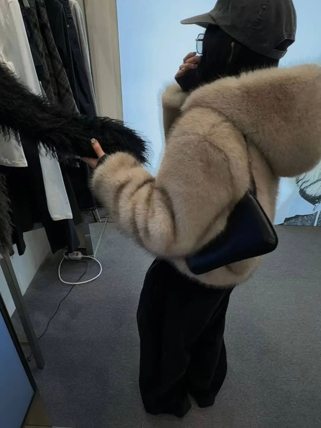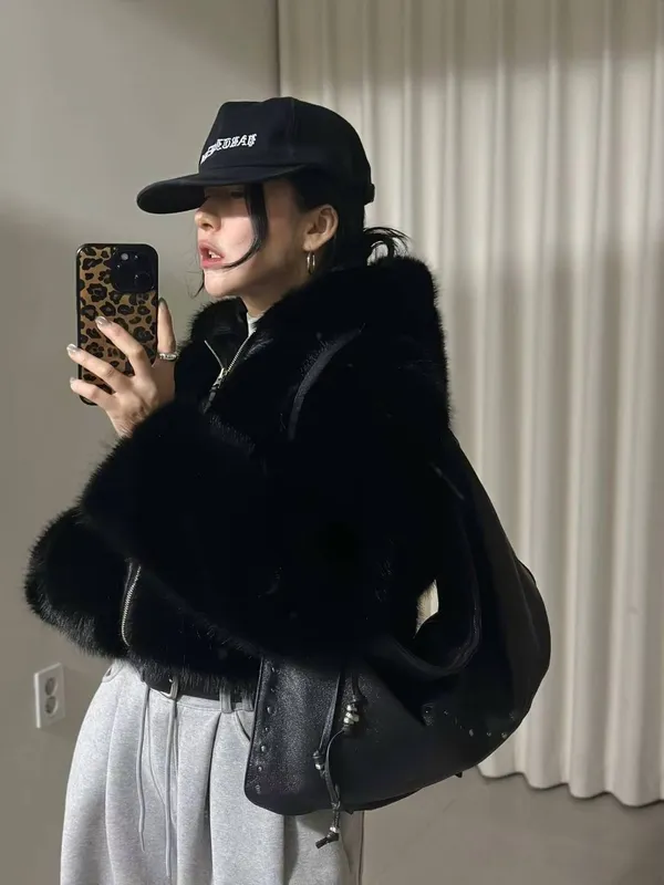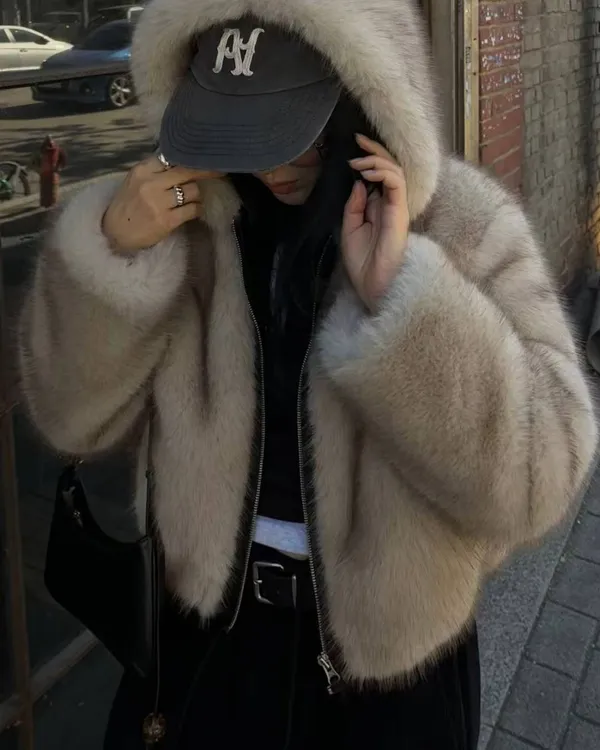 25LD12 狐狸環保皮草毛毛連帽夾棉外套 2色