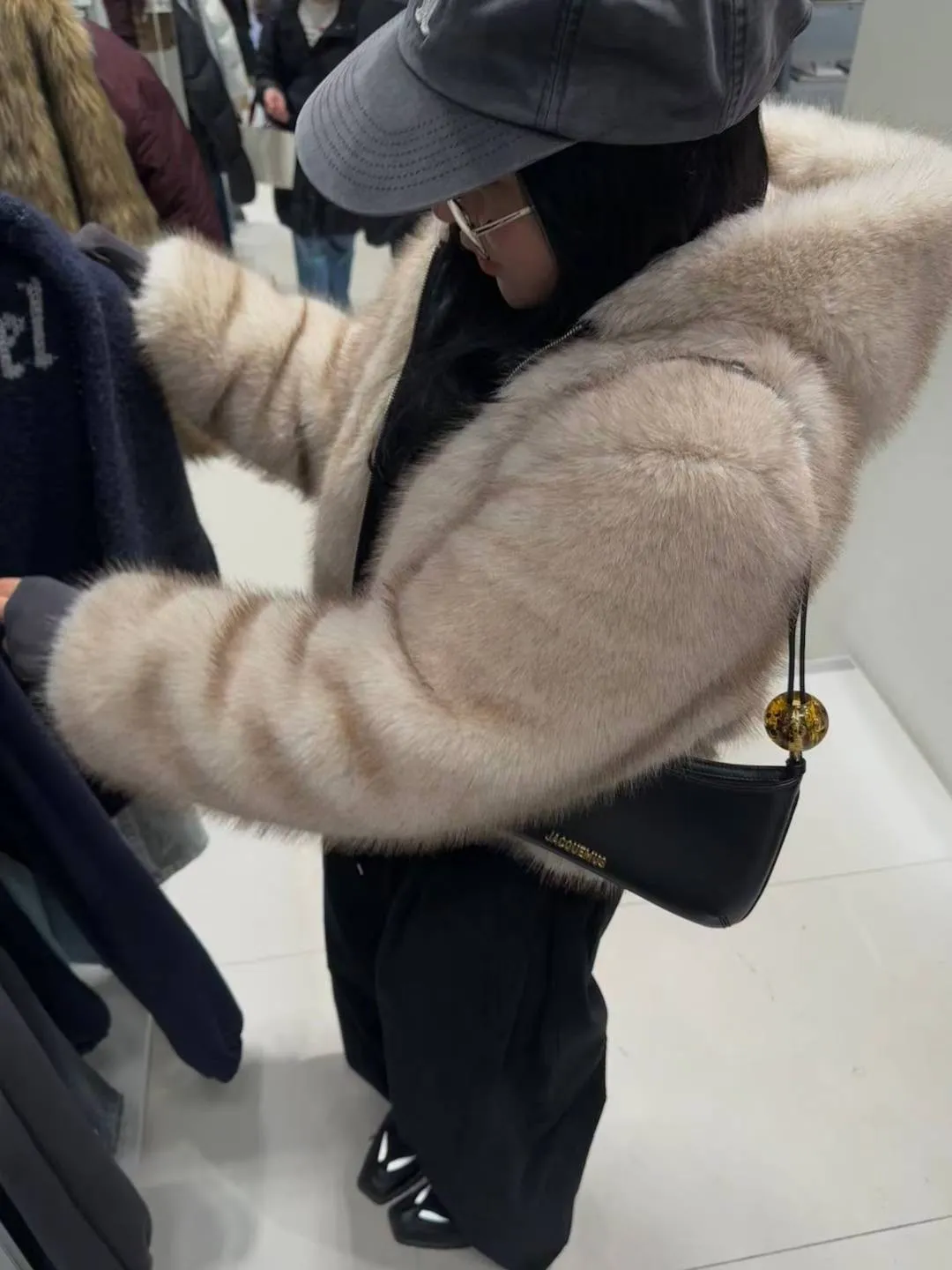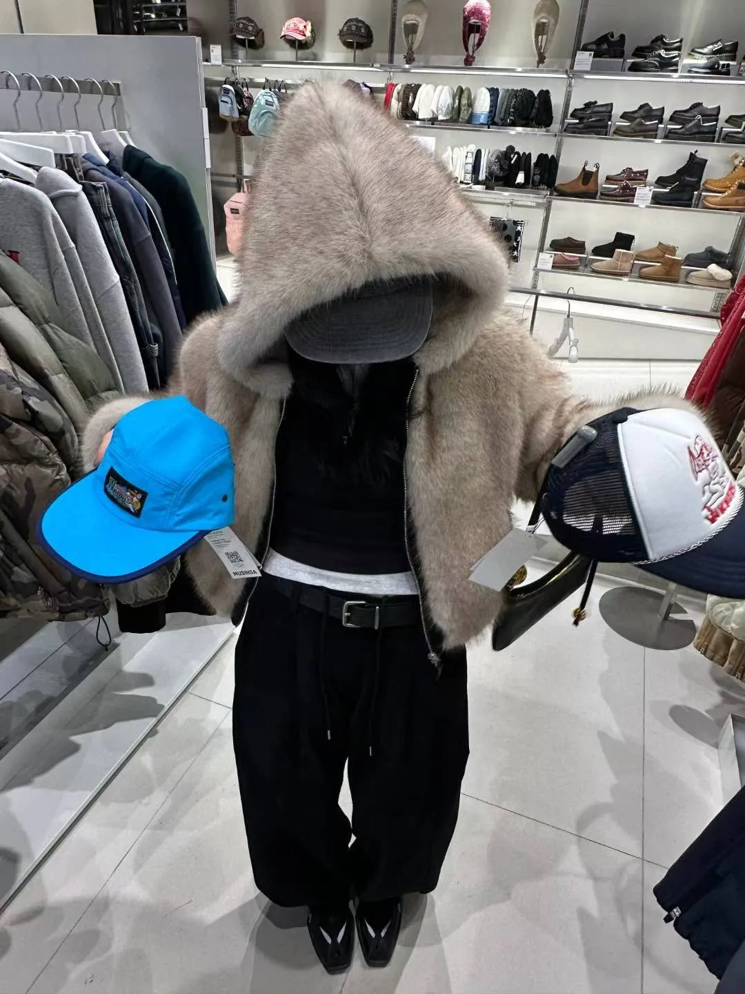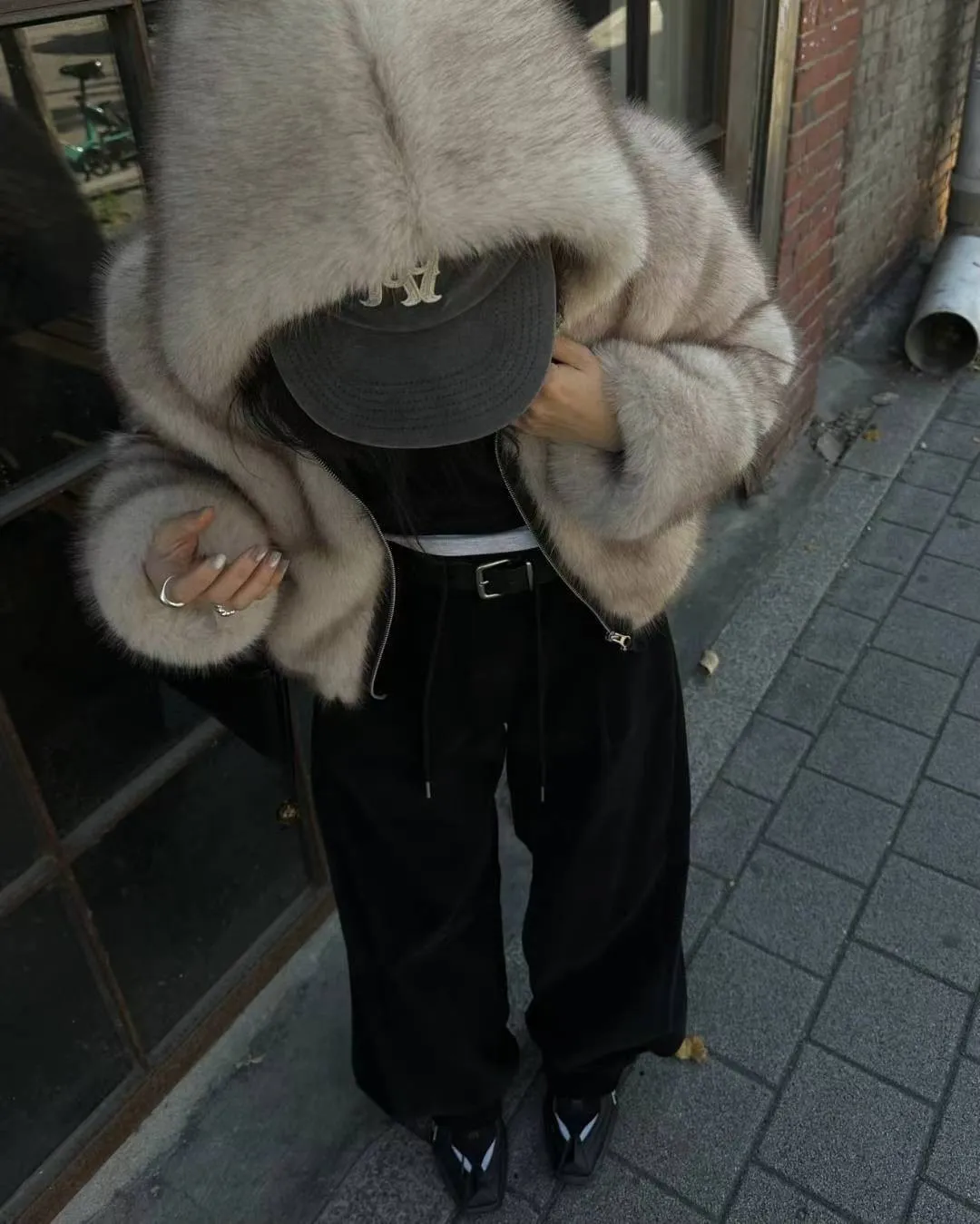 25LD12 狐狸環保皮草毛毛連帽夾棉外套 2色