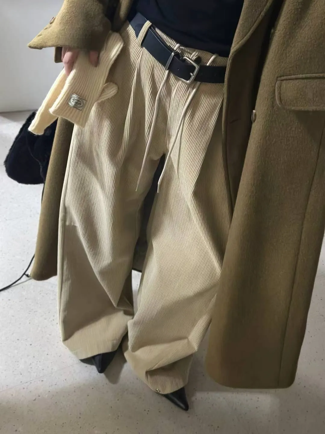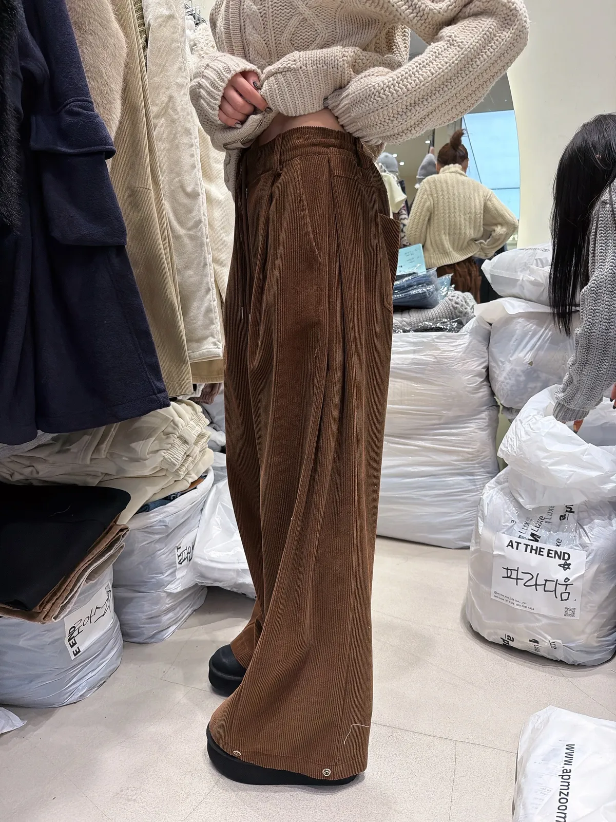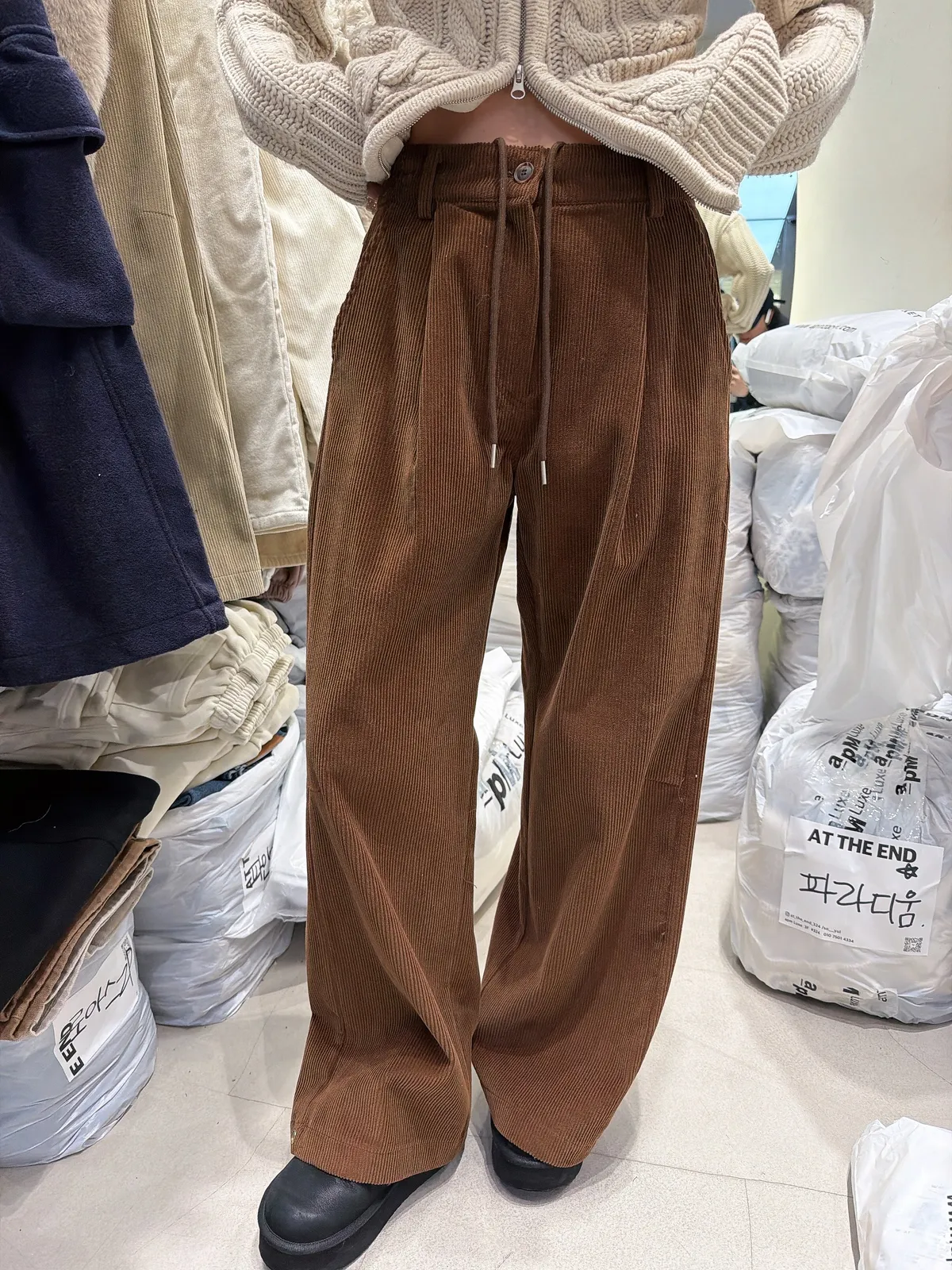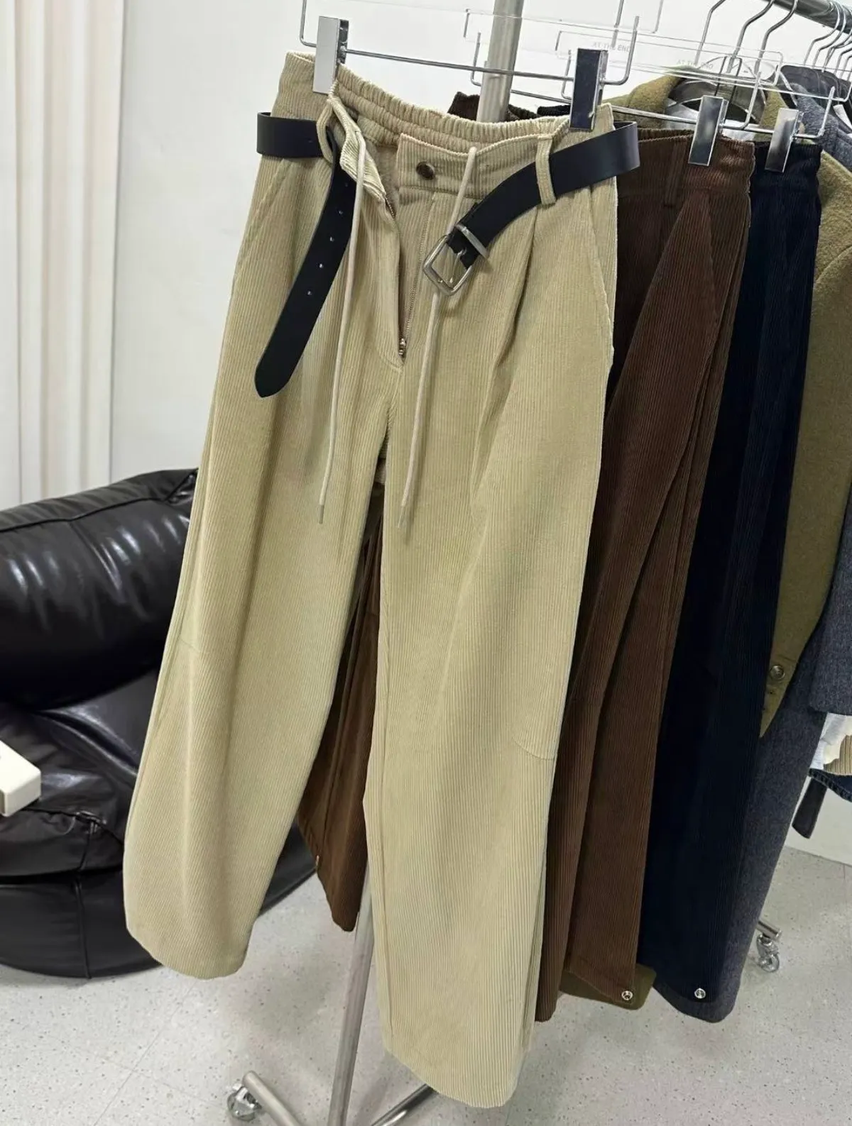 25LD20 燈芯絨後鬆緊側倒V剪裁縮扣長褲 3色