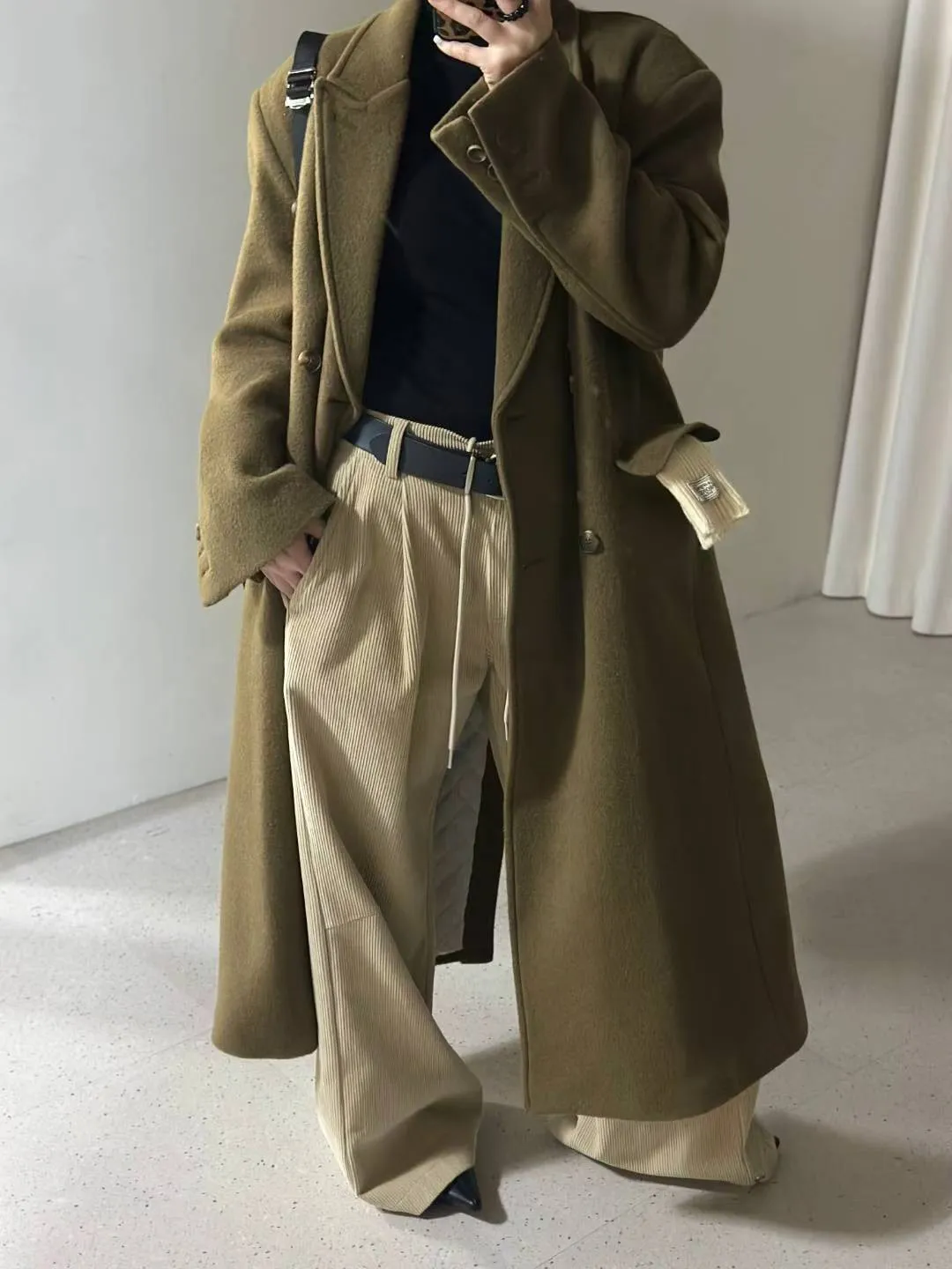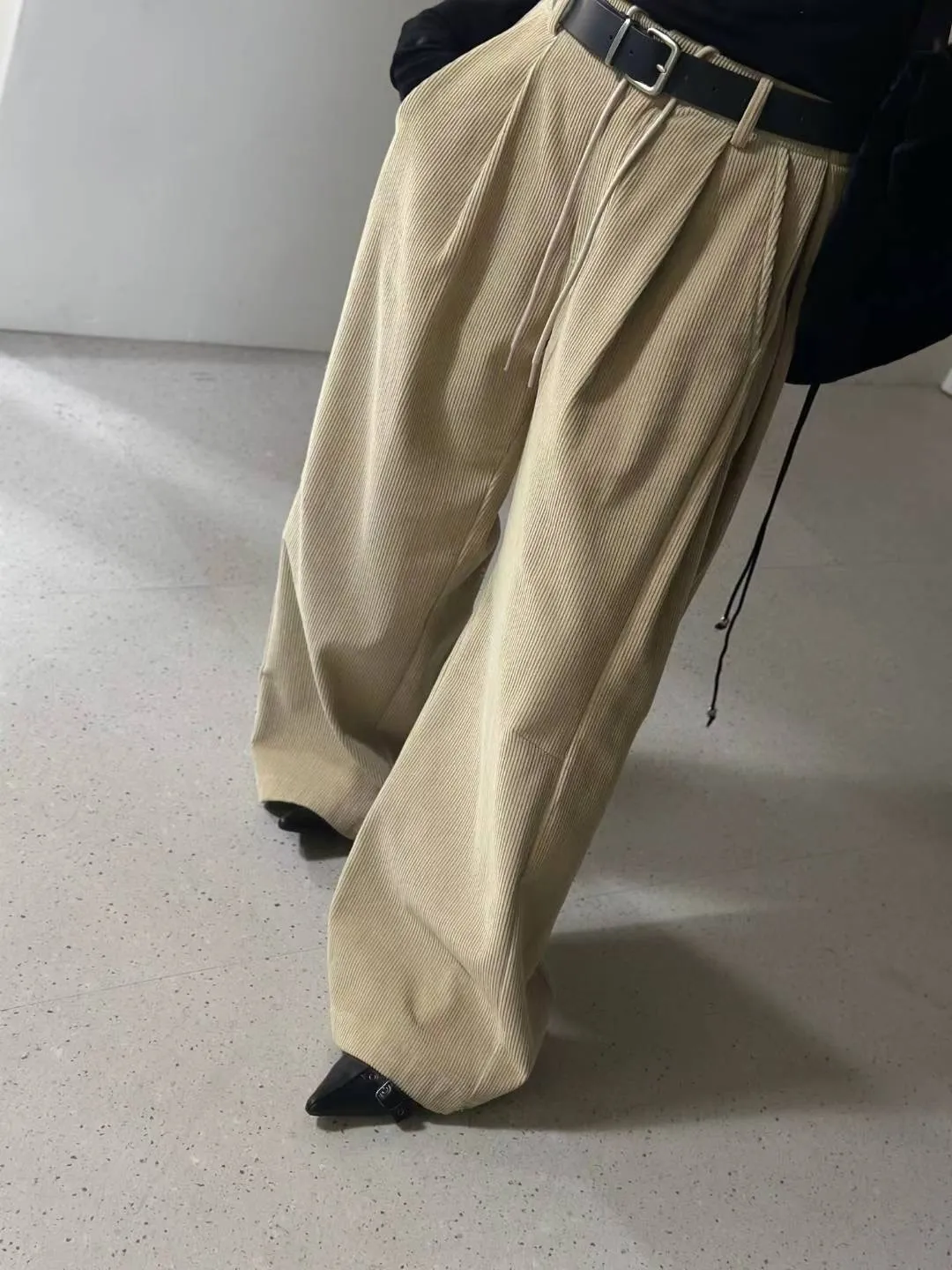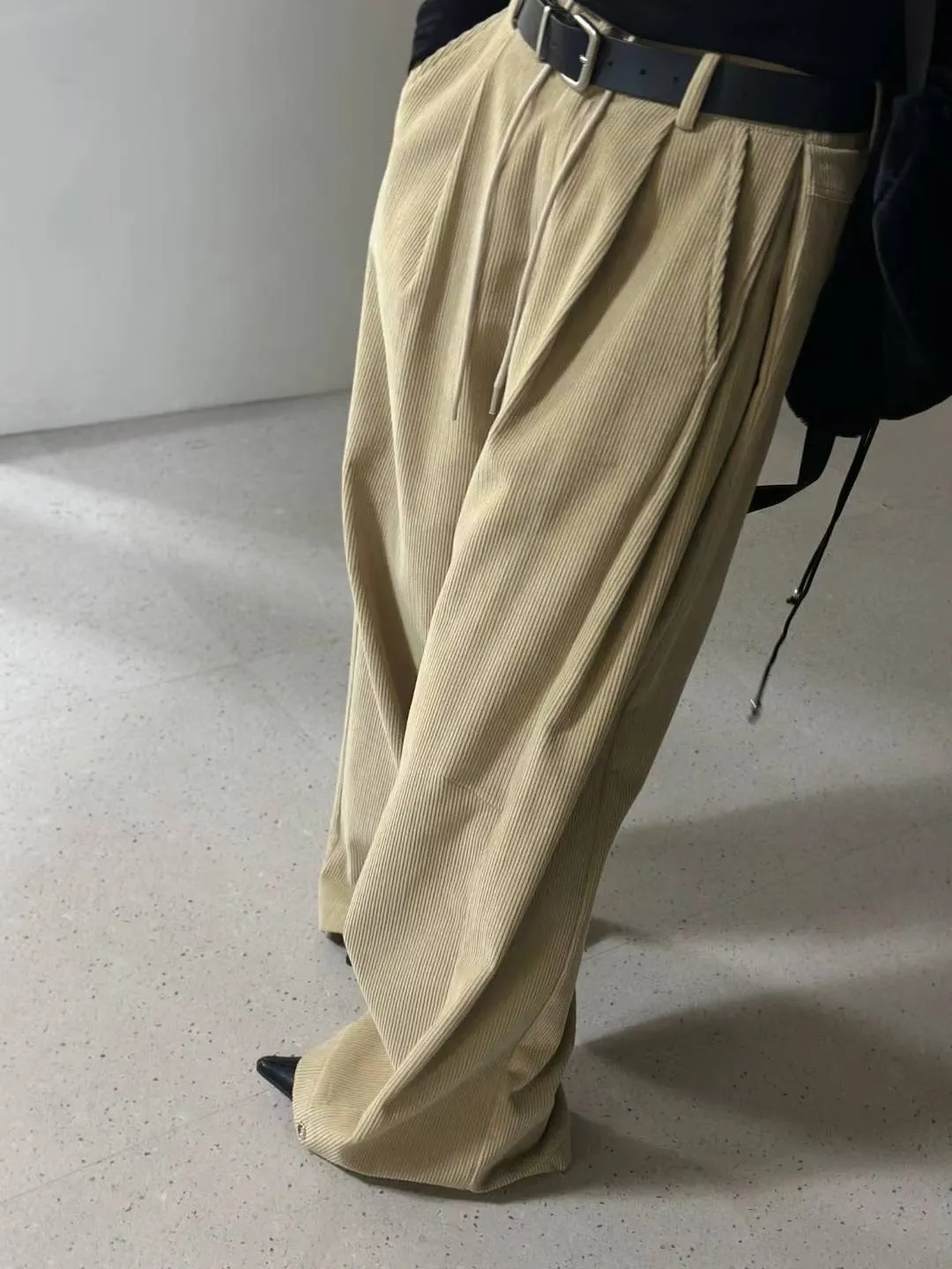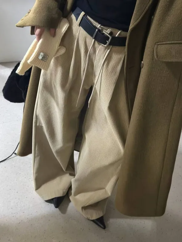 25LD20 燈芯絨後鬆緊側倒V剪裁縮扣長褲 3色