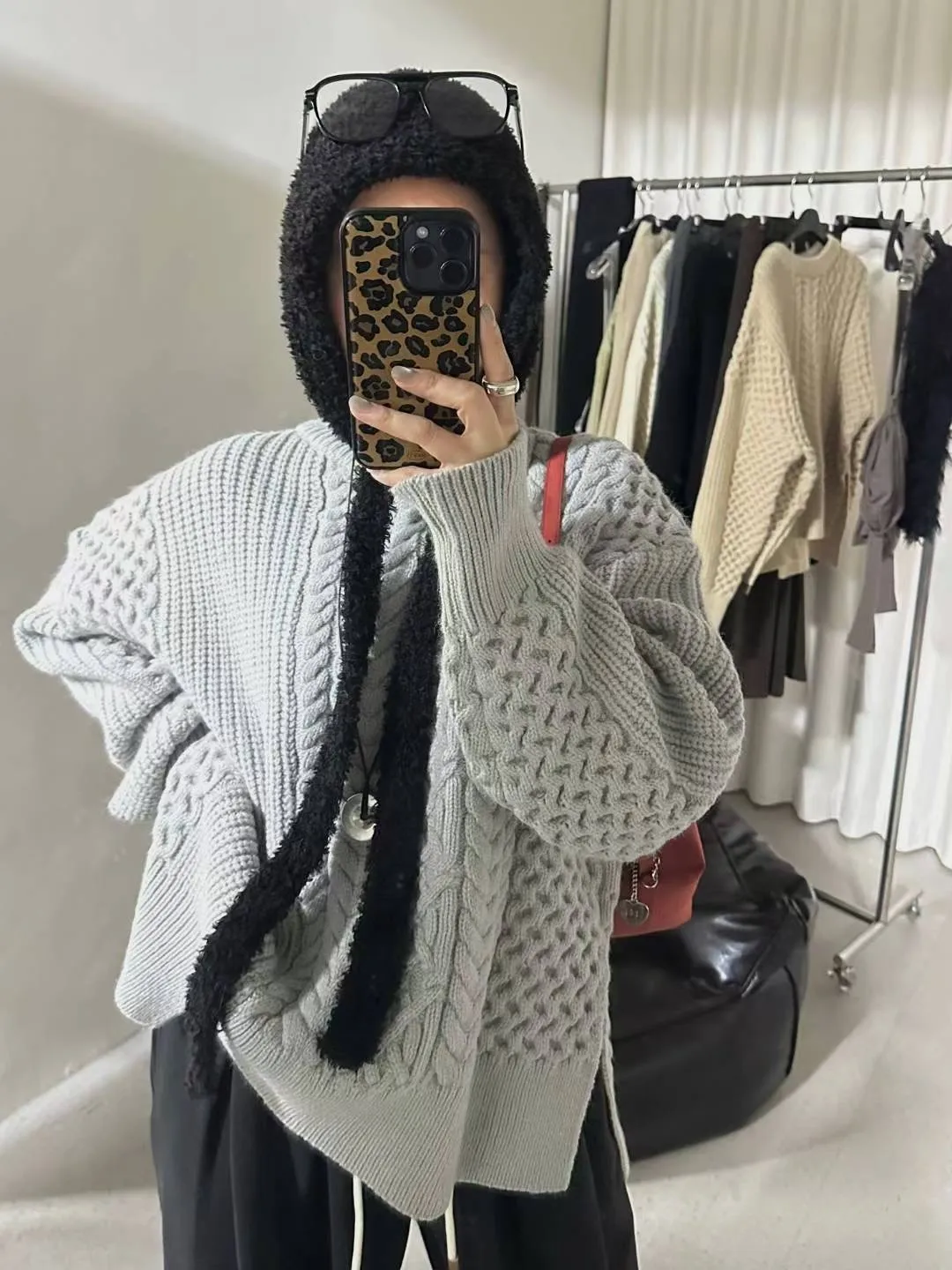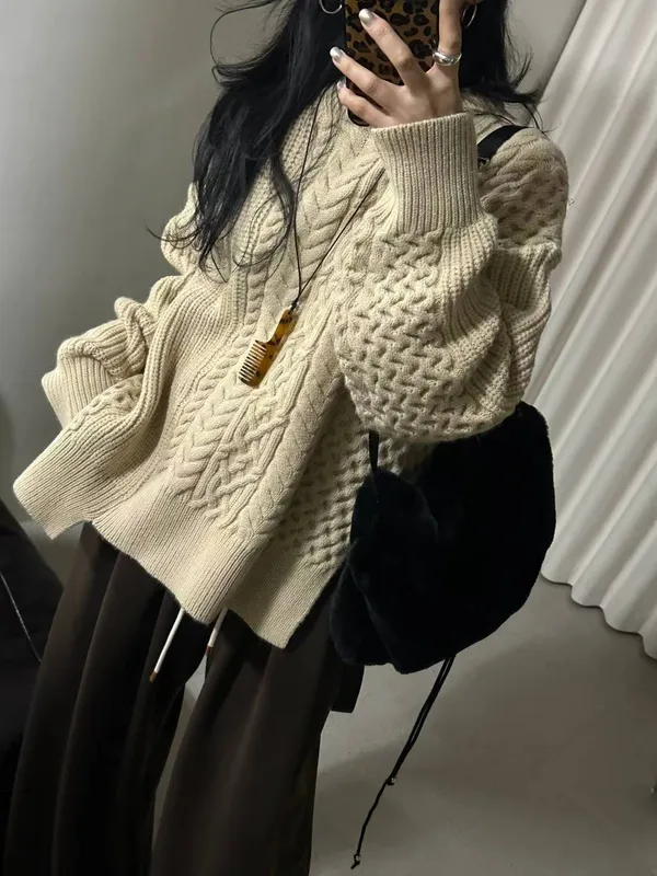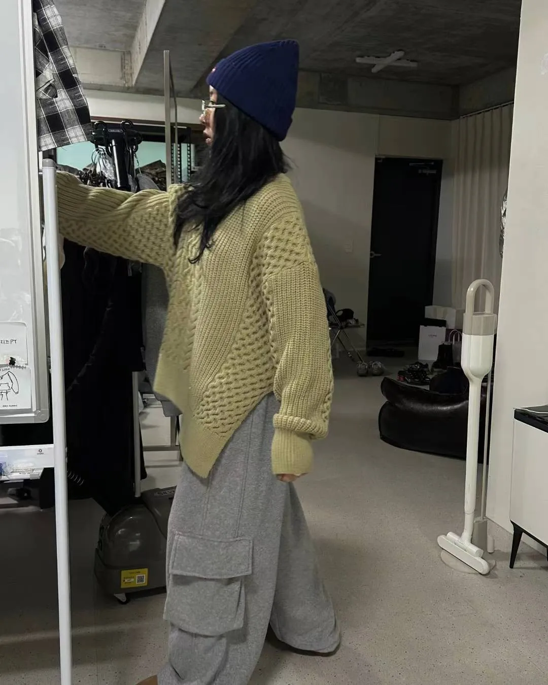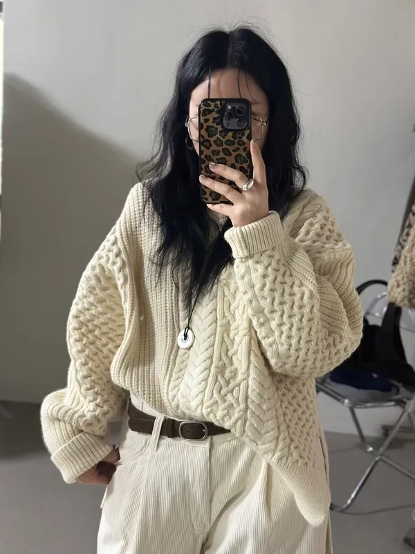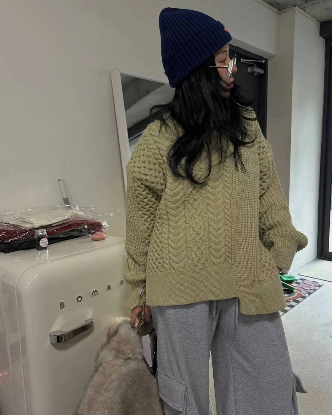 25LD21 羊毛30%麻花不對稱毛衣 5色