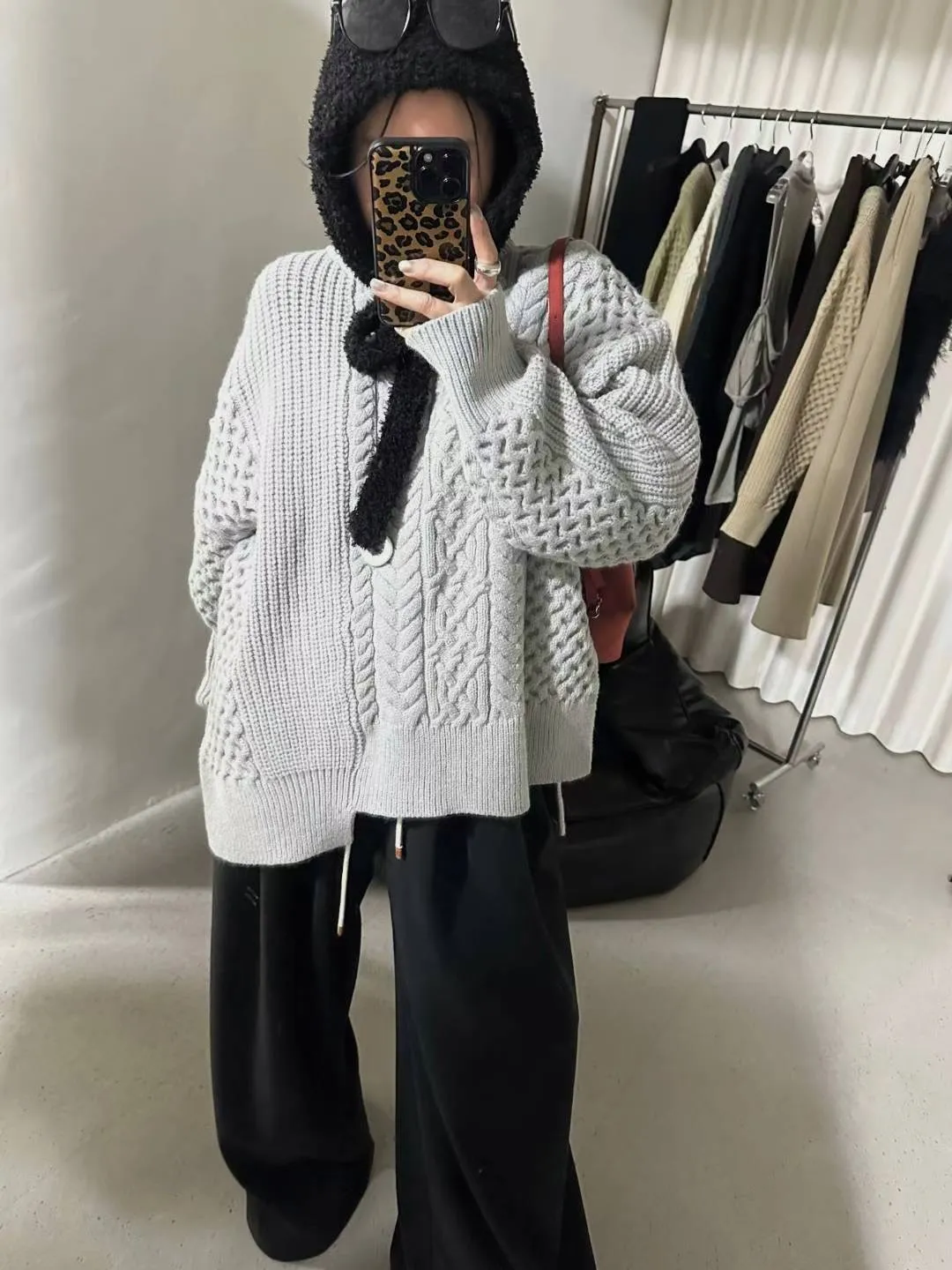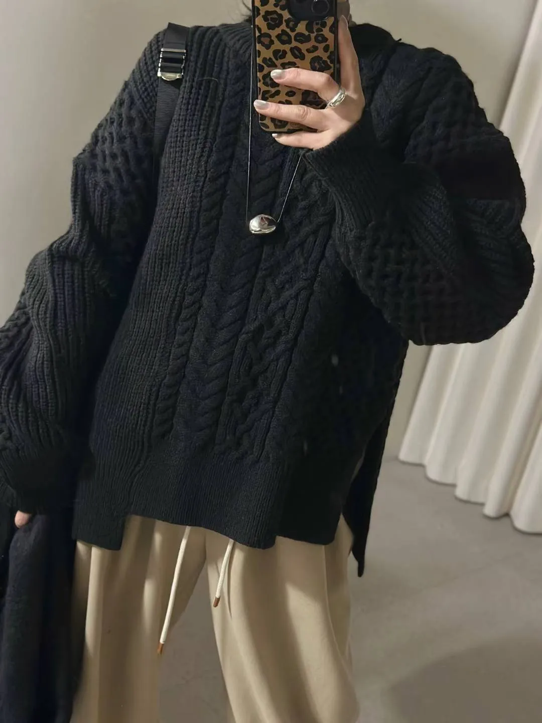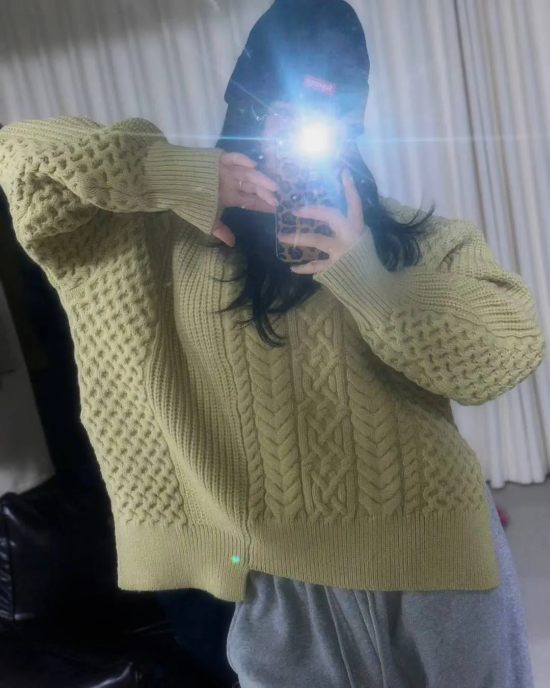 25LD21 羊毛30%麻花不對稱毛衣 5色