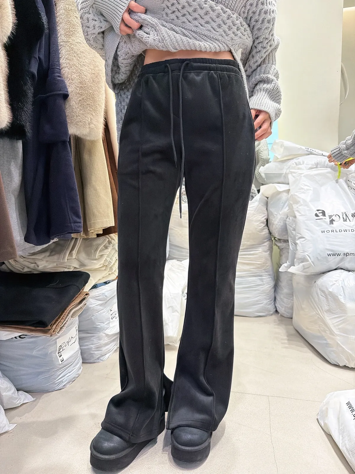 25LD24 激推)天鵝絨加絨長腿喇叭褲 2色