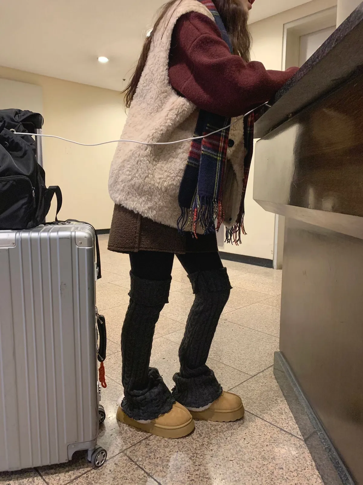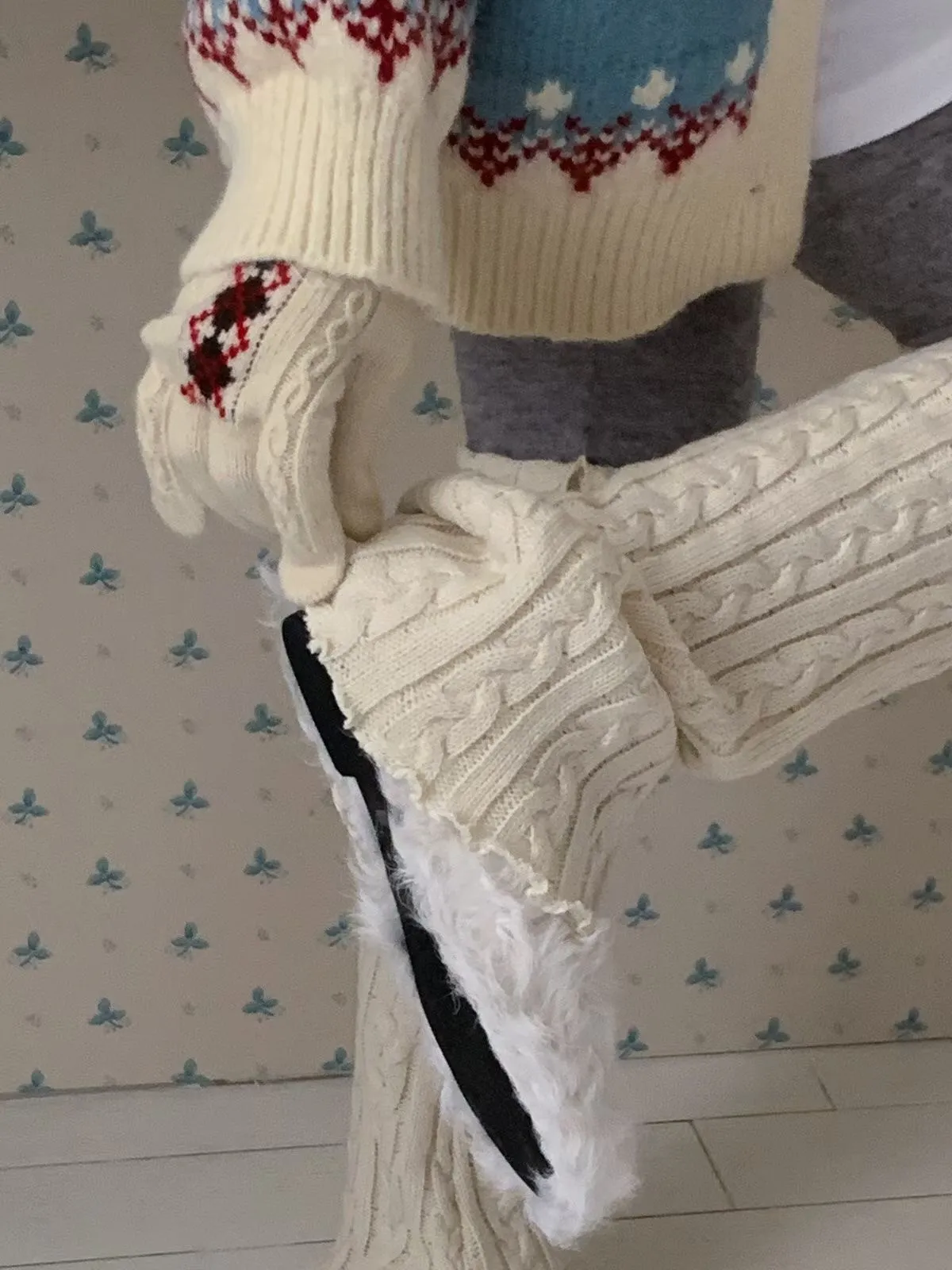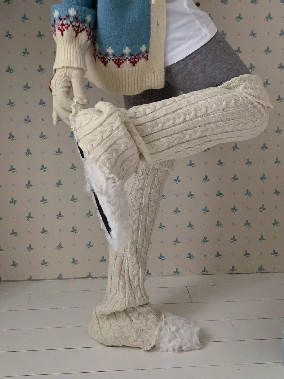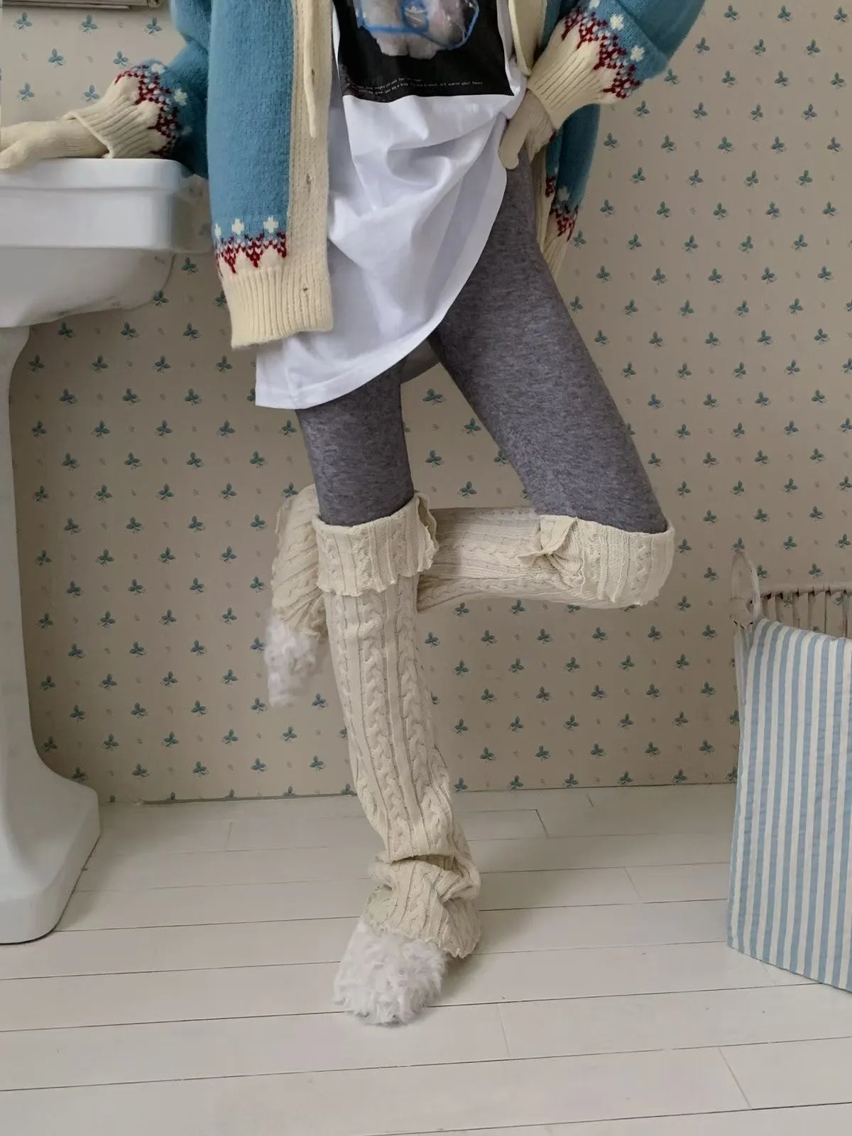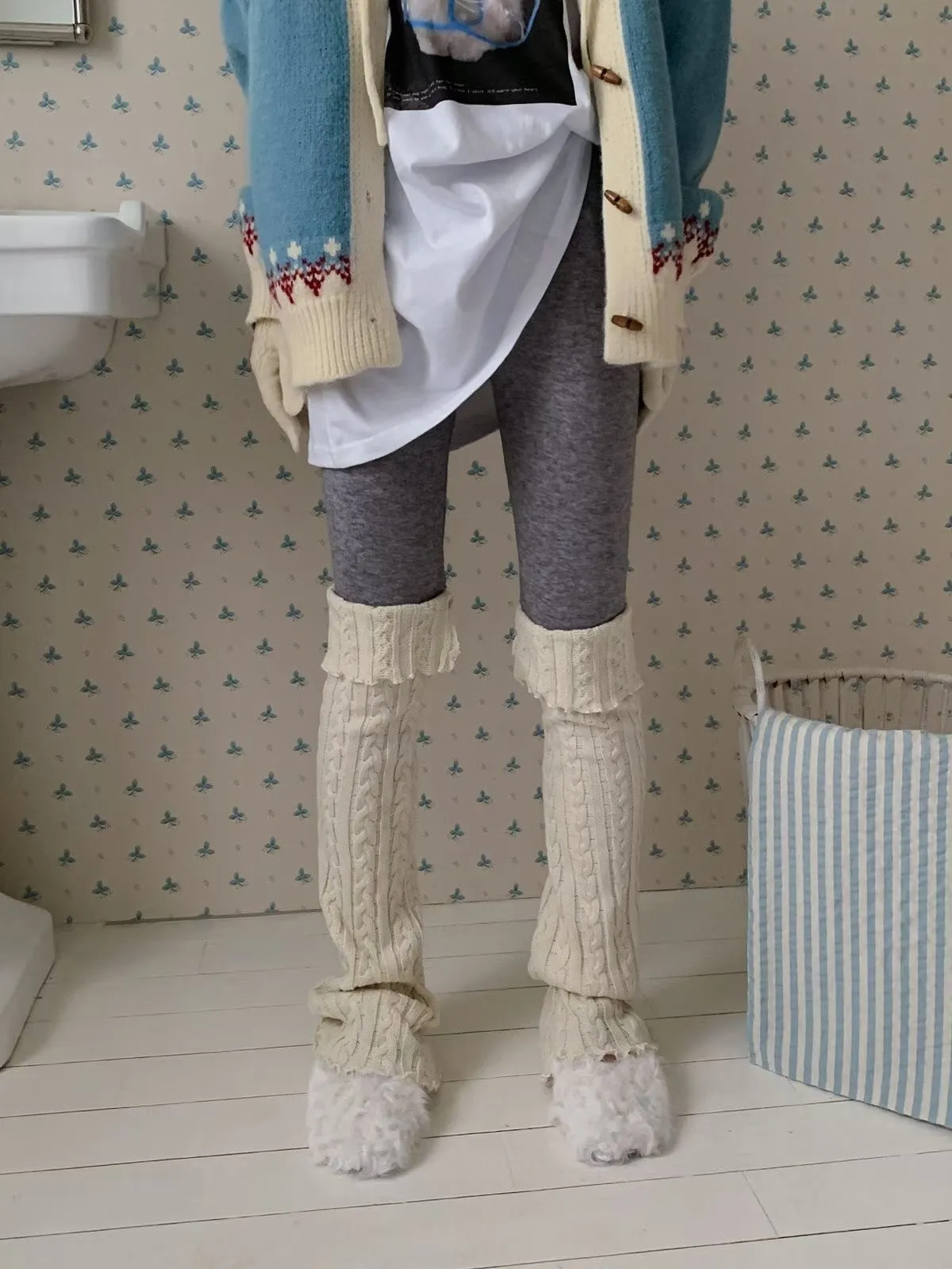 25LE07 麻花襪套拼接棉質內搭褲 2色