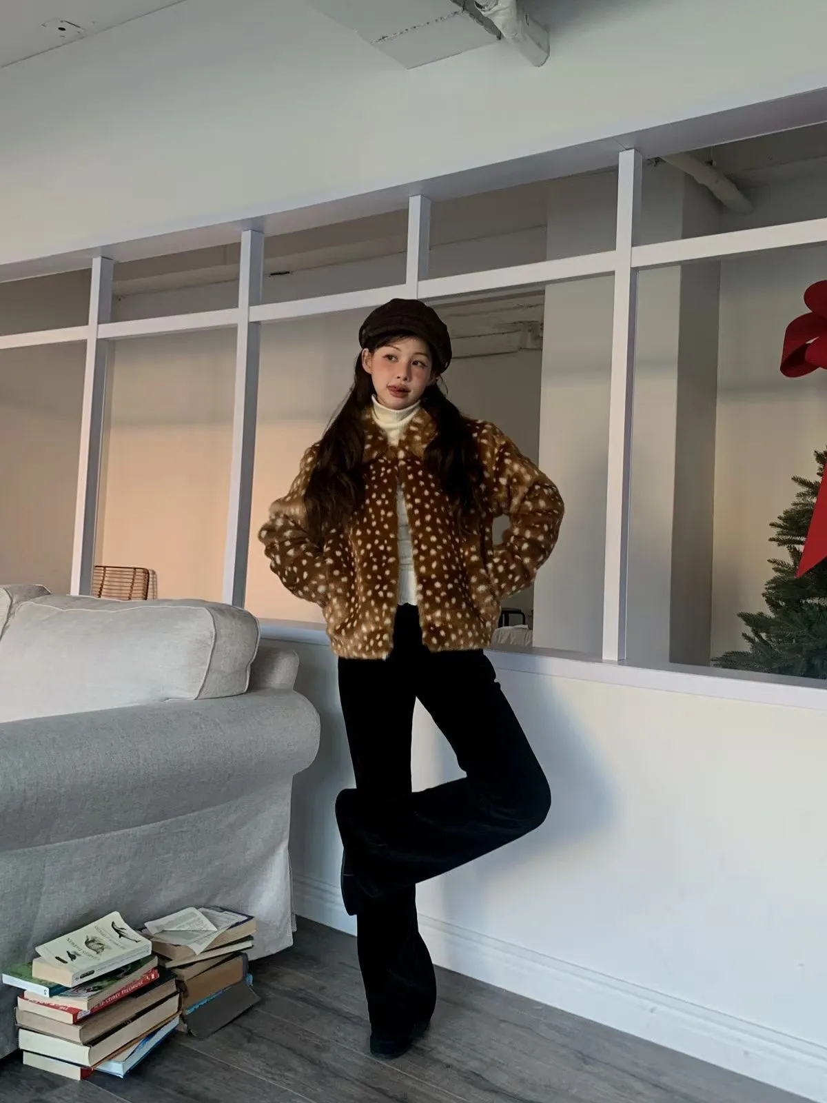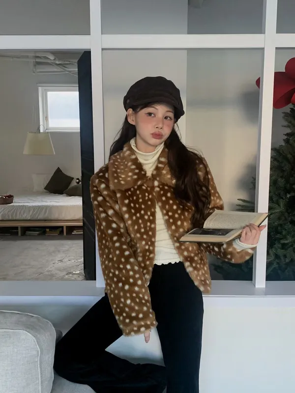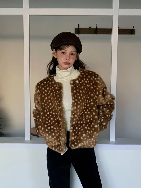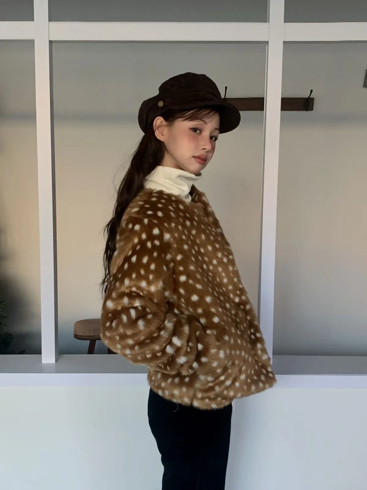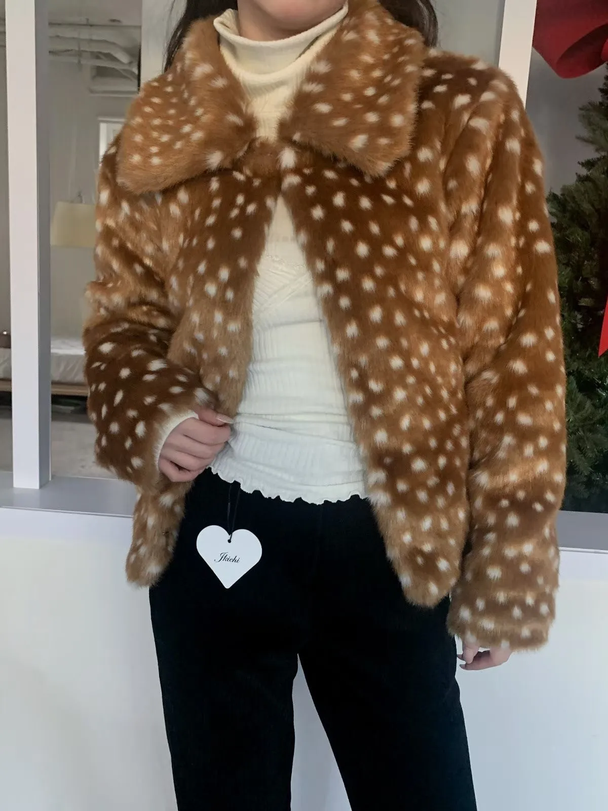 25LE13 小鹿斑比毛毛皮草外套(領可拆)