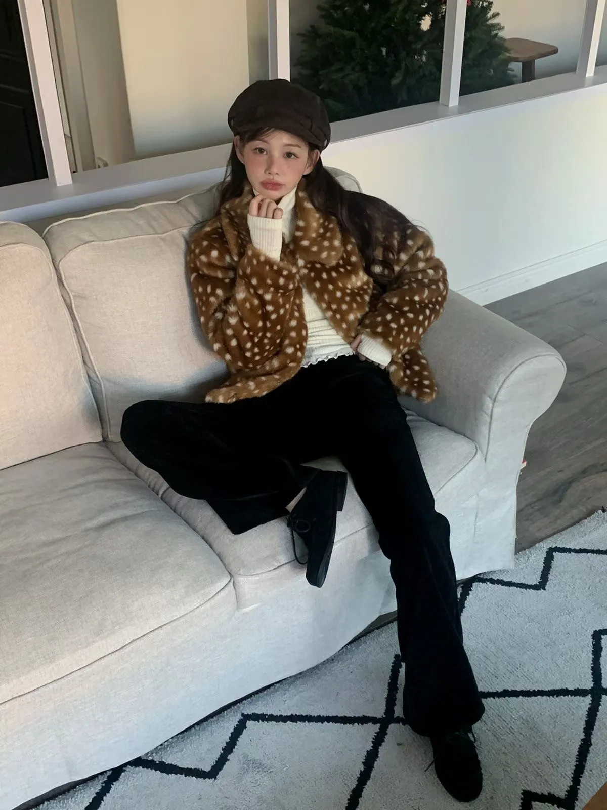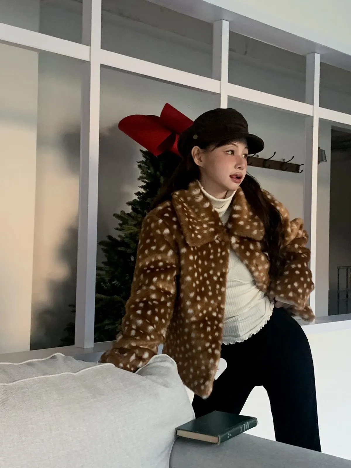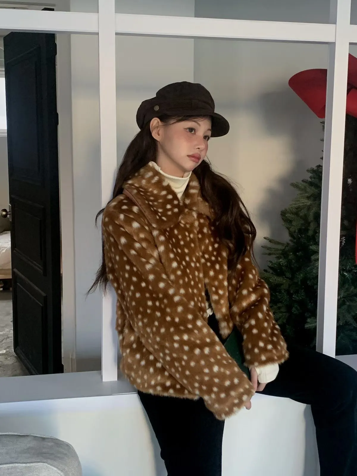 25LE13 小鹿斑比毛毛皮草外套(領可拆)