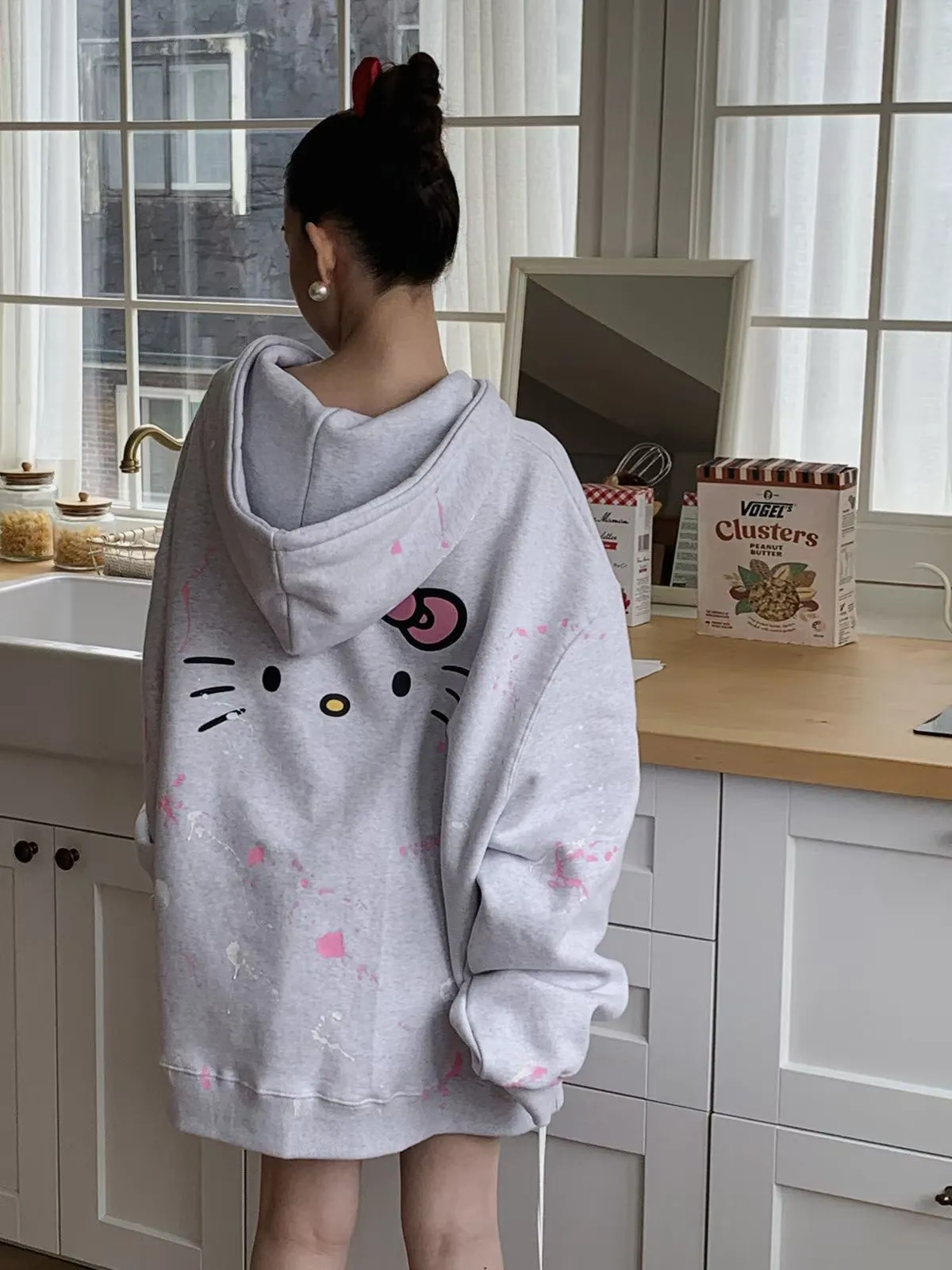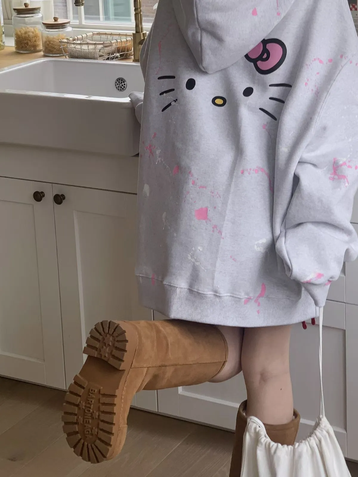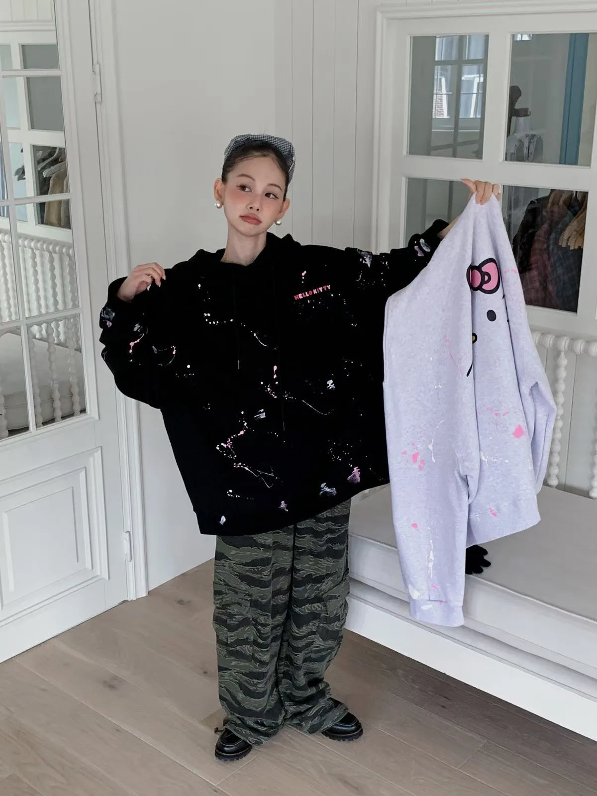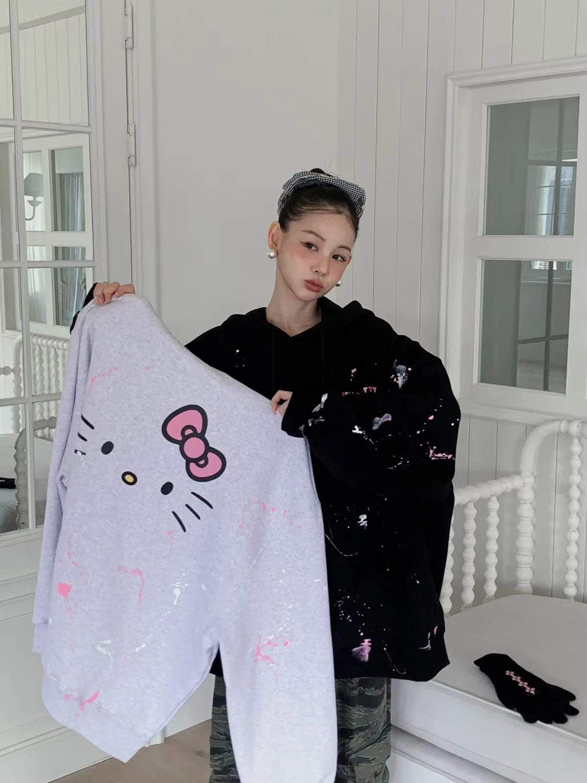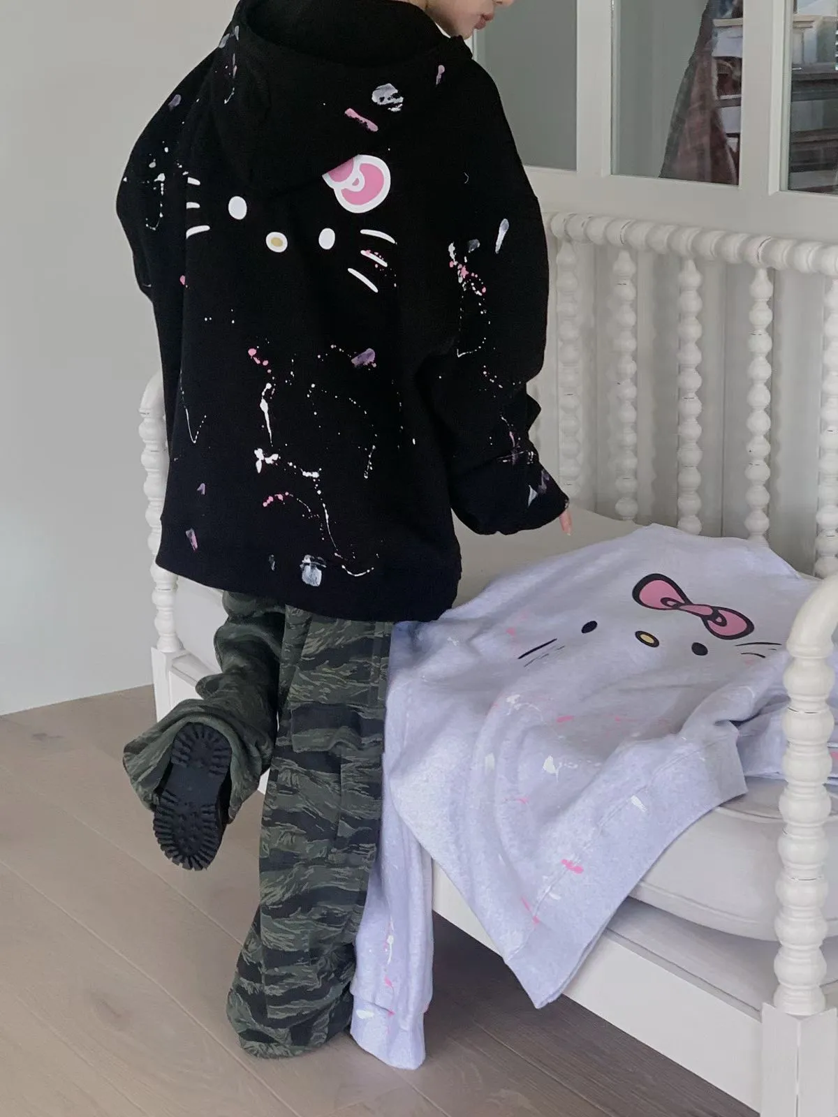 25LE19 潑漆加絨Kitty連帽帽T 2色