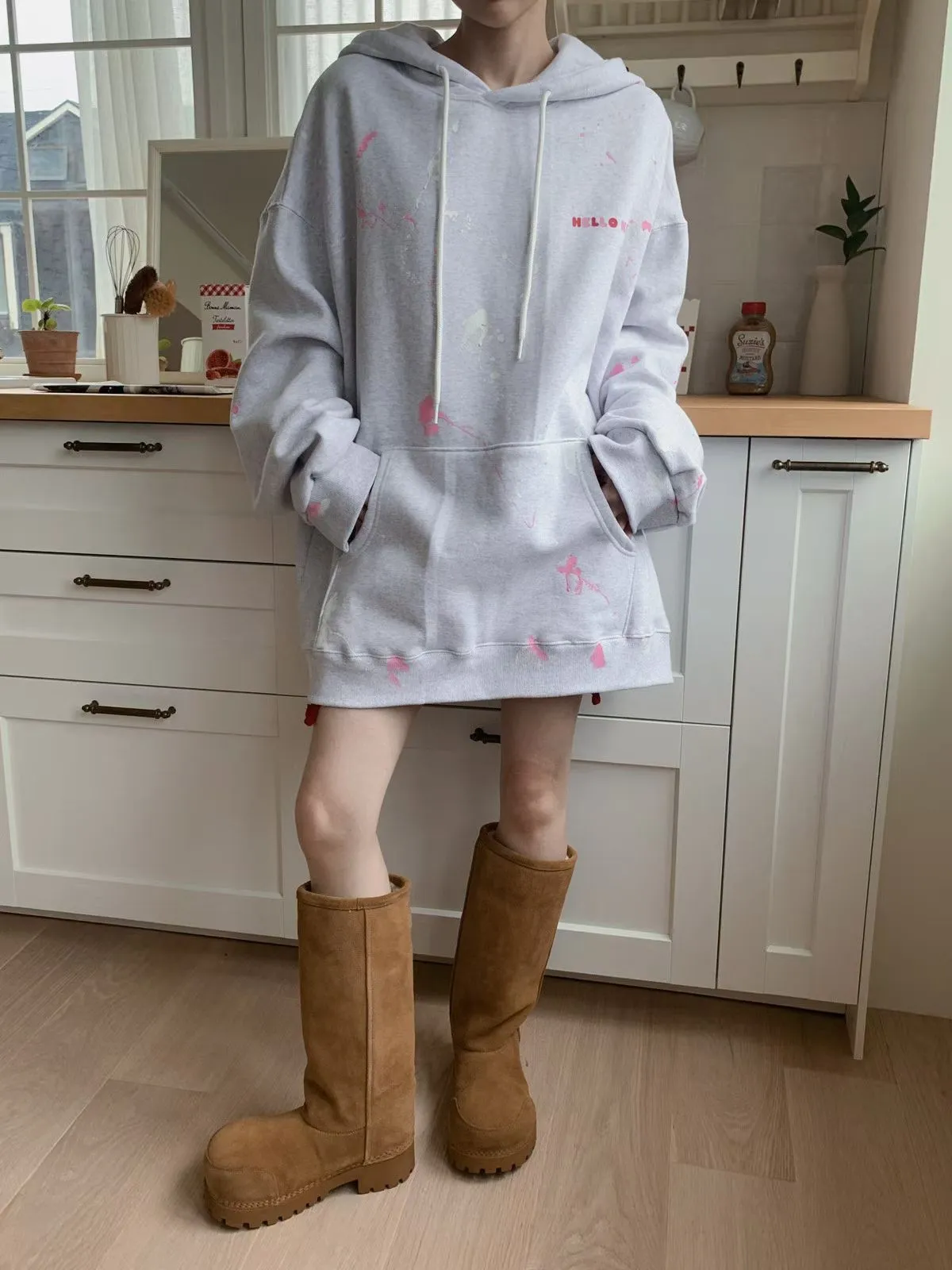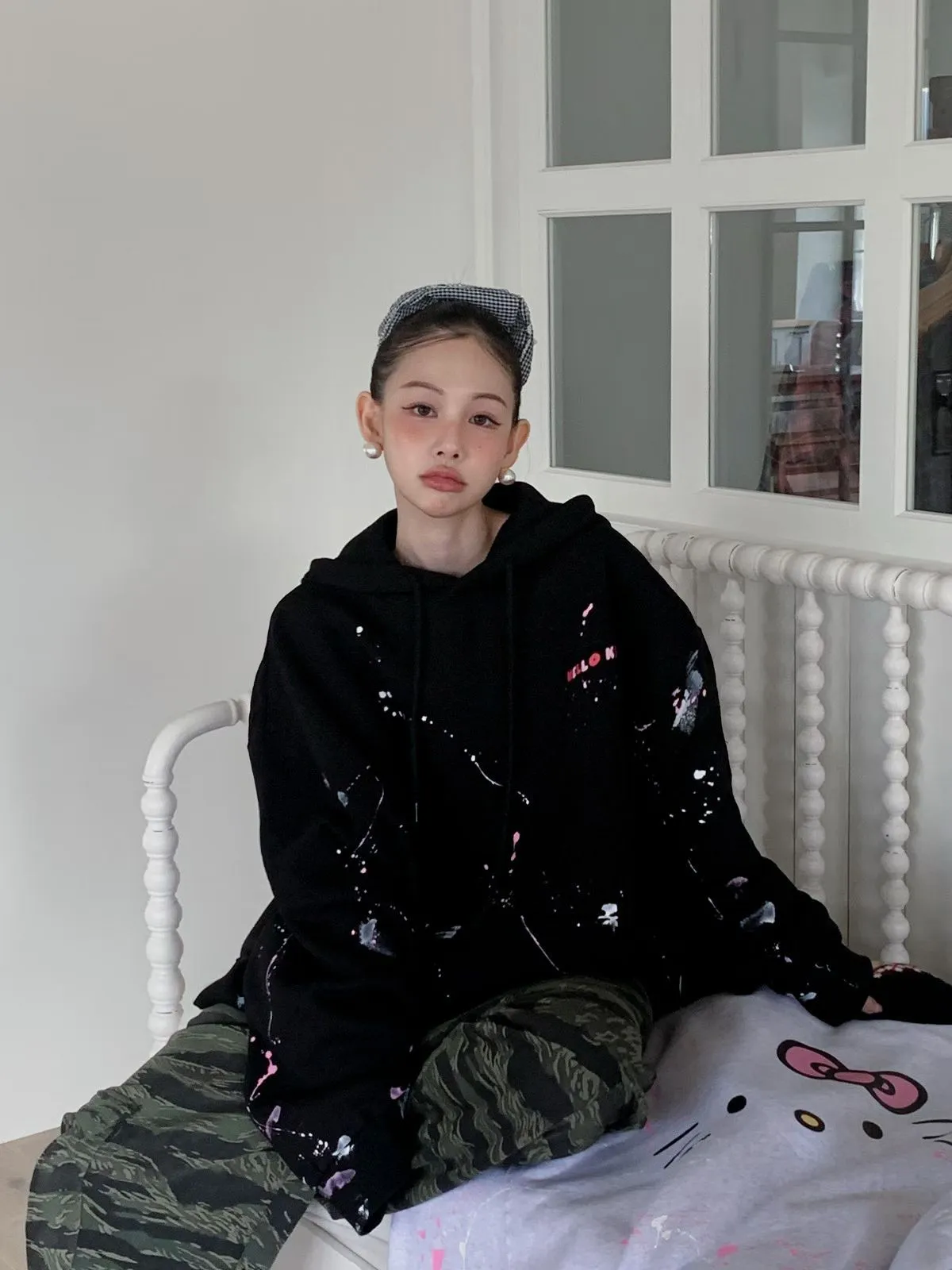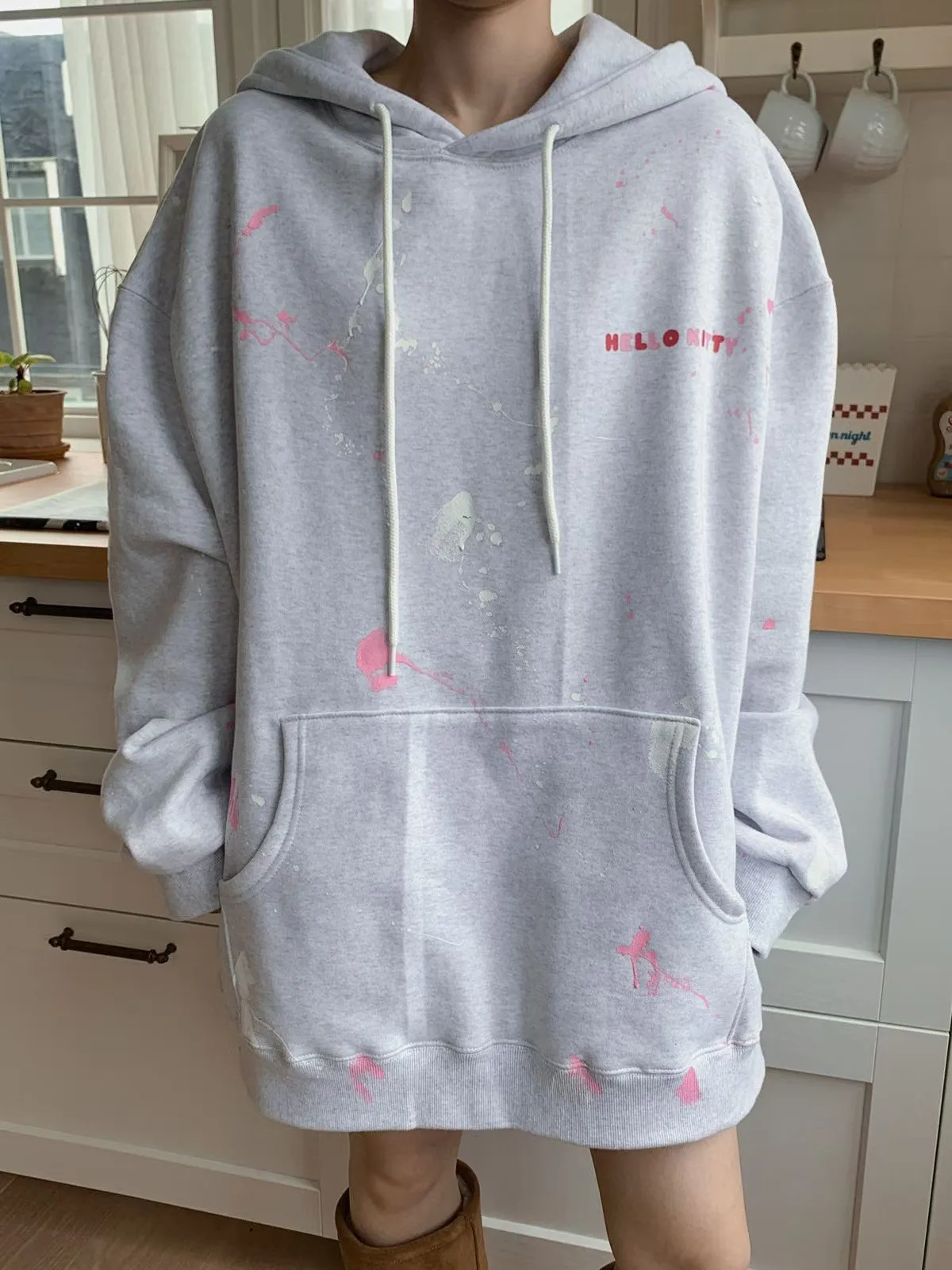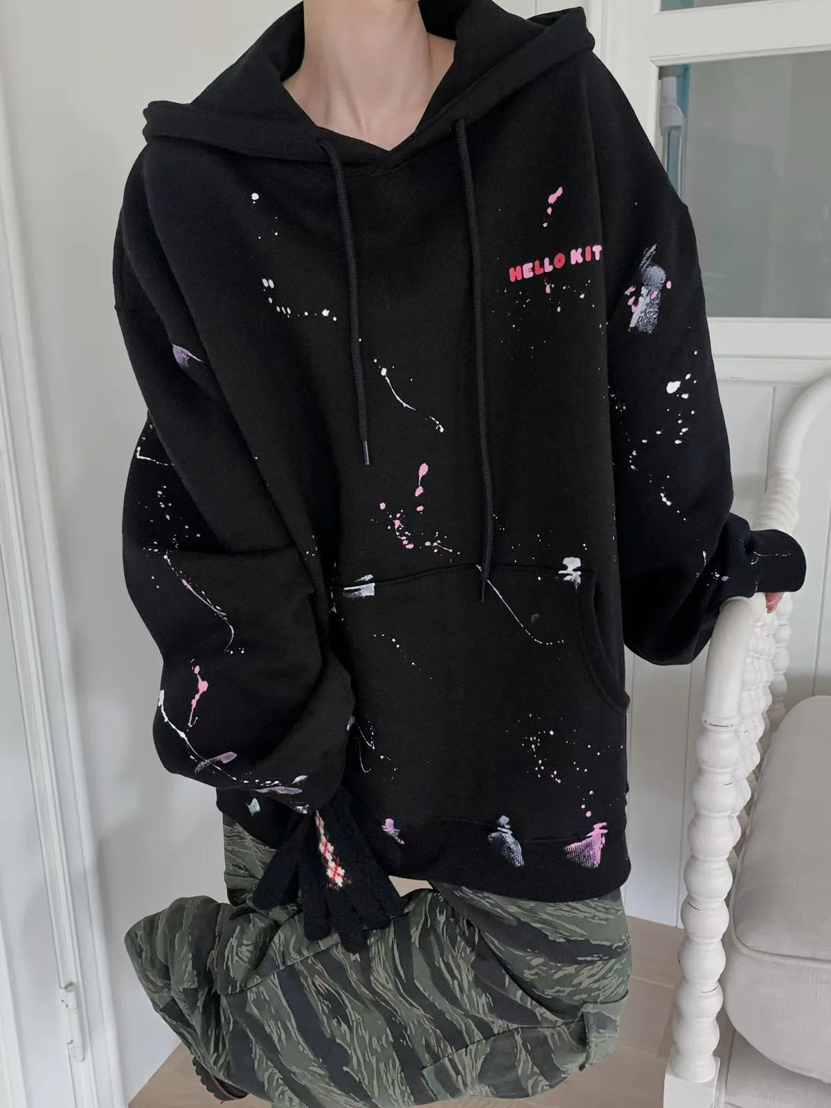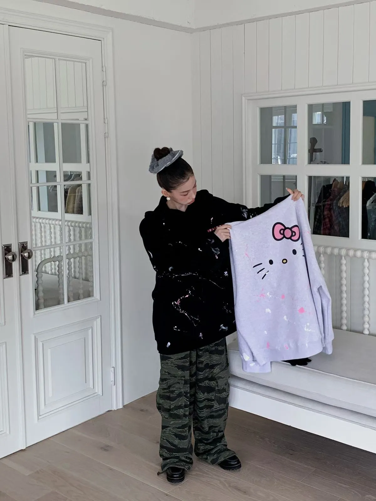 25LE19 潑漆加絨Kitty連帽帽T 2色