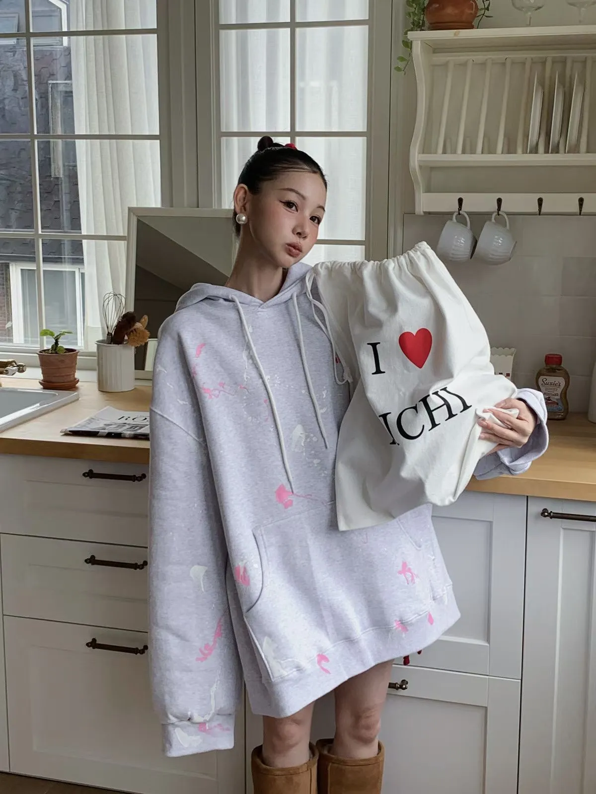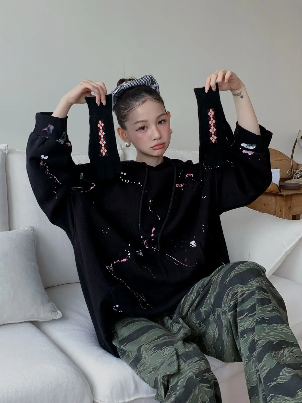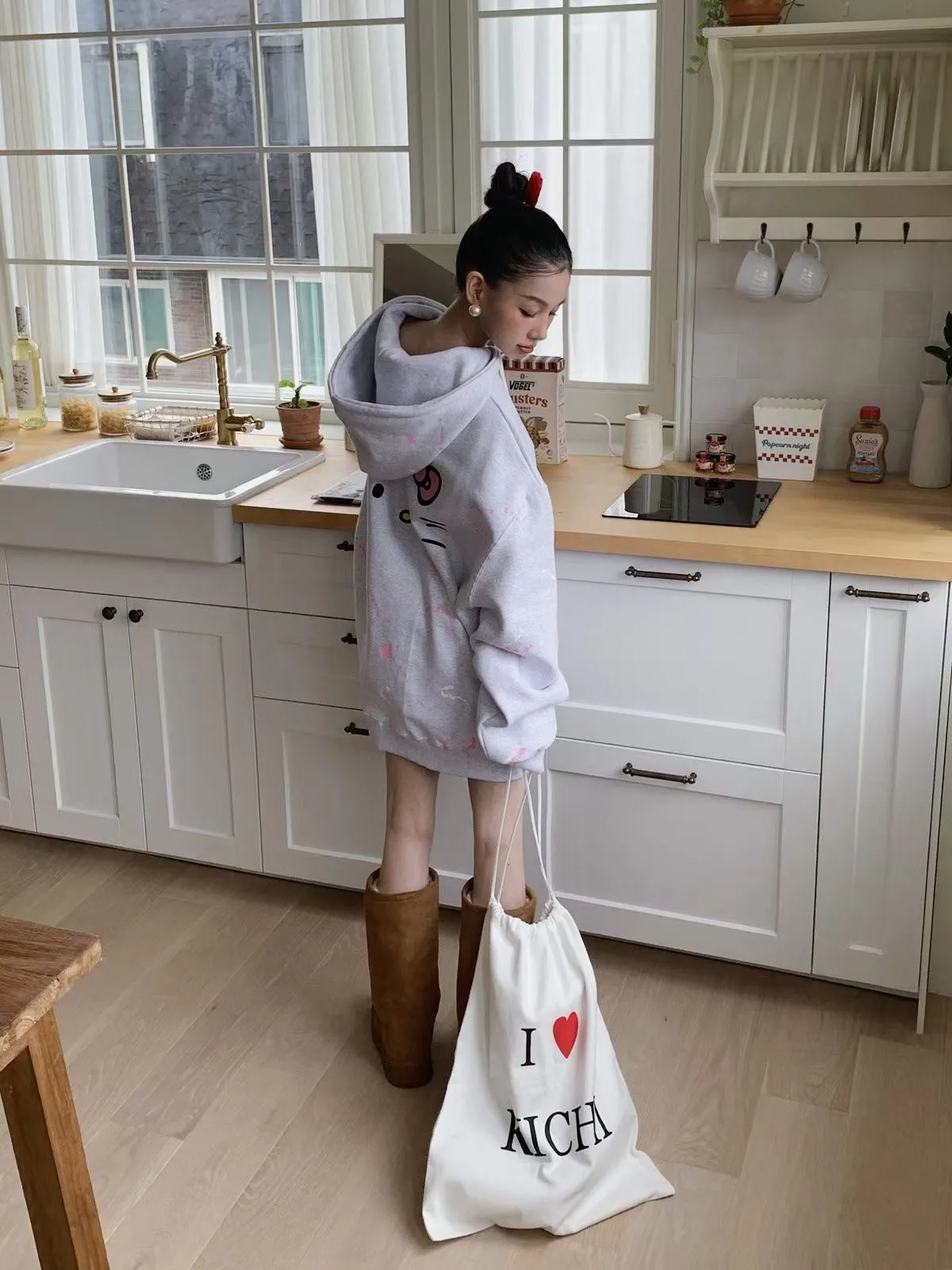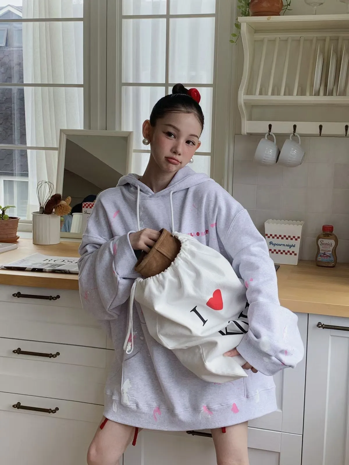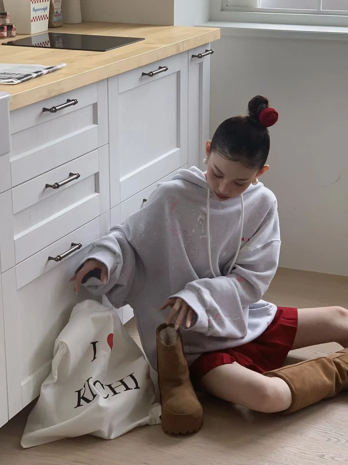 25LE19 潑漆加絨Kitty連帽帽T 2色