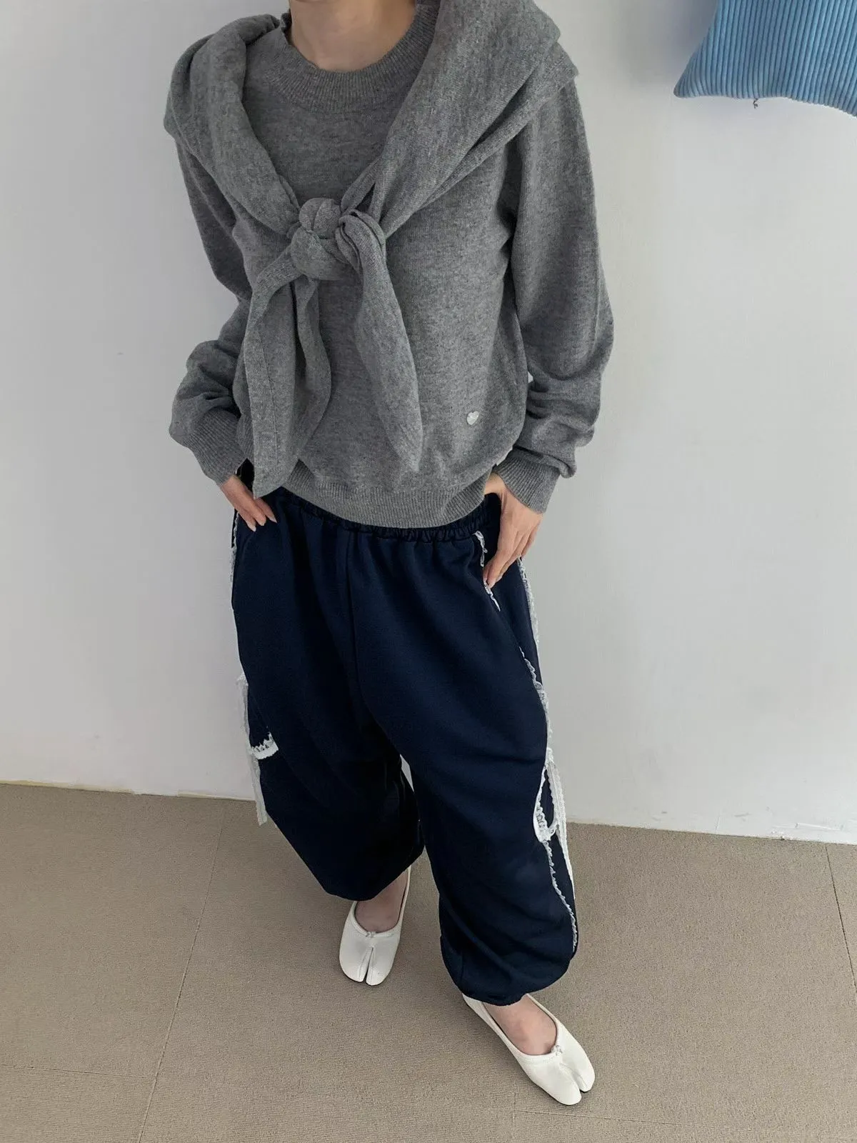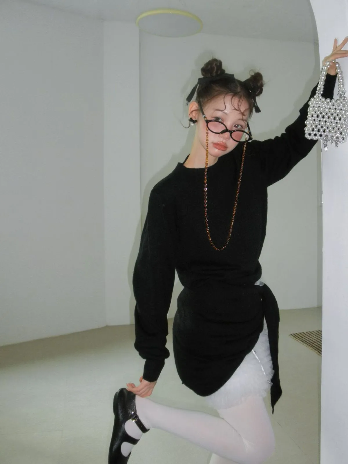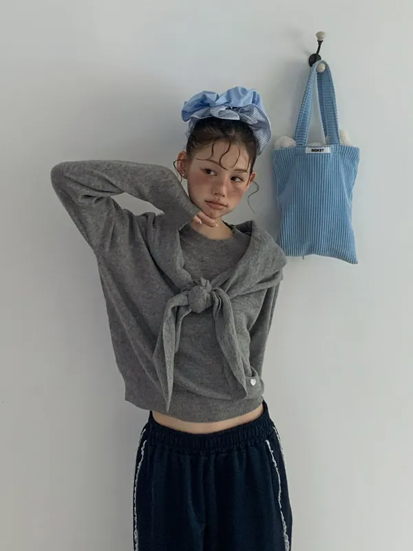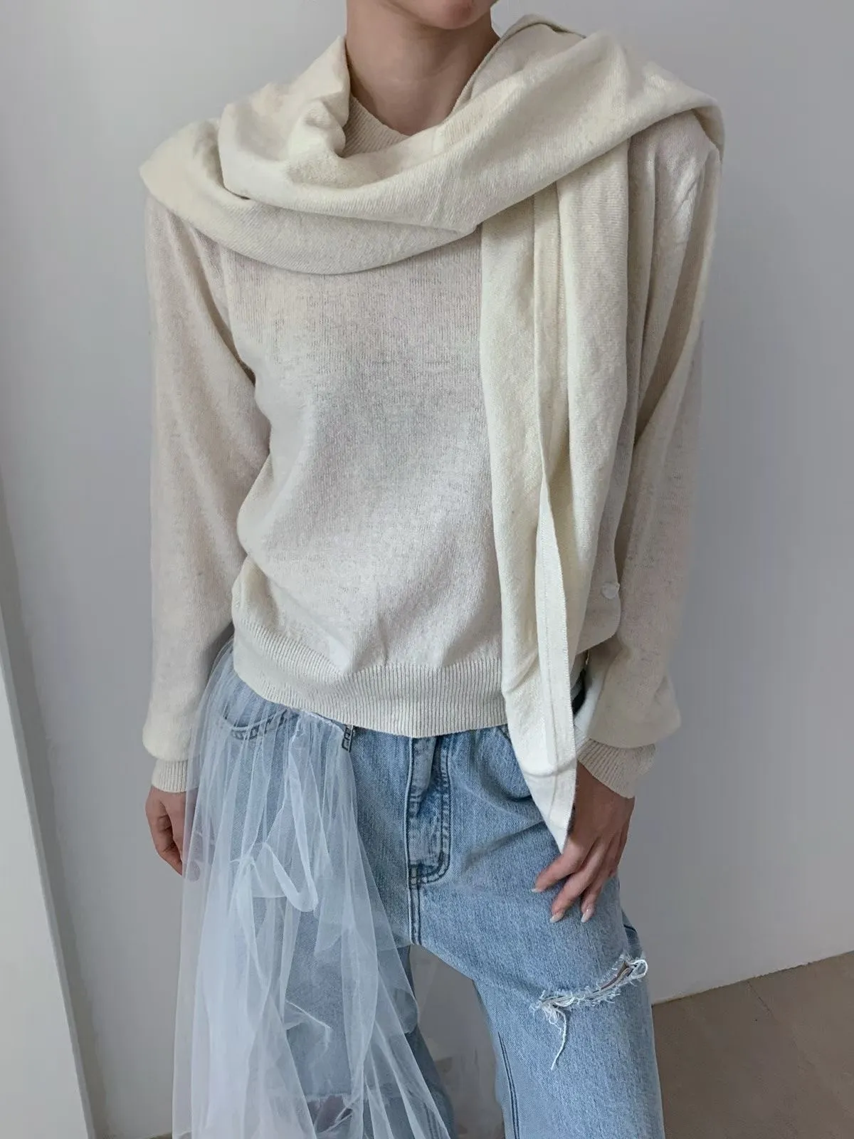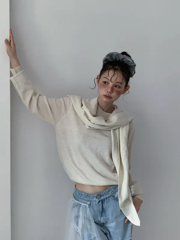 25LE20 特價)50%羊毛細針織毛衣+綁帶巾 3色