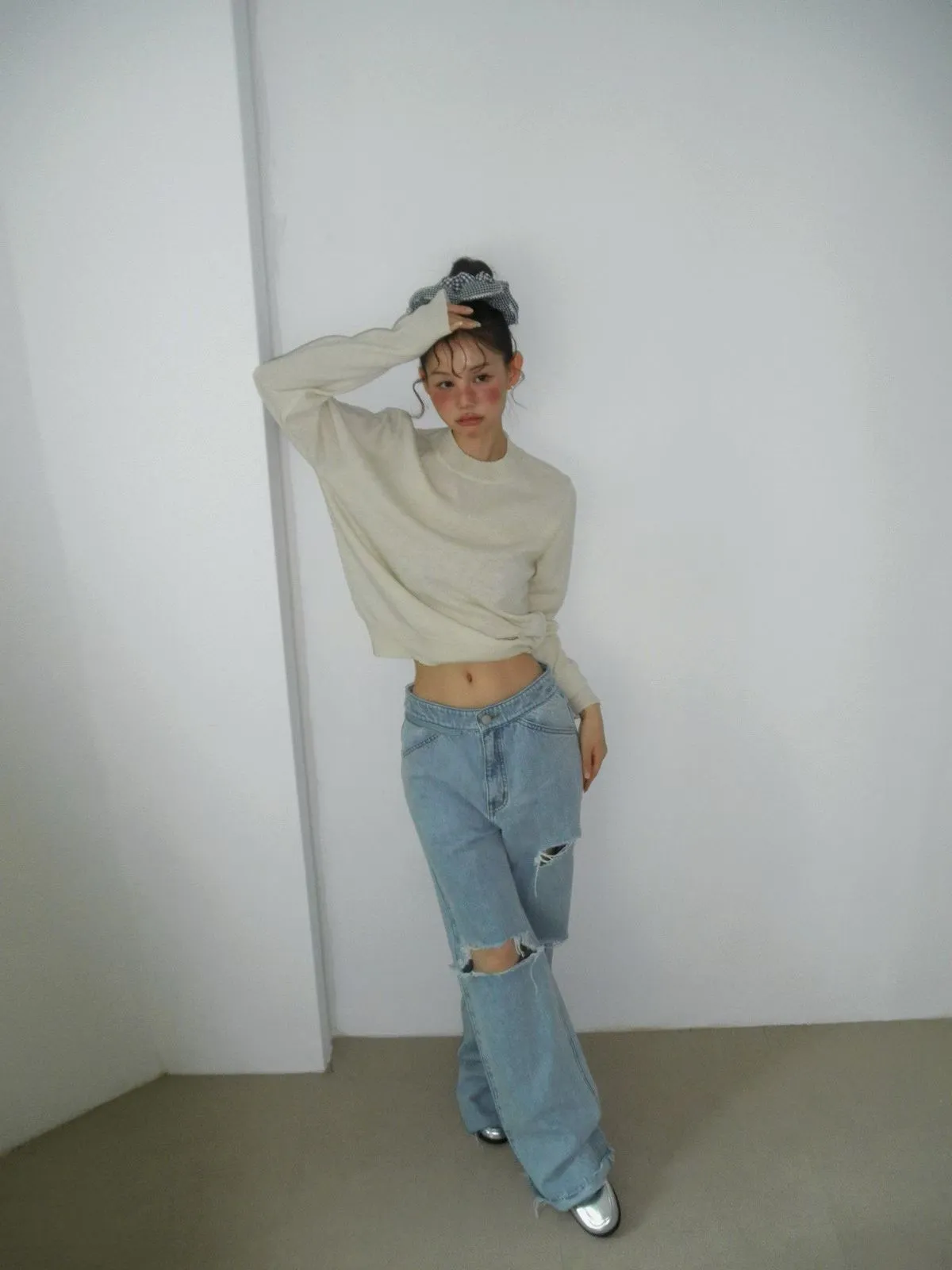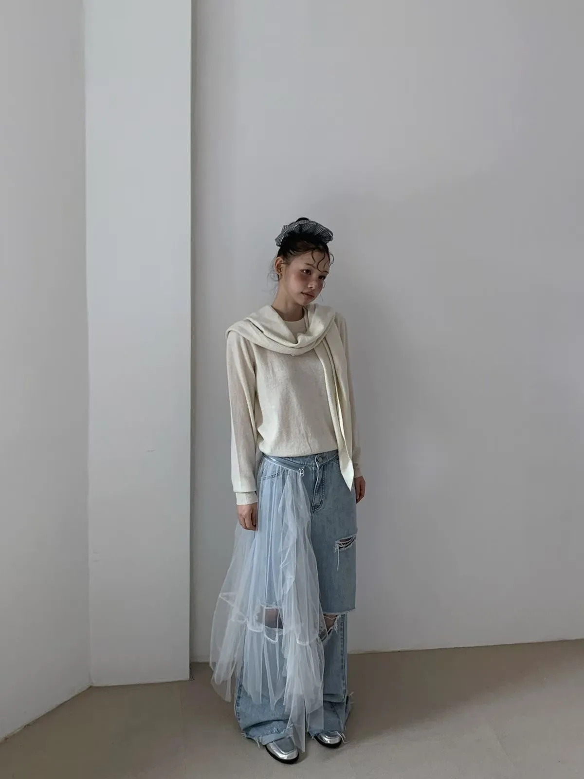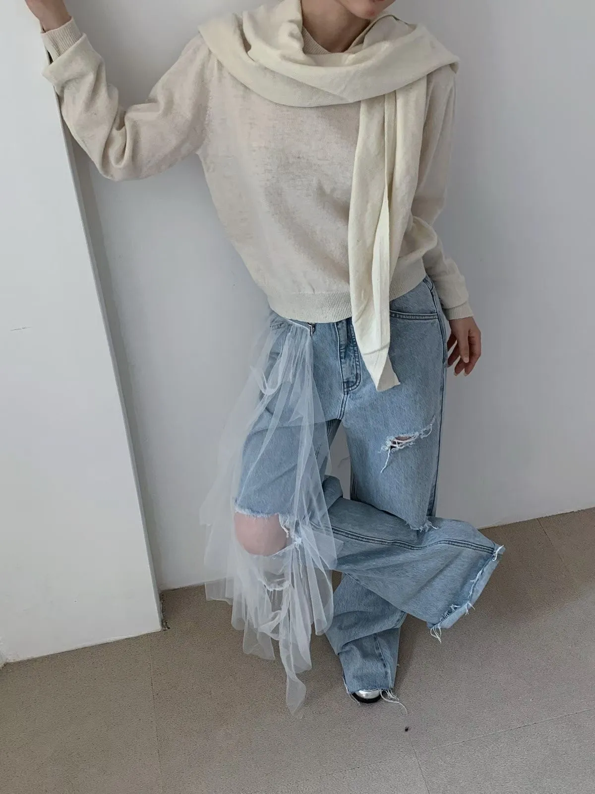 25LE20 特價)50%羊毛細針織毛衣+綁帶巾 3色