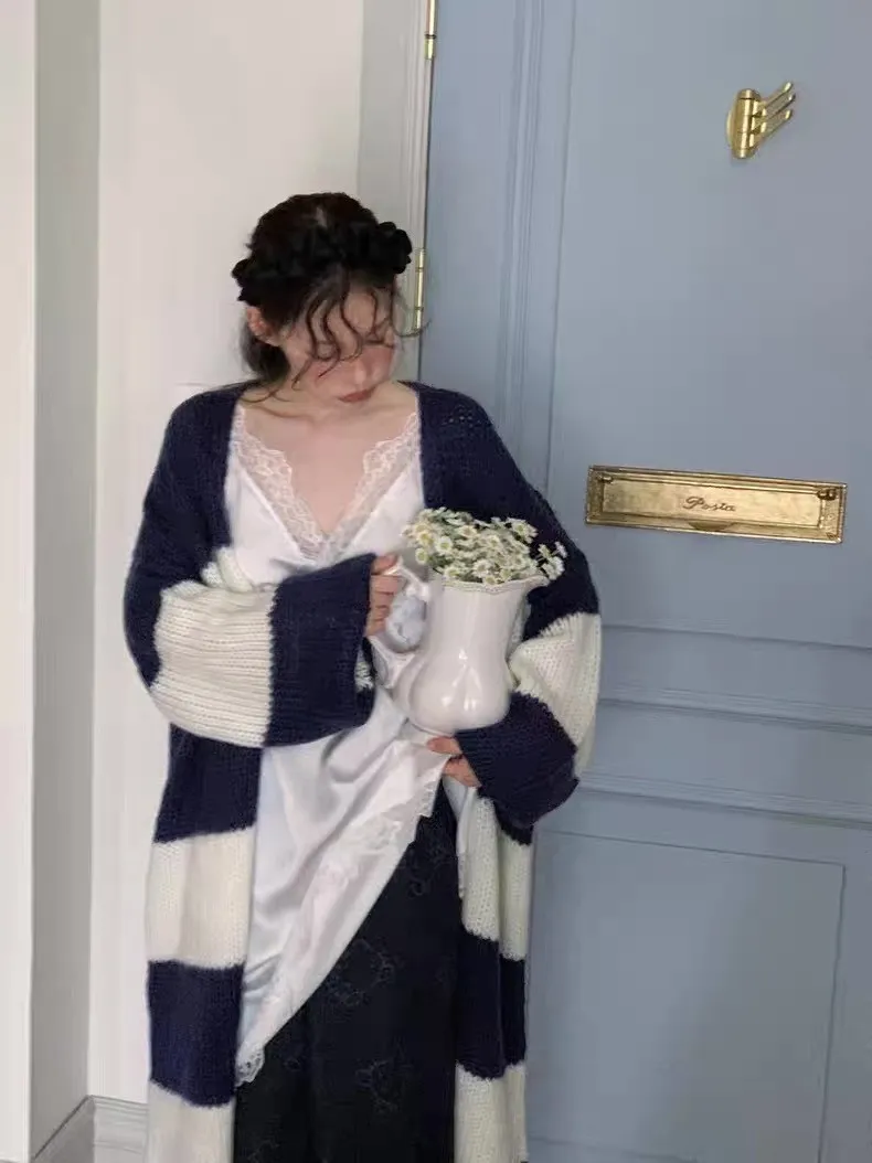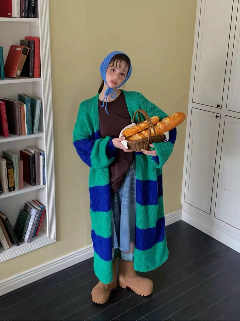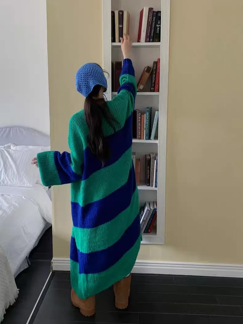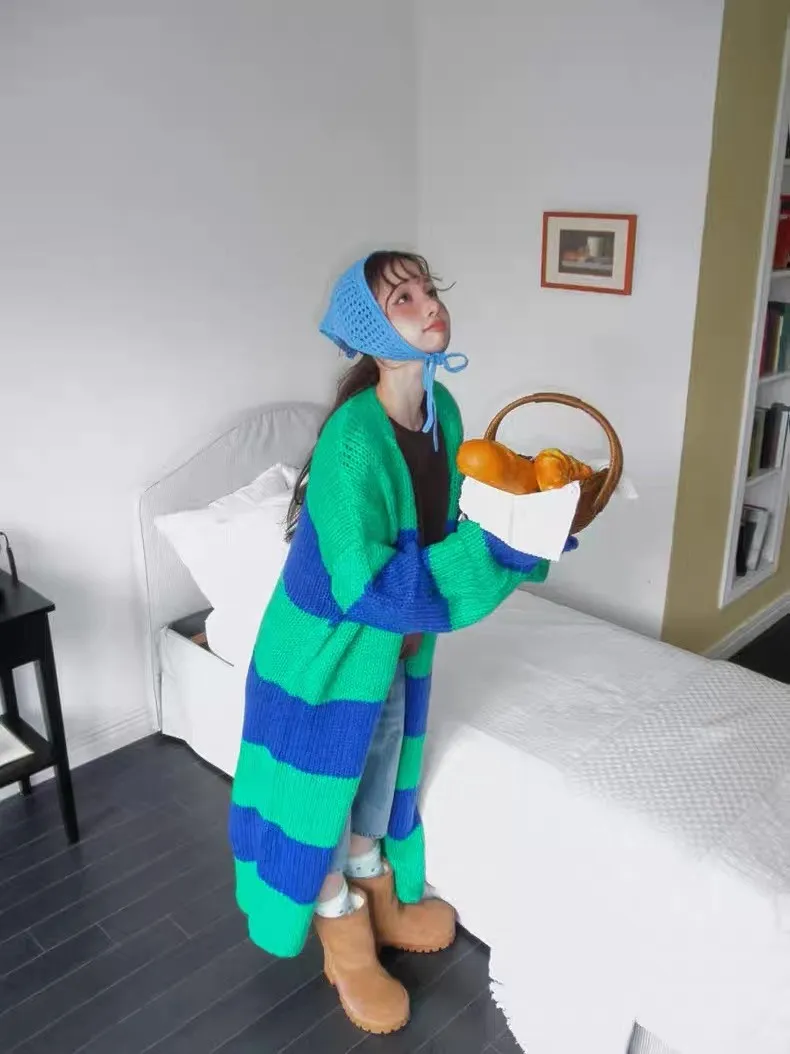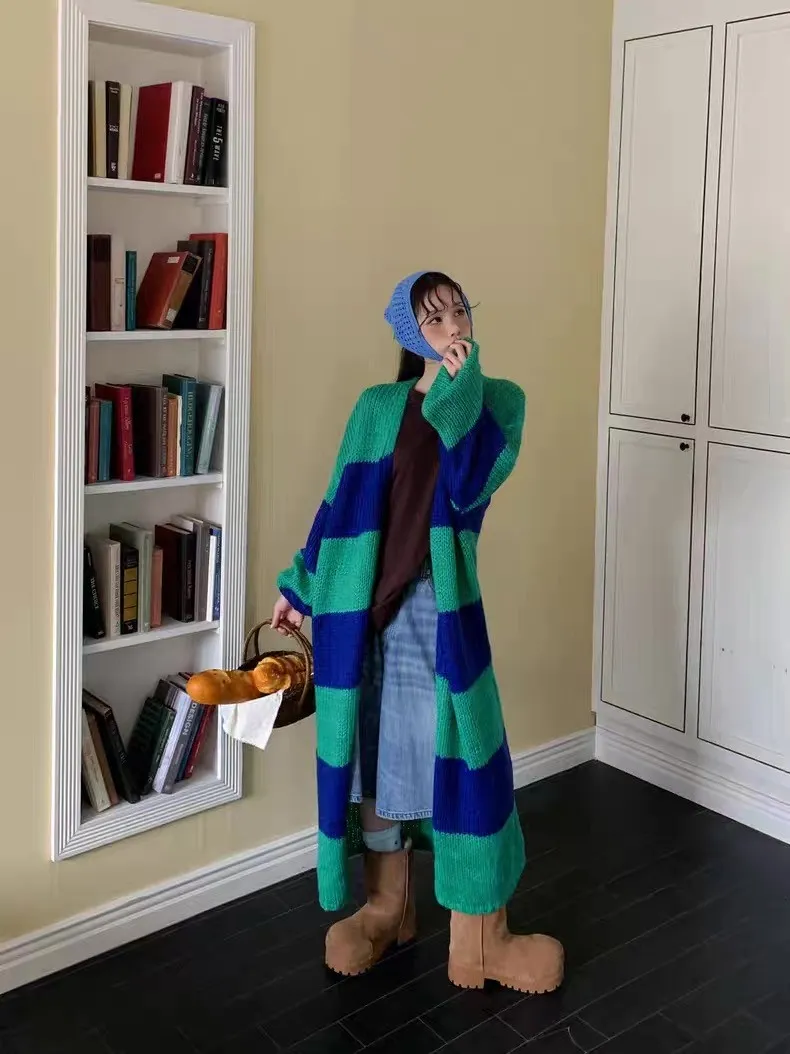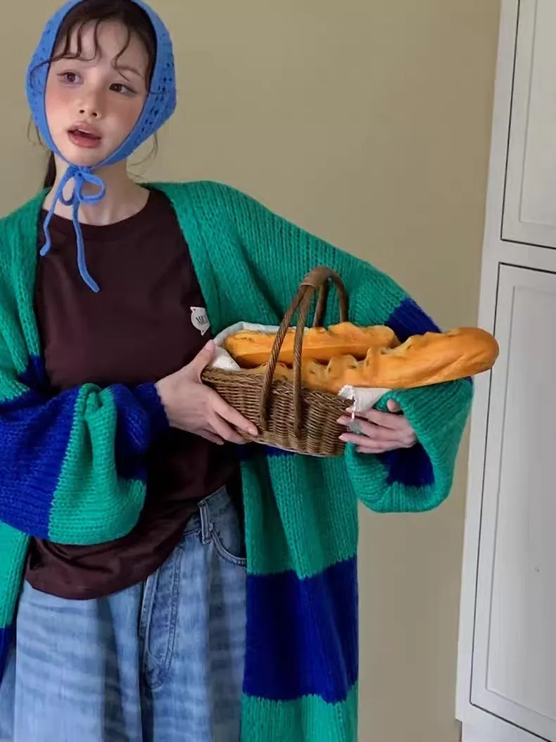 25LE21 特價)羊毛50%長版粗針織外罩衫 2色