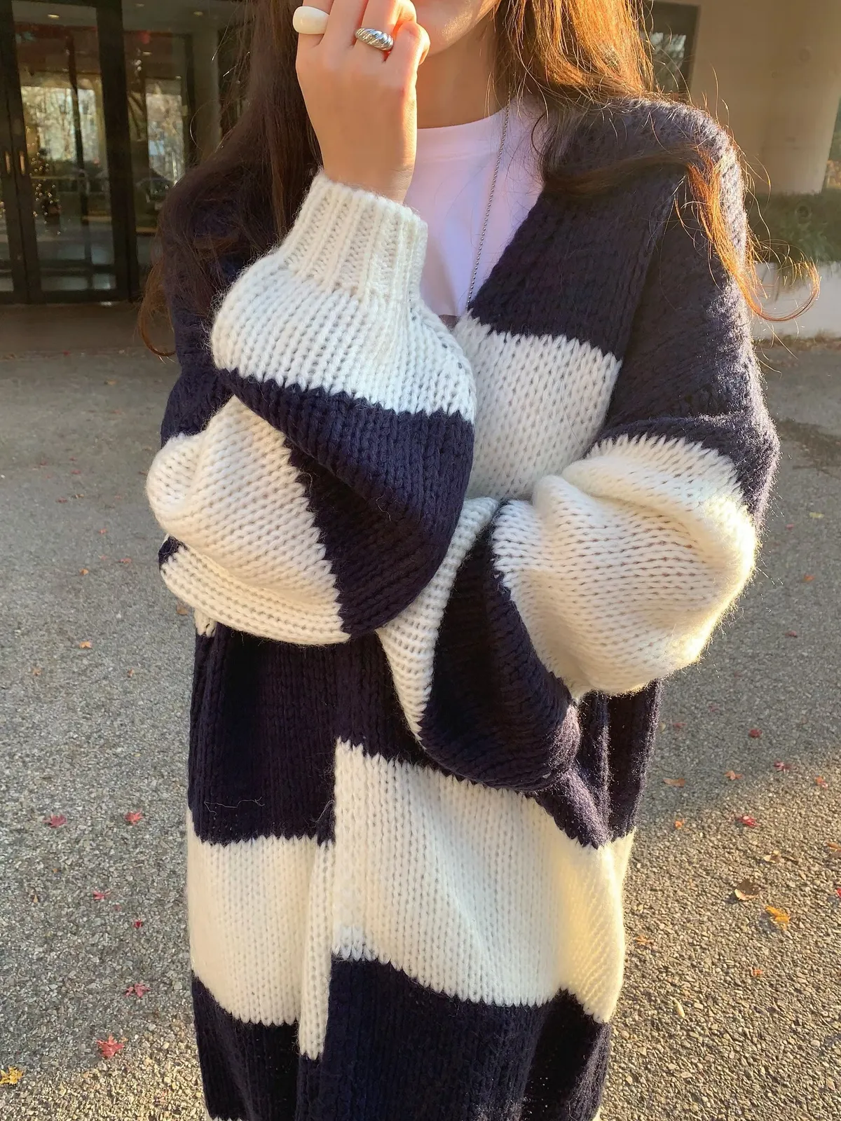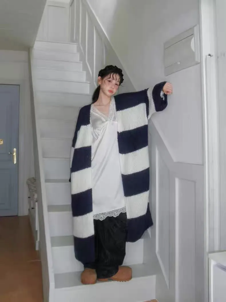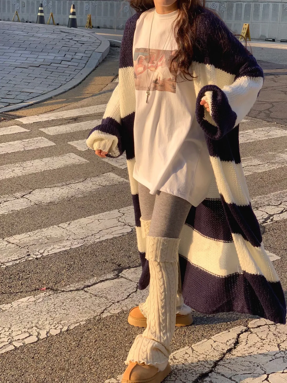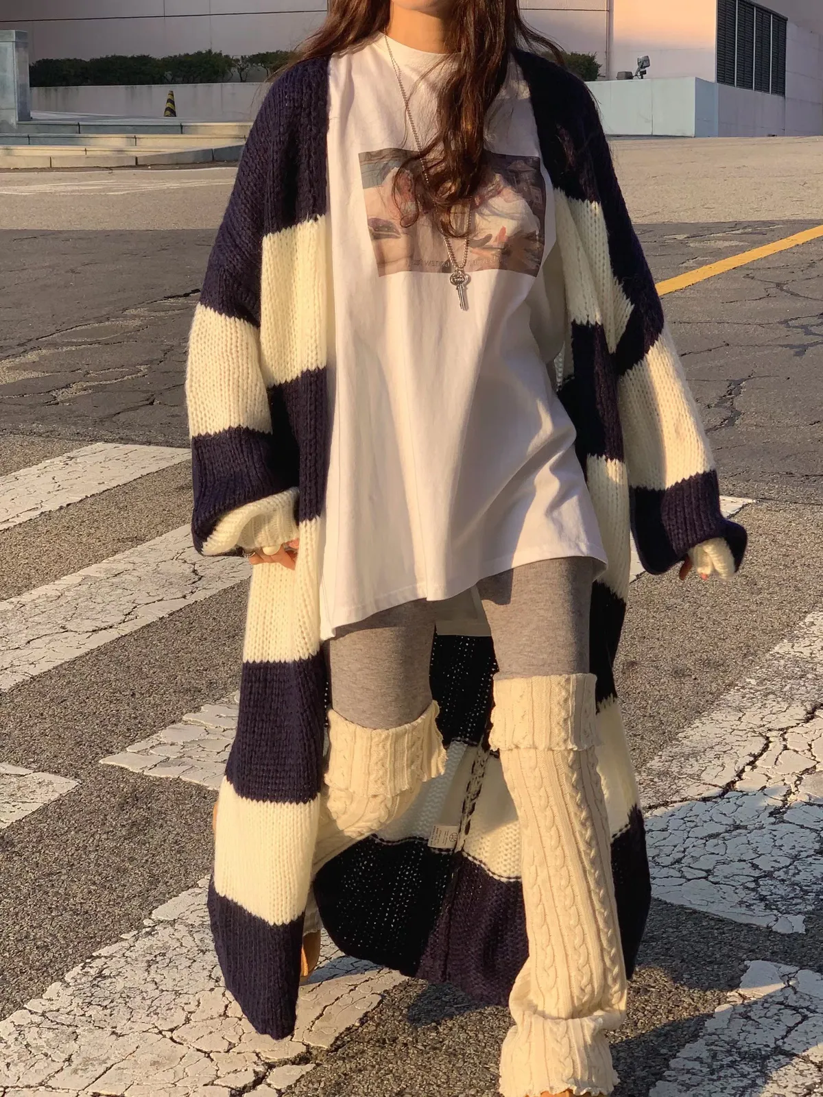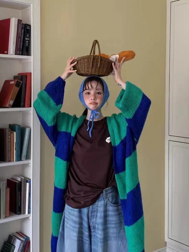 25LE21 特價)羊毛50%長版粗針織外罩衫 2色