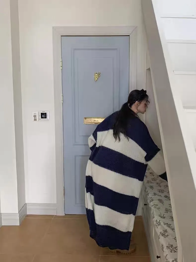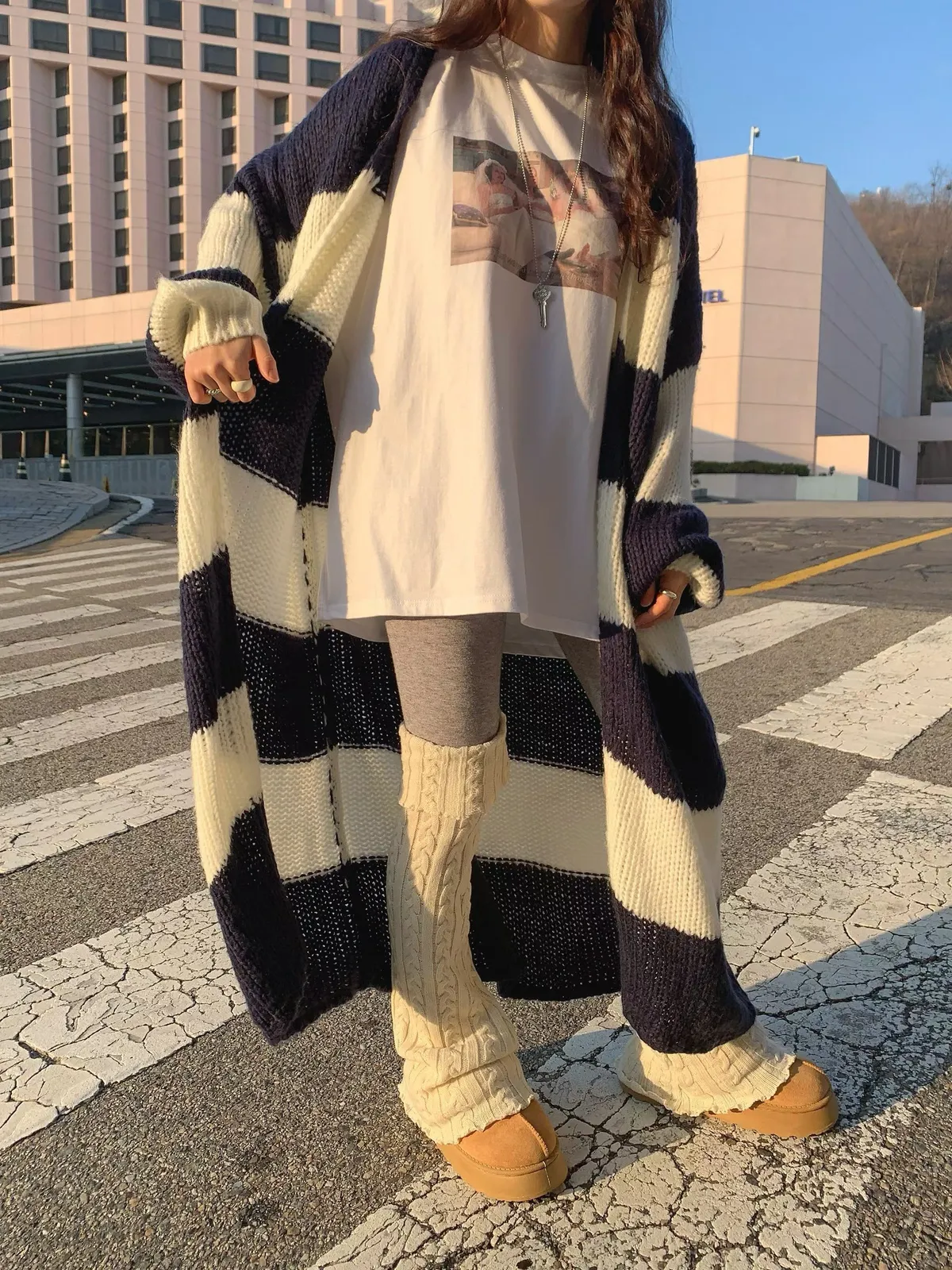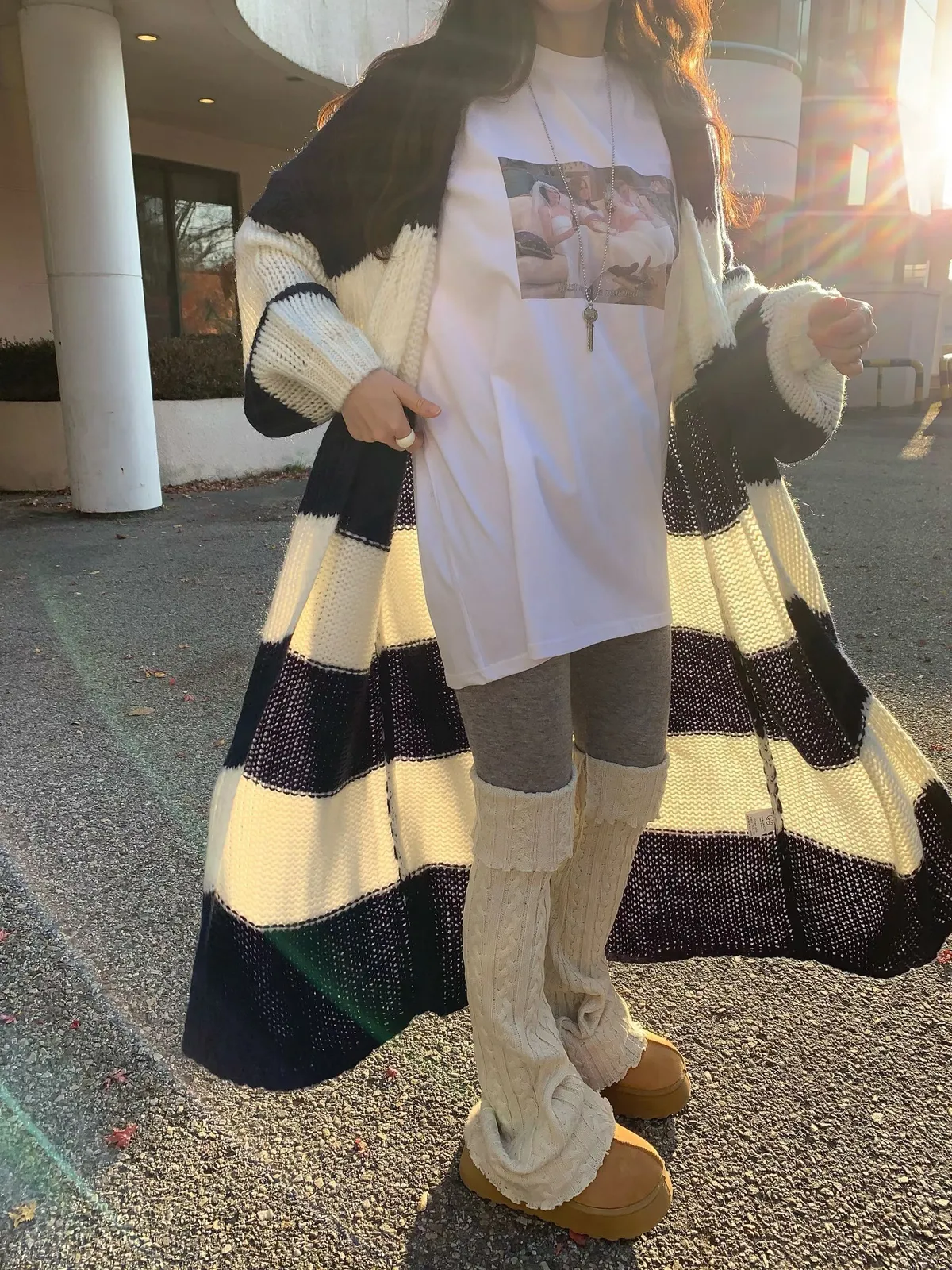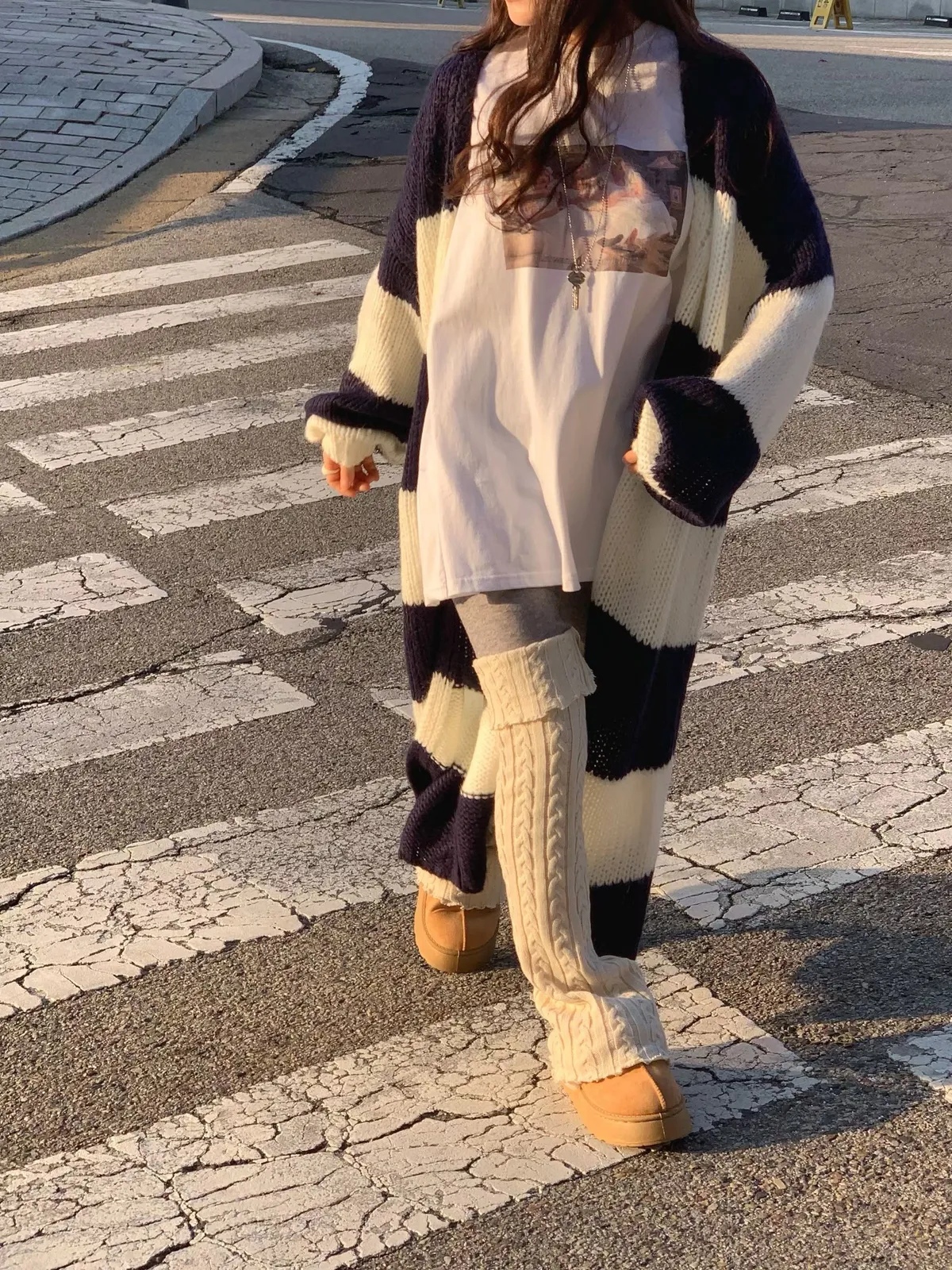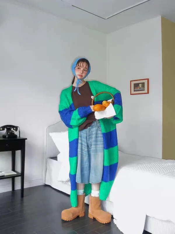 25LE21 特價)羊毛50%長版粗針織外罩衫 2色