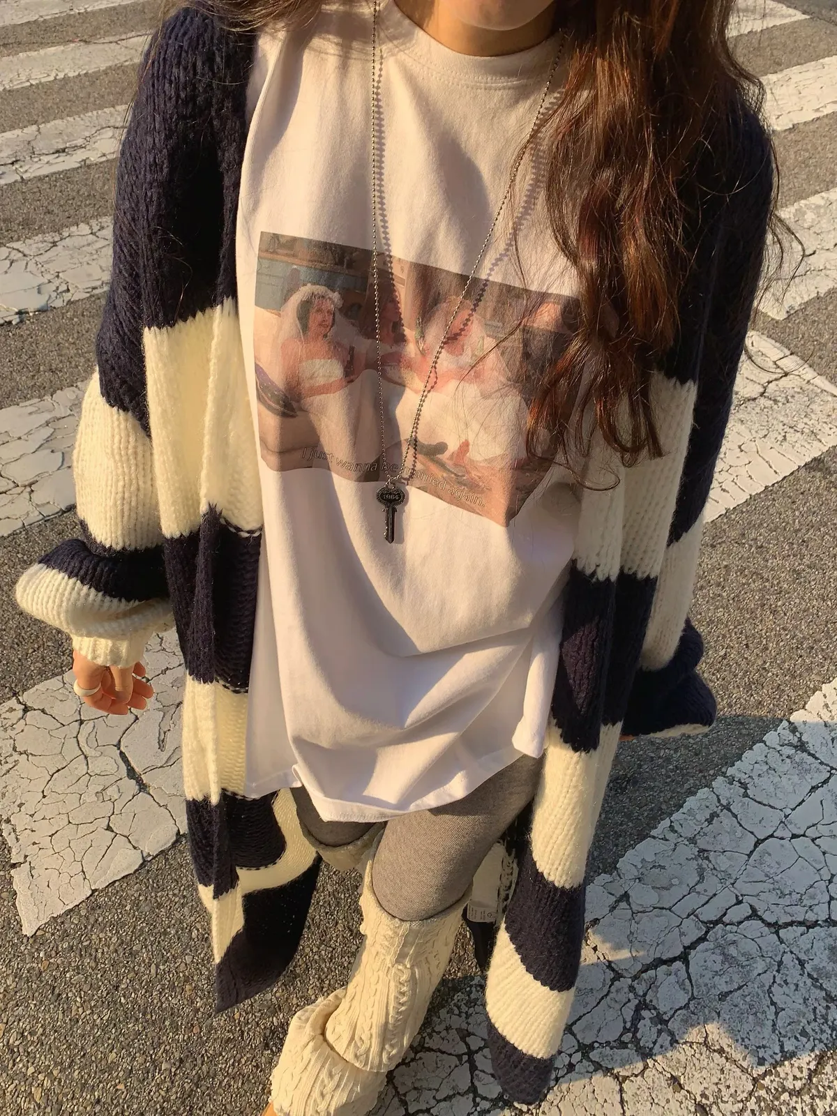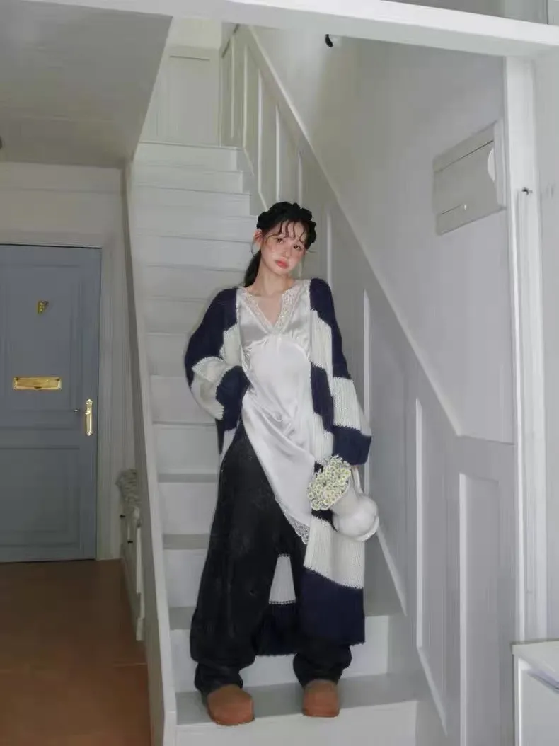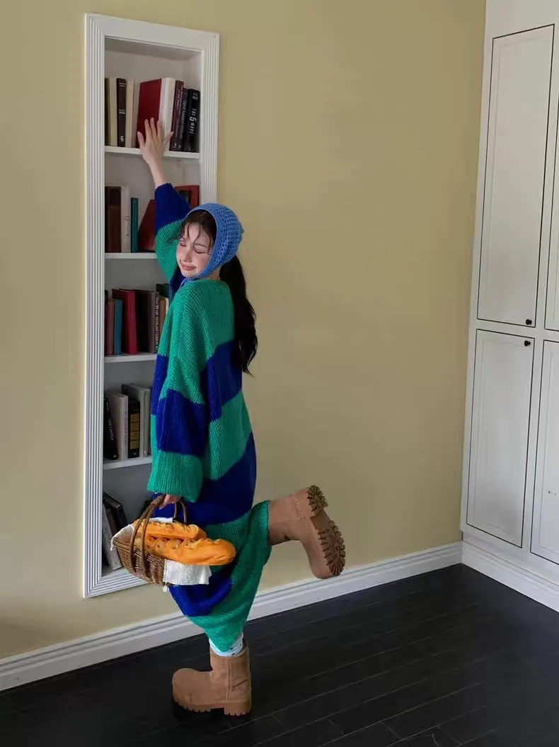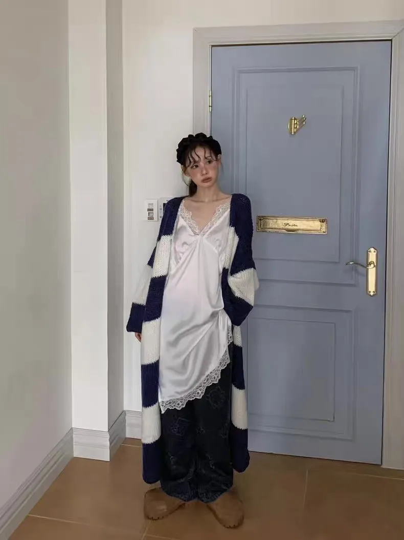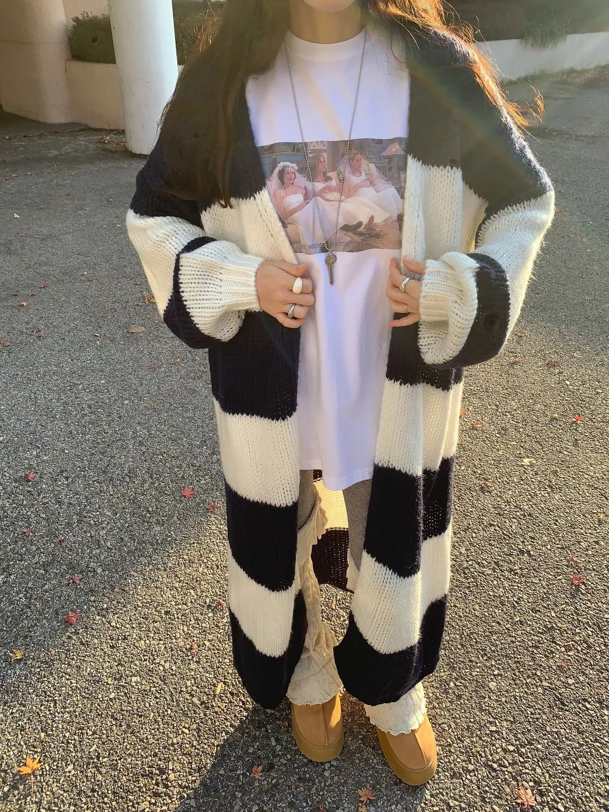 25LE21 特價)羊毛50%長版粗針織外罩衫 2色